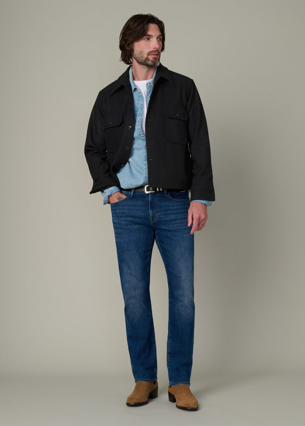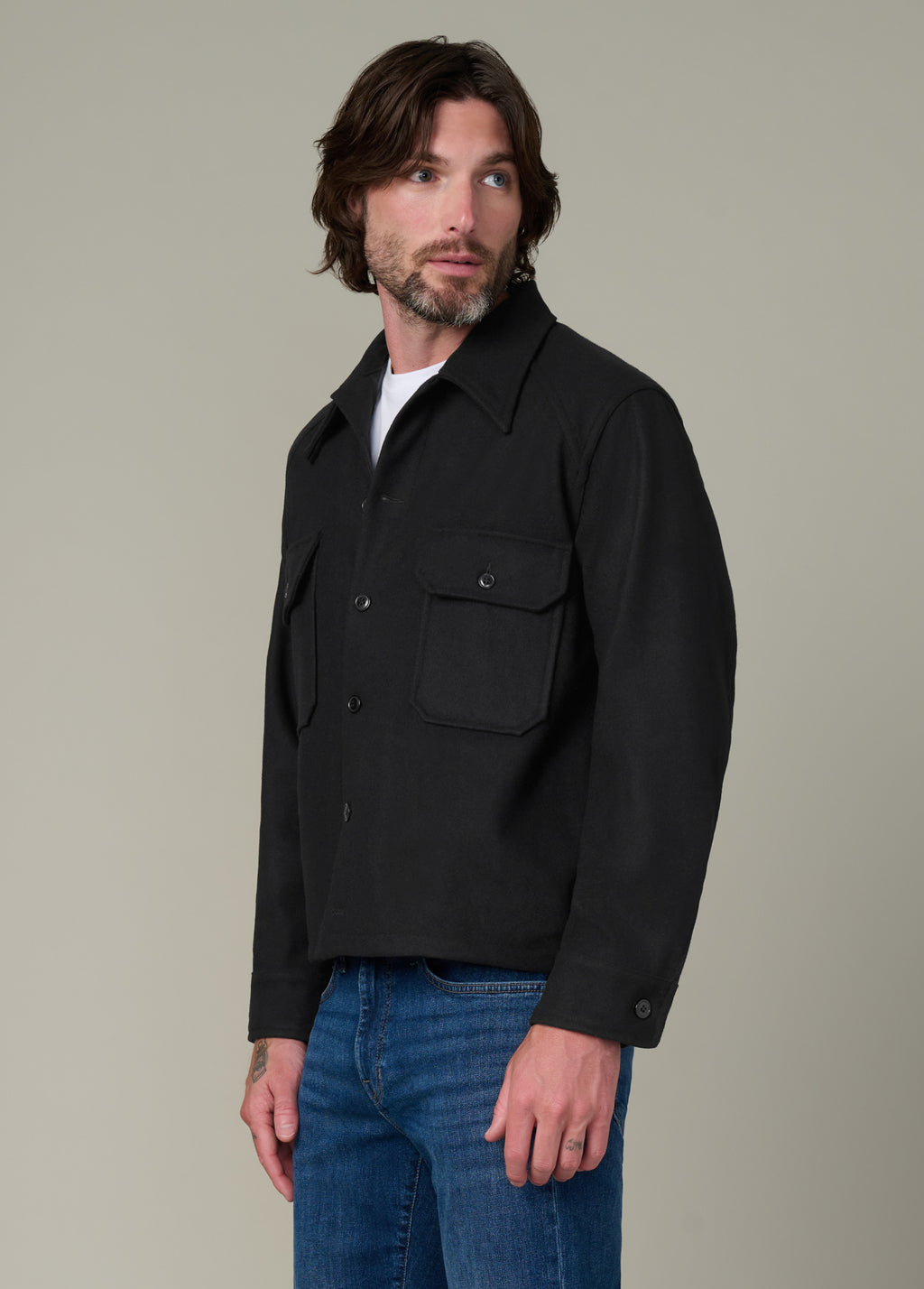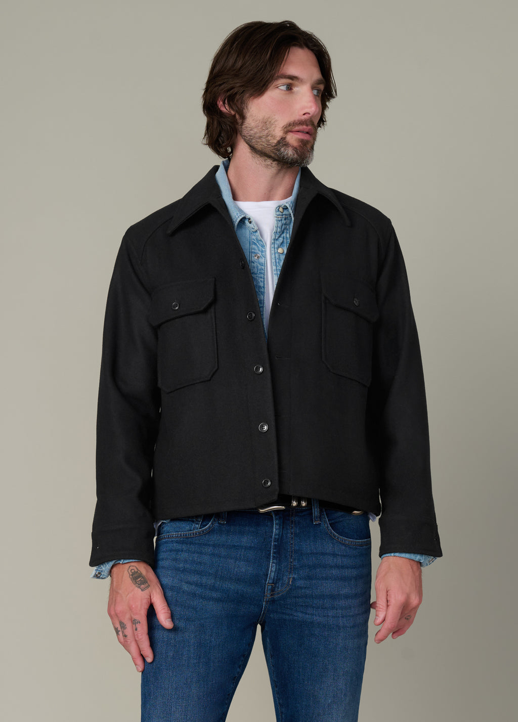 An effortlessly stylish and wearable men's black jacket.