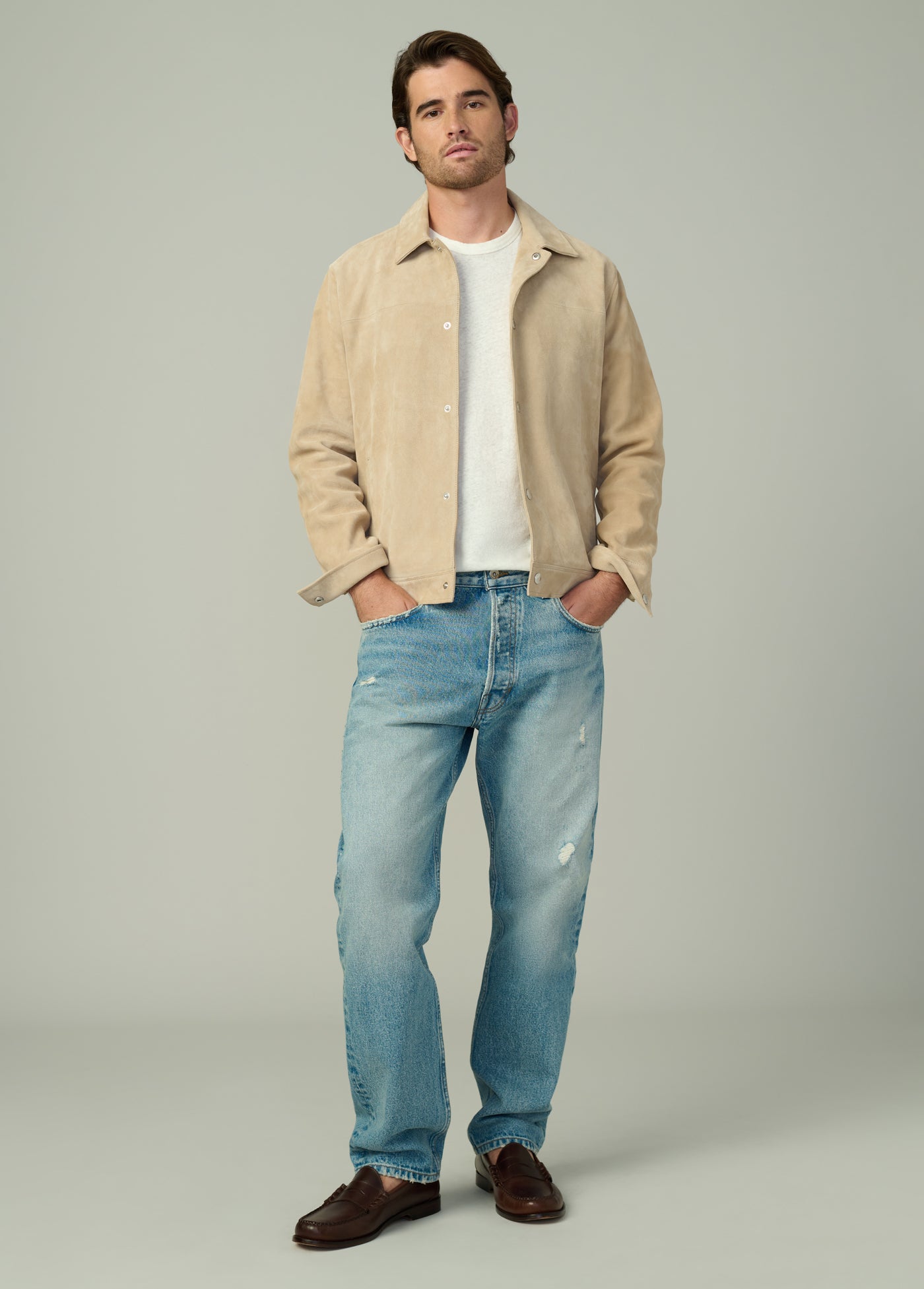 An elevated coaches' jacket made from luxuriously soft genuine suede.