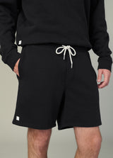 A French terry pull-on short made of premium cotton from Portugal.
