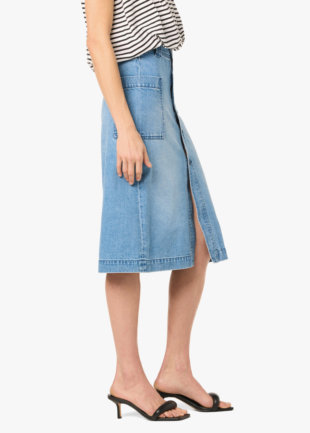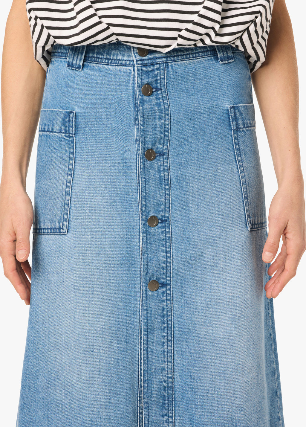 A button-front midi skirt with a relaxed fit and utility pockets.