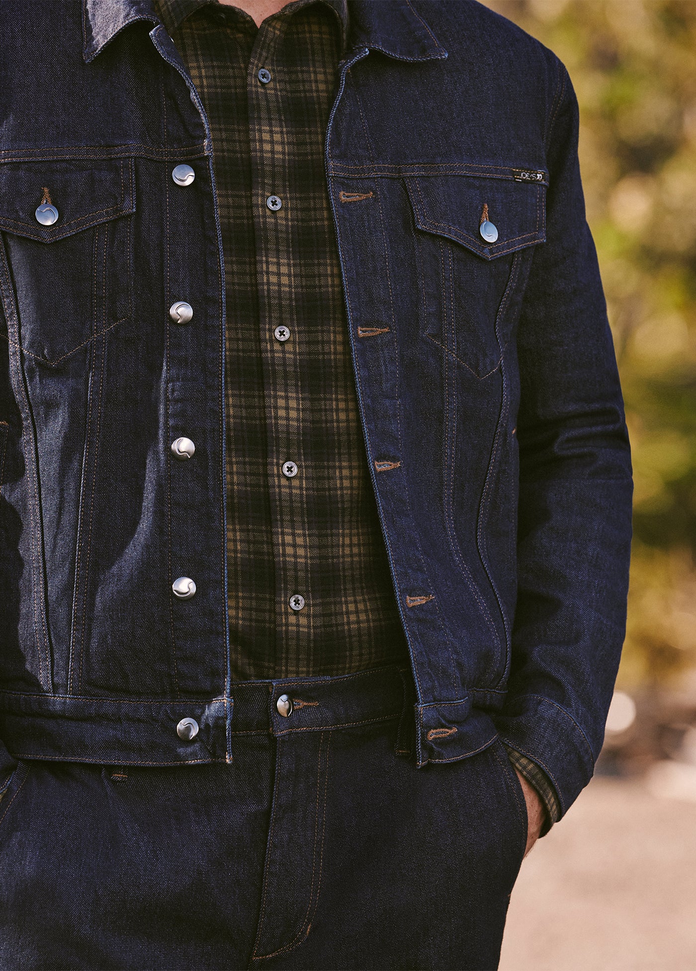 No wardrobe is complete without a trucker jacket. The Cash Trucker in 'Traveler' has a clean resin rinse for a true dark denim appearance. The look is crisp but the fabric is surprisingly soft. Because it's crafted from a super soft, tencel-cotton blend, it's extra comfortable and ready to wear year round.