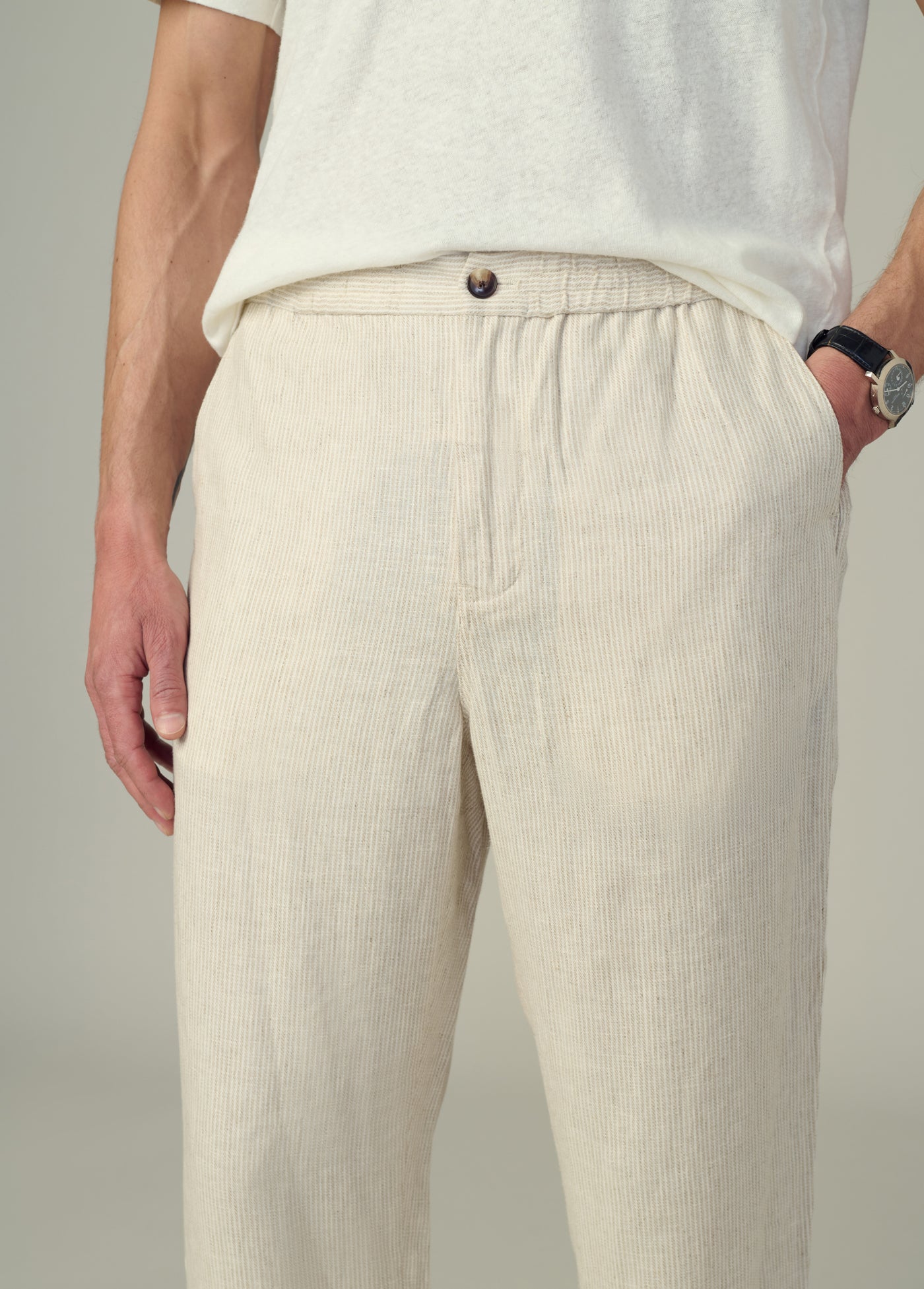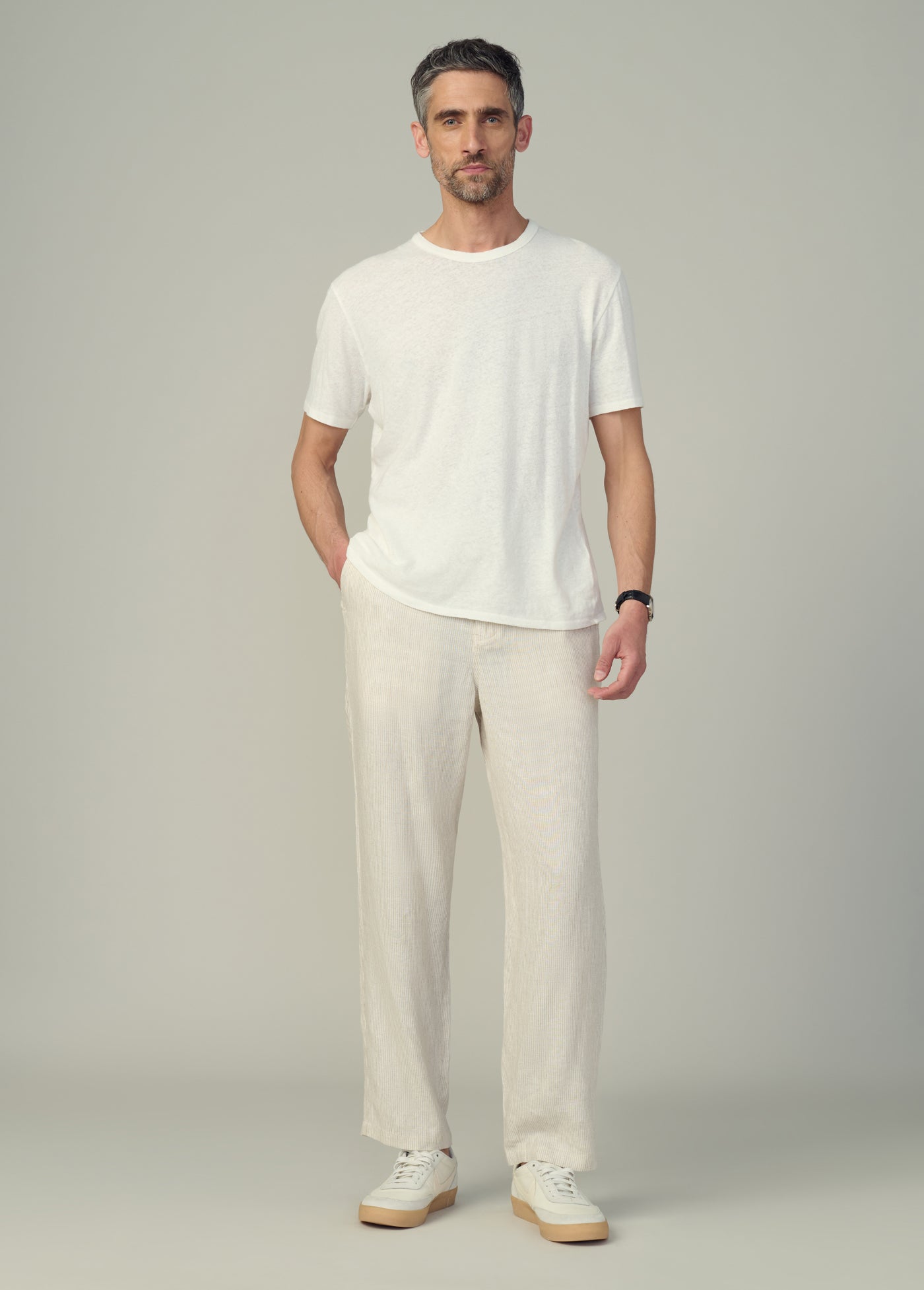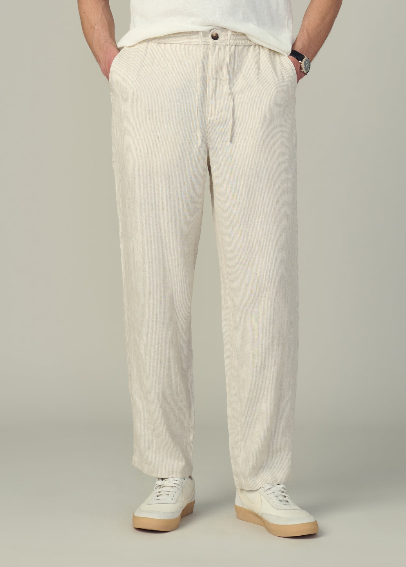 A pull-on trouser pant with a relaxed fit through the hip and a straight leg.