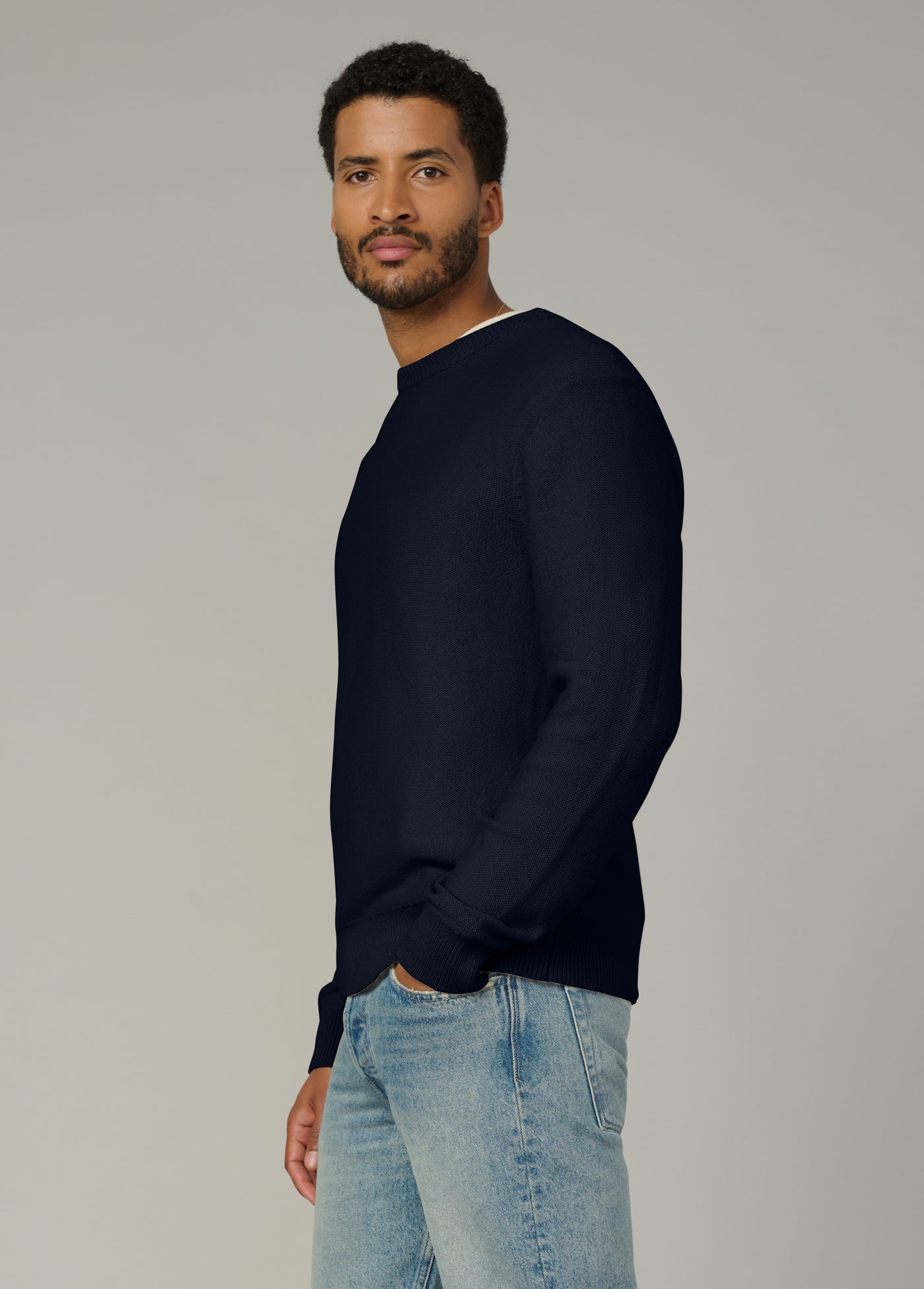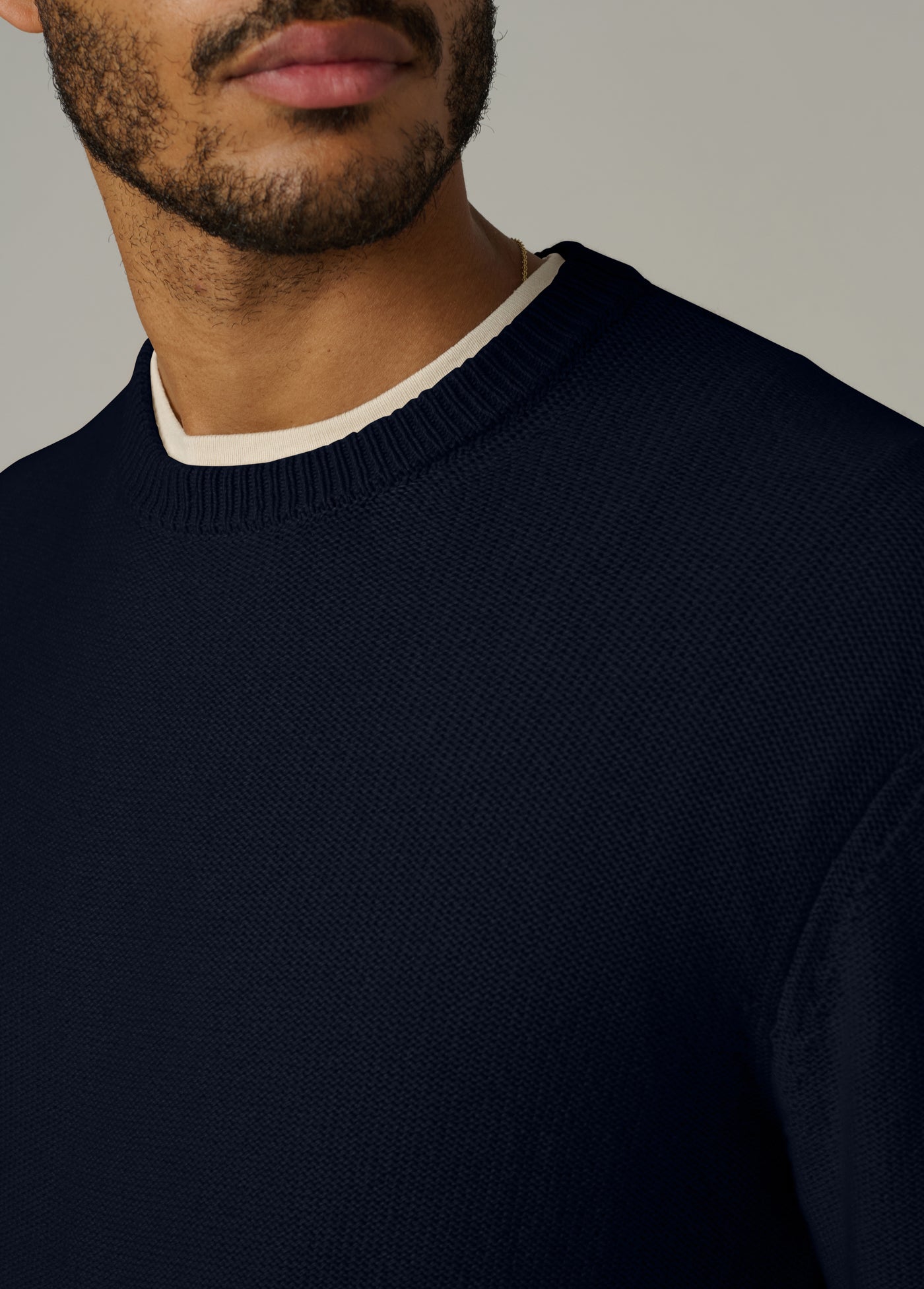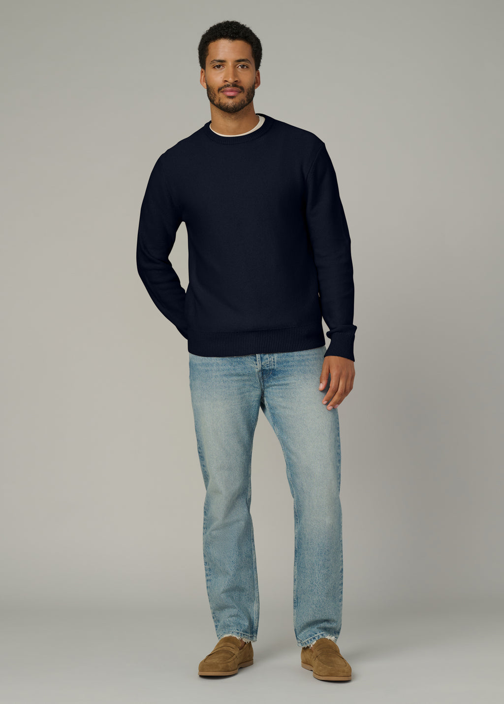 Our Classic Crew Neck is a true wardrobe essential and timeless piece for every season. This men's crewneck sweater is knit from the soft, breathable cotton yarn for all-day comfort and lasting durability. Designed with a classic fit and minimal detailing. Perfect on it's own or layered under jackets and coats.