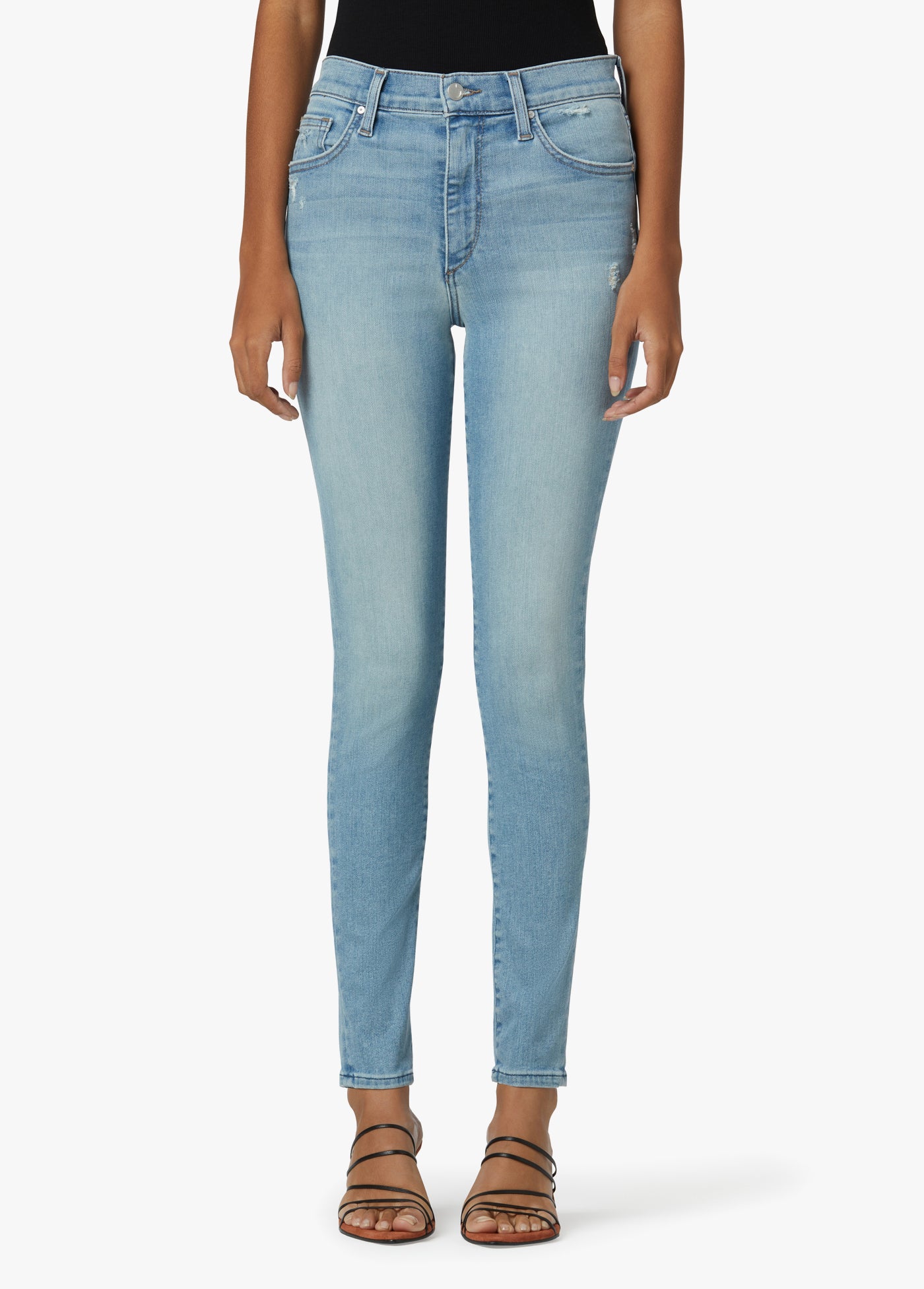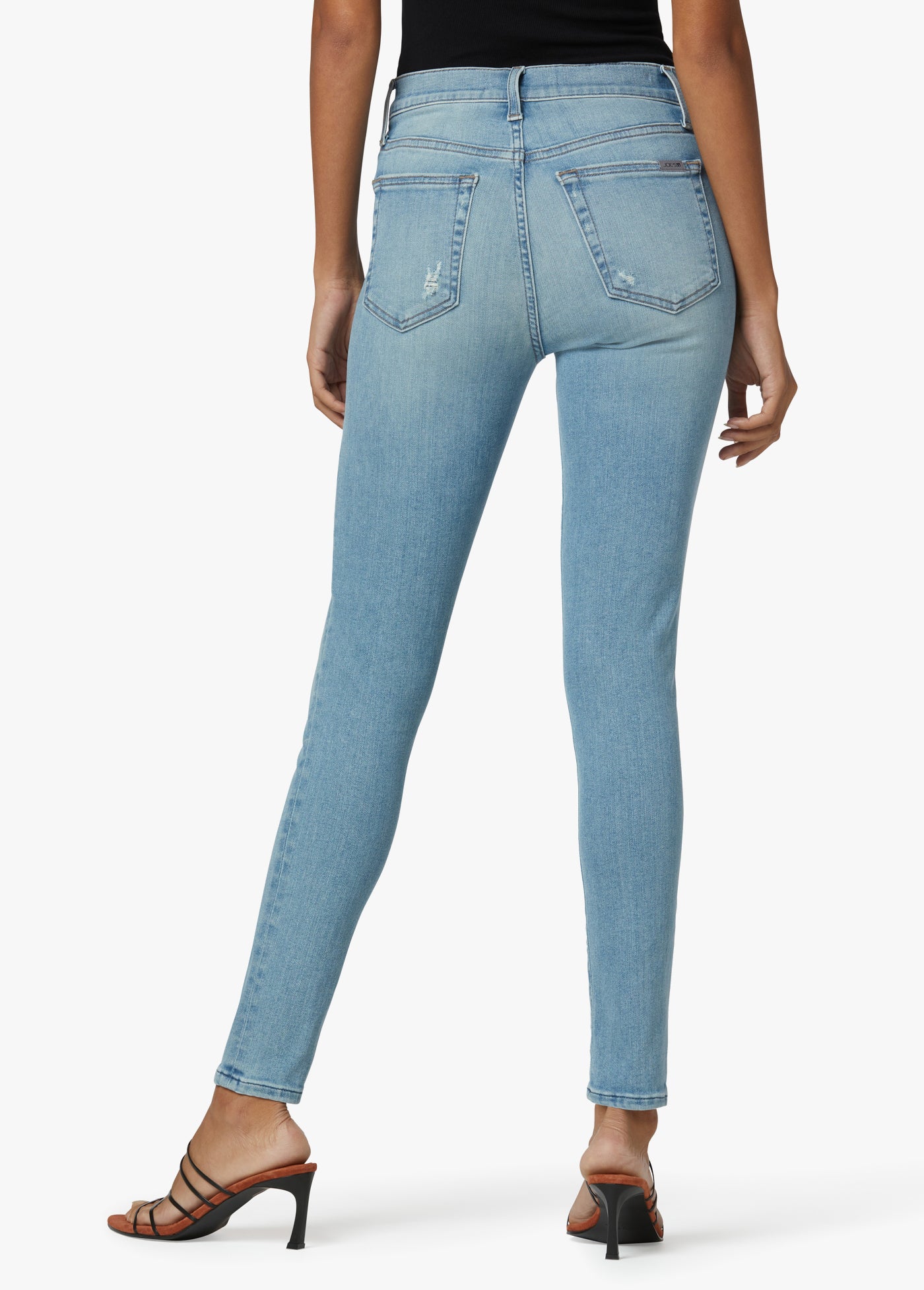 Cut from denim with shape-hugging stretch designed especially for hourglass silhouettes, these medium-light skinny jeans have heavy grinding and hit at the ankle.