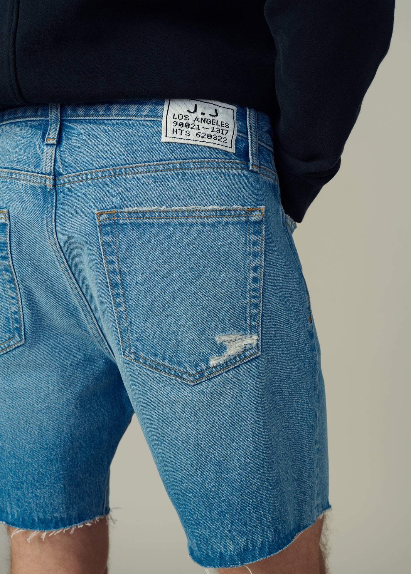 A fashion 5-pocket short with a relaxed leg and mid-thigh-length inseam.