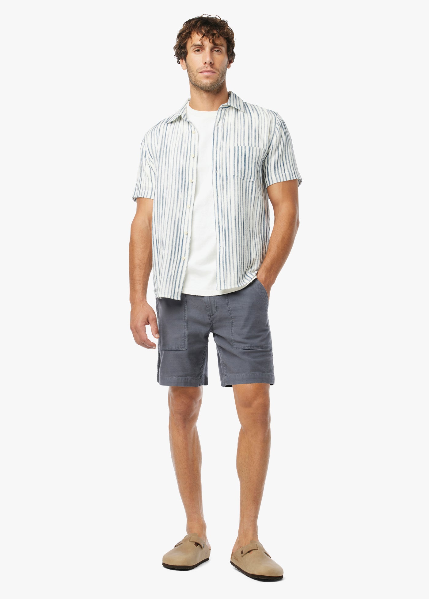 Inspired by classic workwear, The Fatigue Short has an easy, straight fit cut from cotton stateen that's been garment dyed for a laidback look. The shorts are detailed with patch leg panels utility-style pockets and just enough texture.