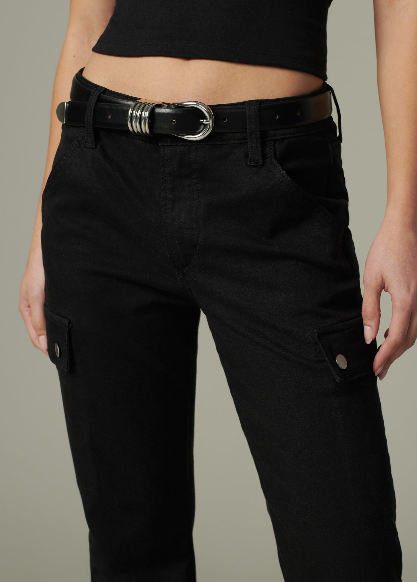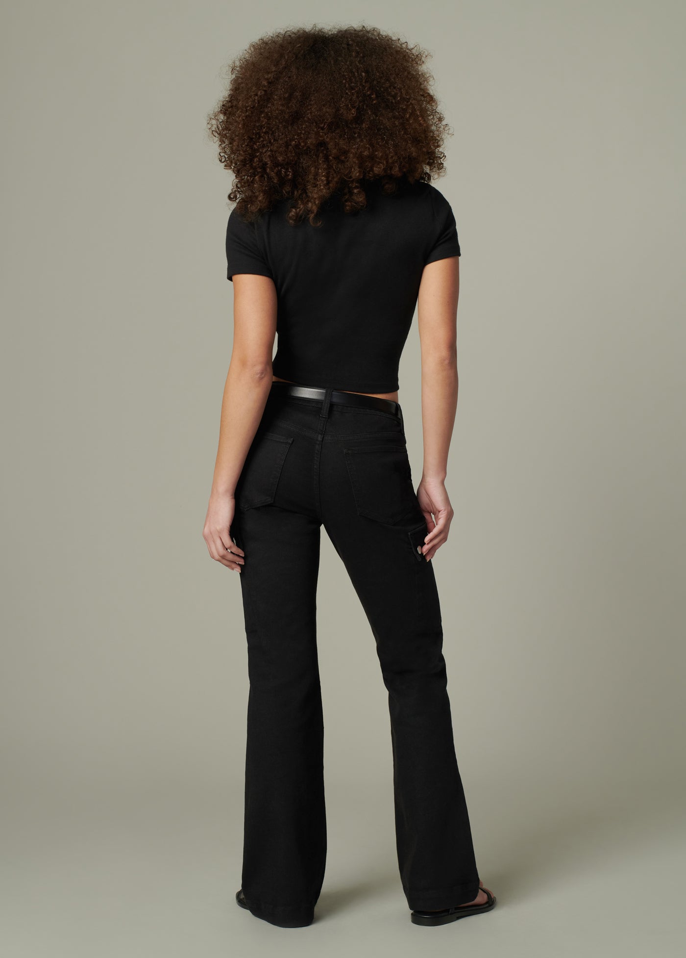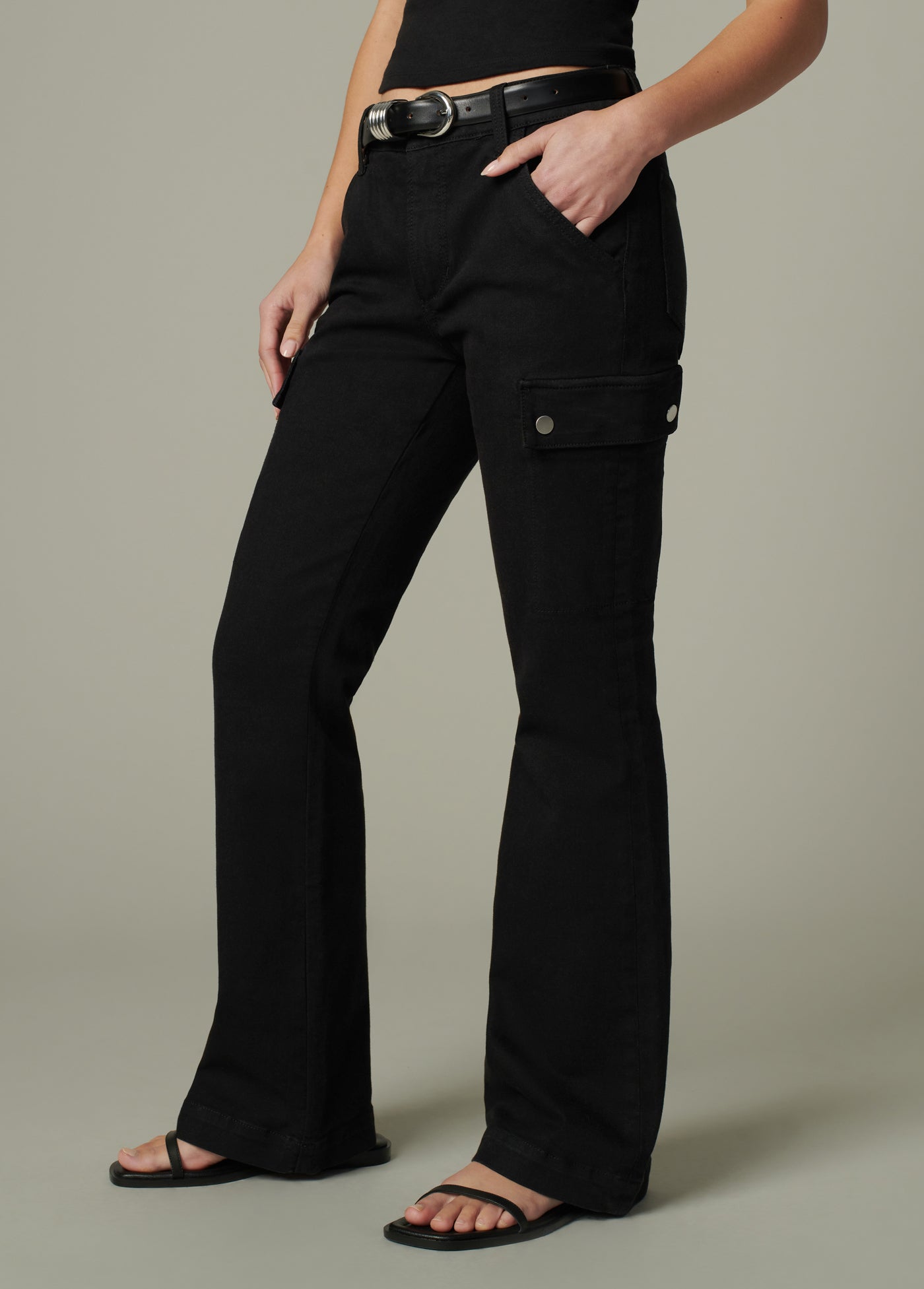 The mid-rise Frankie Cargo bootcut has vintage-inspired details–bigger back pockets, a longer zipper fly and cargo pockets–with the comfort super stretch denim and a modern fit that perfectly proportioned for smaller frames. Because the Frankie in Black creates a chic silhouette, these cargos carry on from work to weekend.