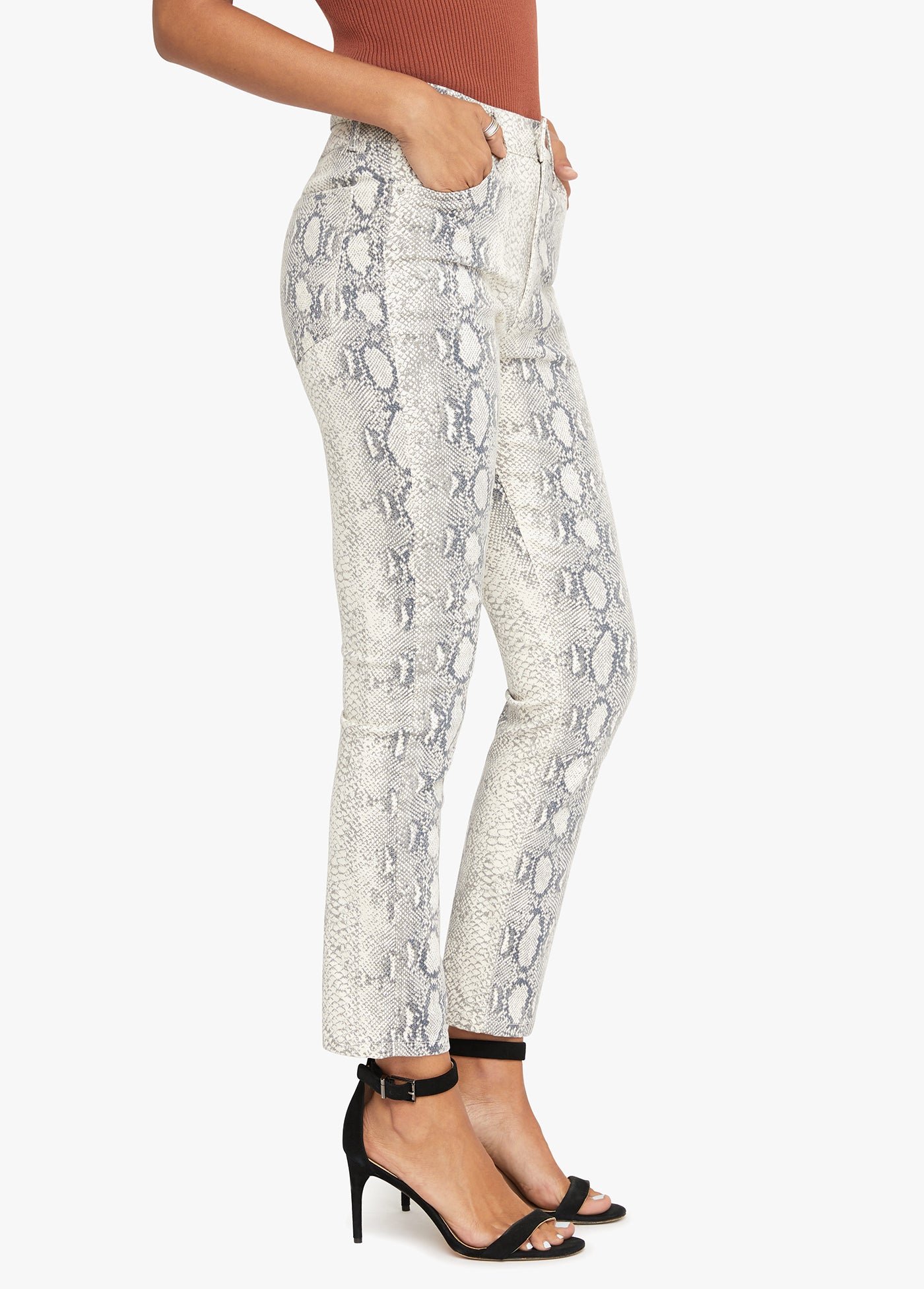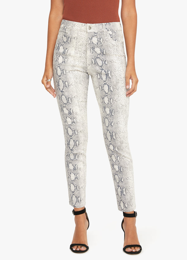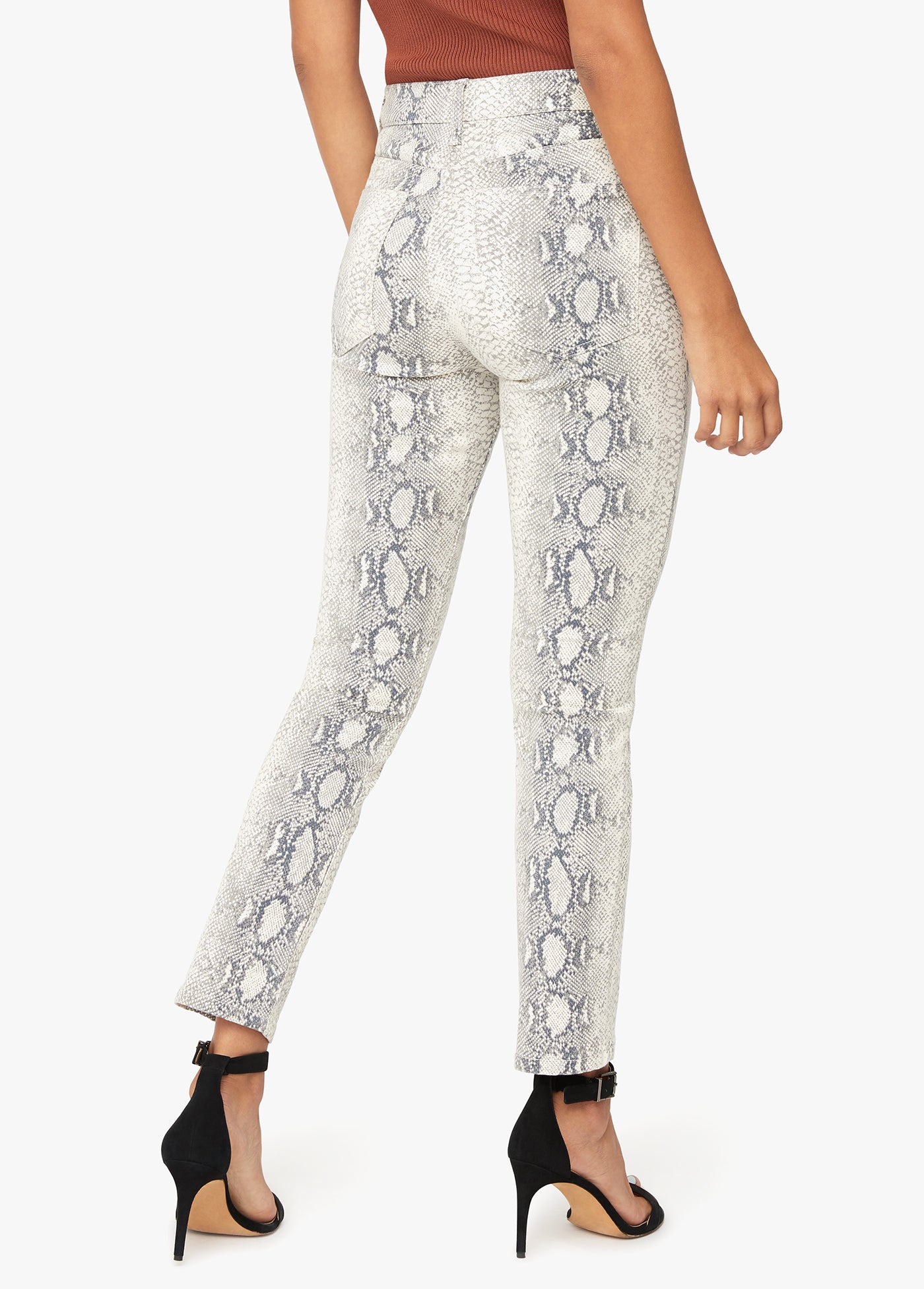 Snake print is having a moment right now, and the High Rise Cigarette Ankle pant is an effortless way to incorporate it into your style repertoire. The reptile pattern punches up the neutral base, adding an element of the wild to this five-pocket silhouette.