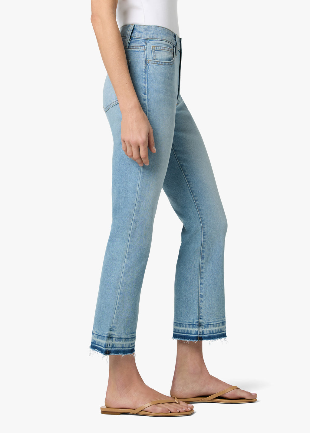A high rise and wide leg with a cropped-length bootcut and released hem..