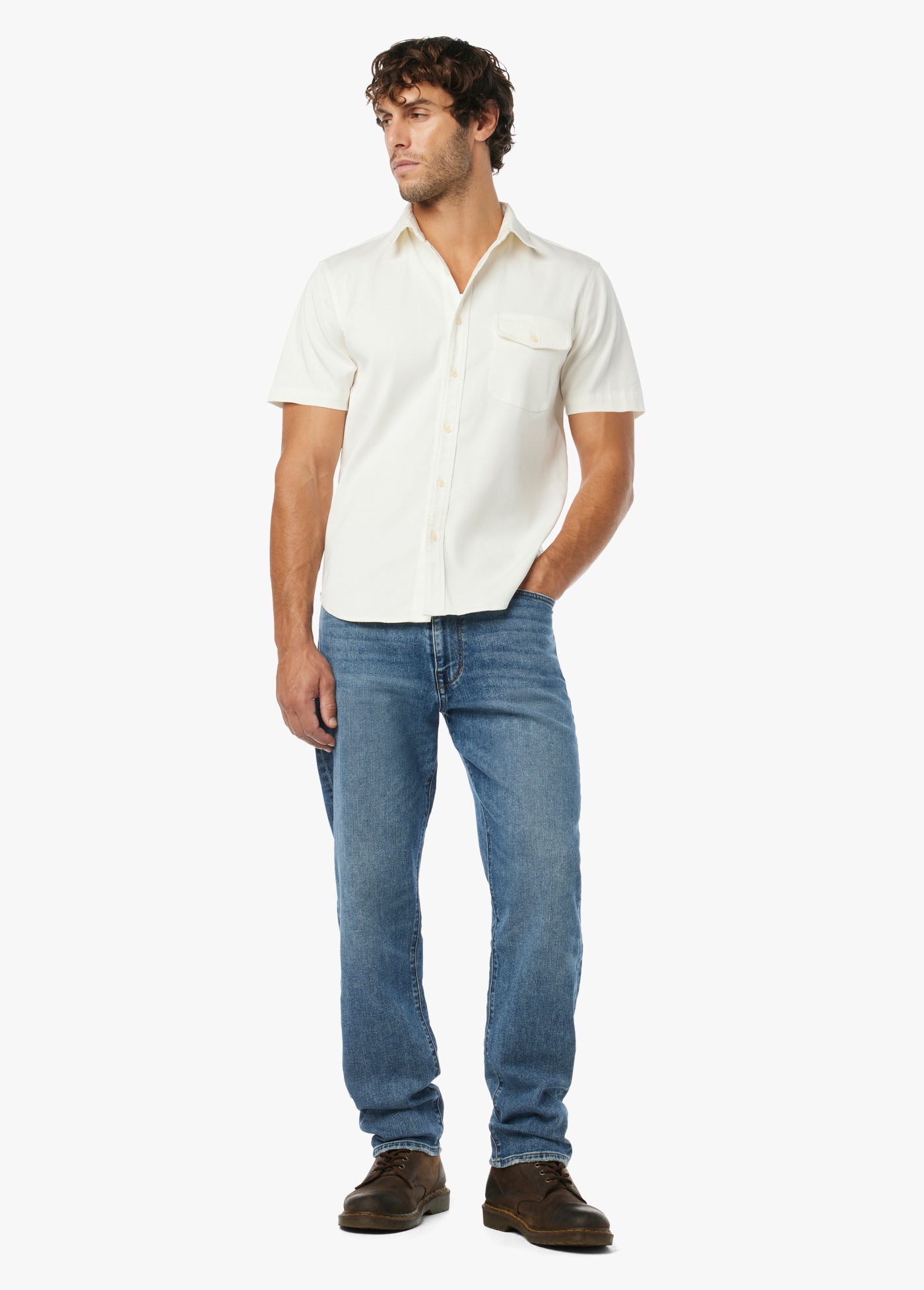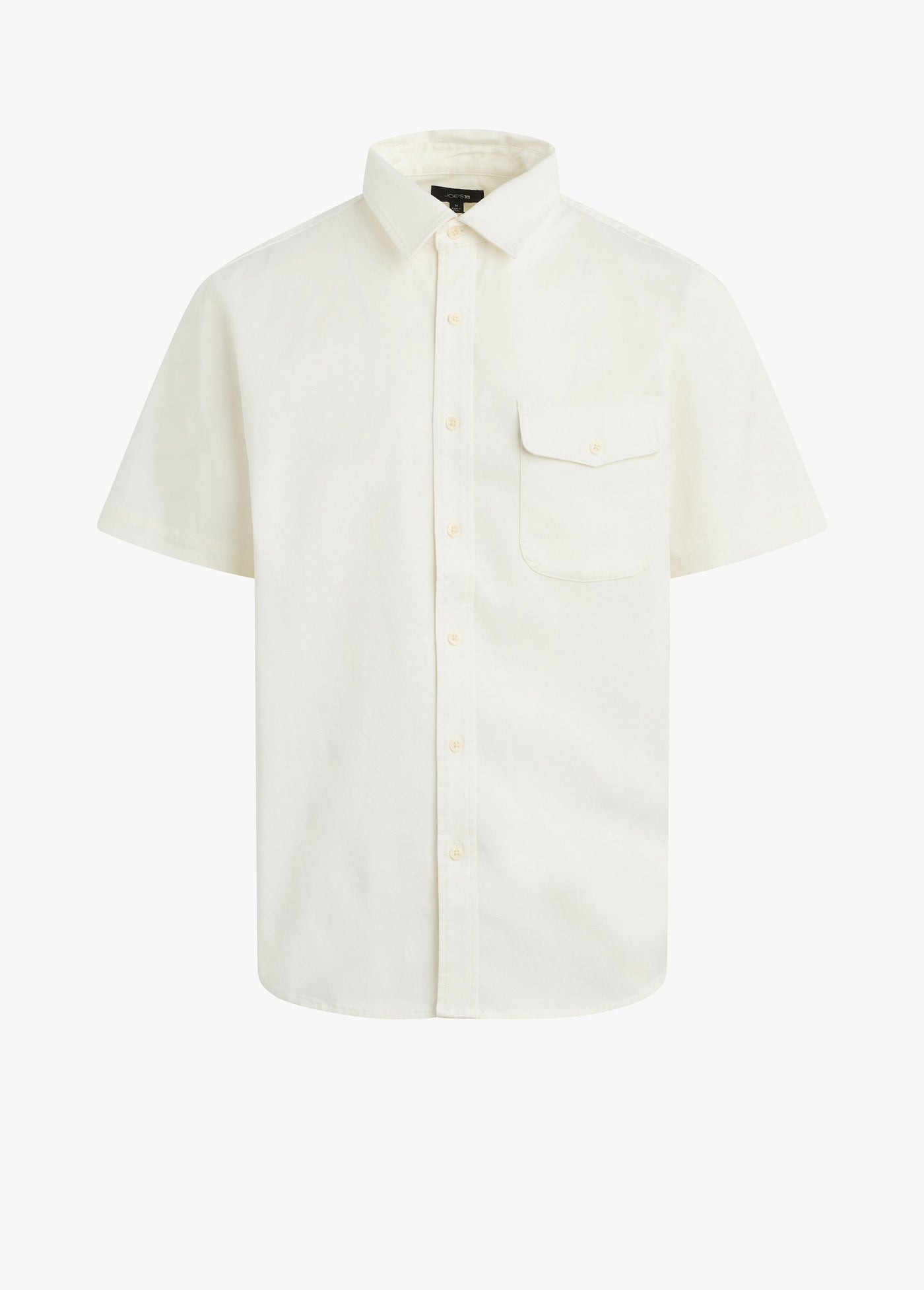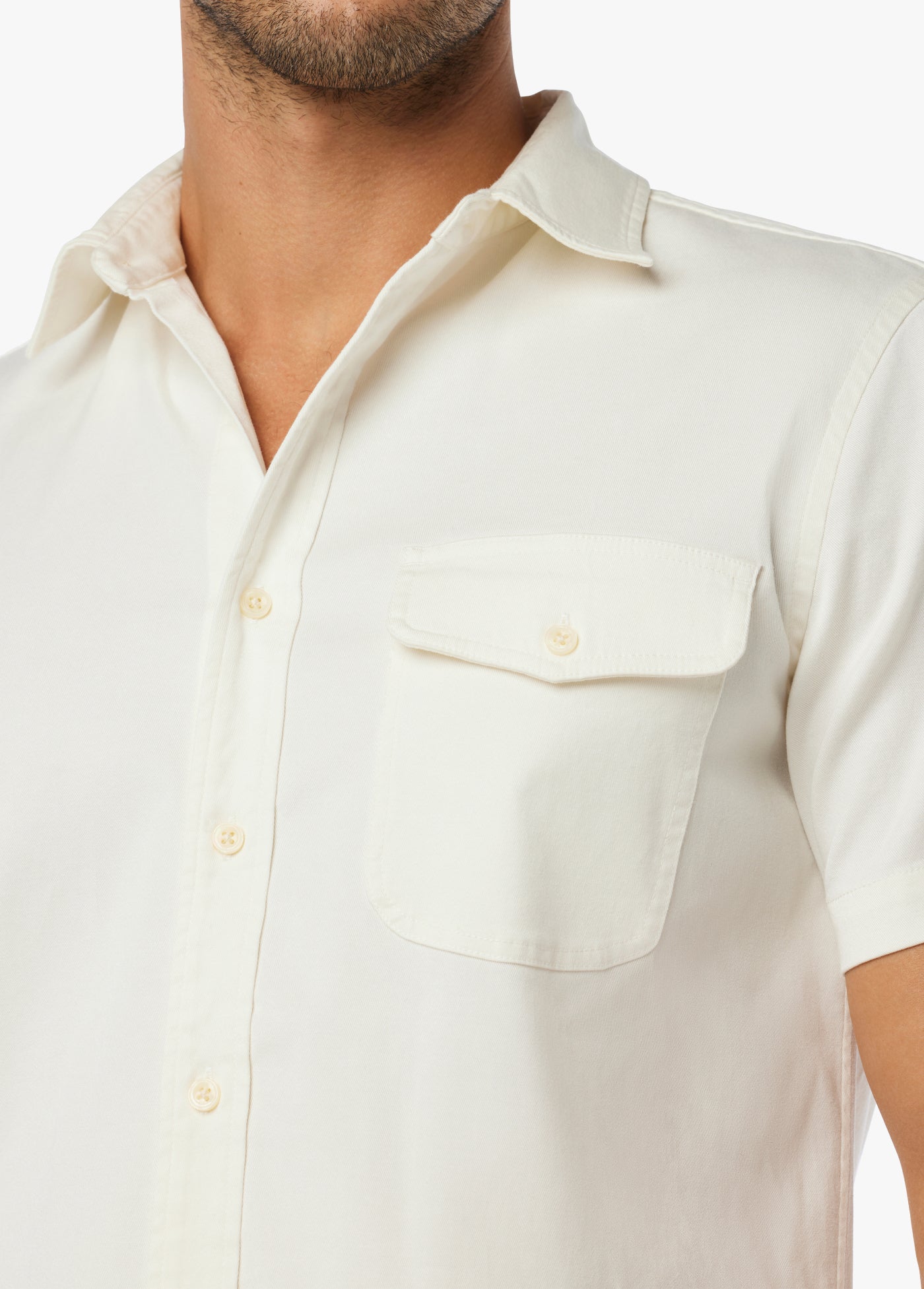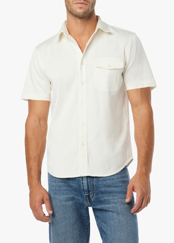 The Howard Shirt is a short sleeve button down with a vintage style patch pocket detail on the front chest for an added detail. This shirt comes in a neutral color for easy styling and is garment dyed so it's extra soft.