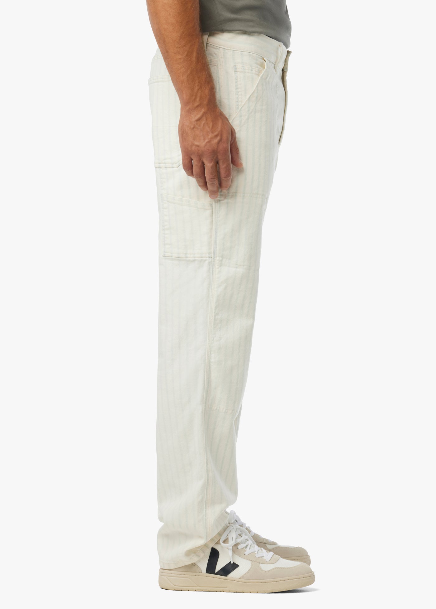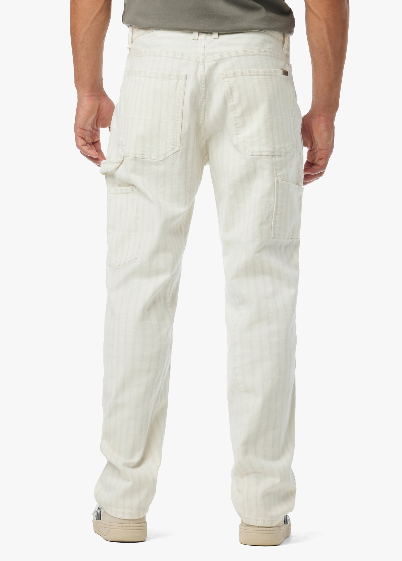 The Jax Utility Pant in Hickory Stripe--made from garment-dyed, 100% cotton sateen--is cut for an easy fit. Inspired by classic workwear, these straight-leg pants are detailed with patch leg panels, utility-style pockets and hammer loop.