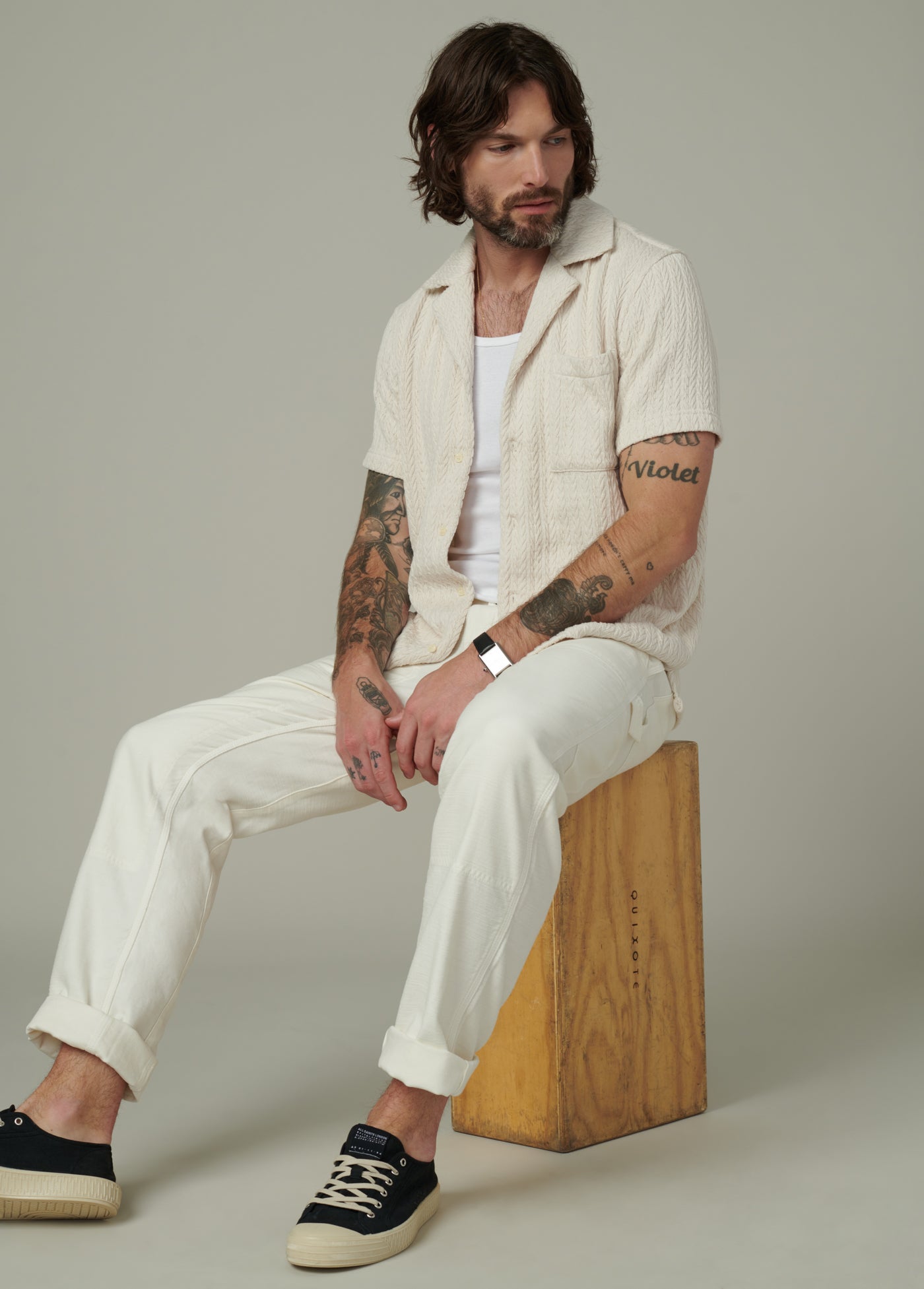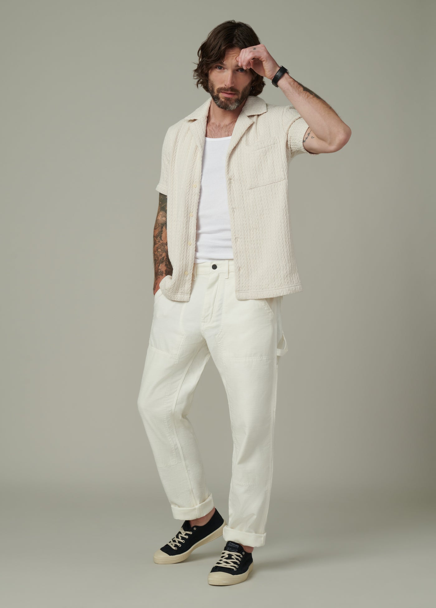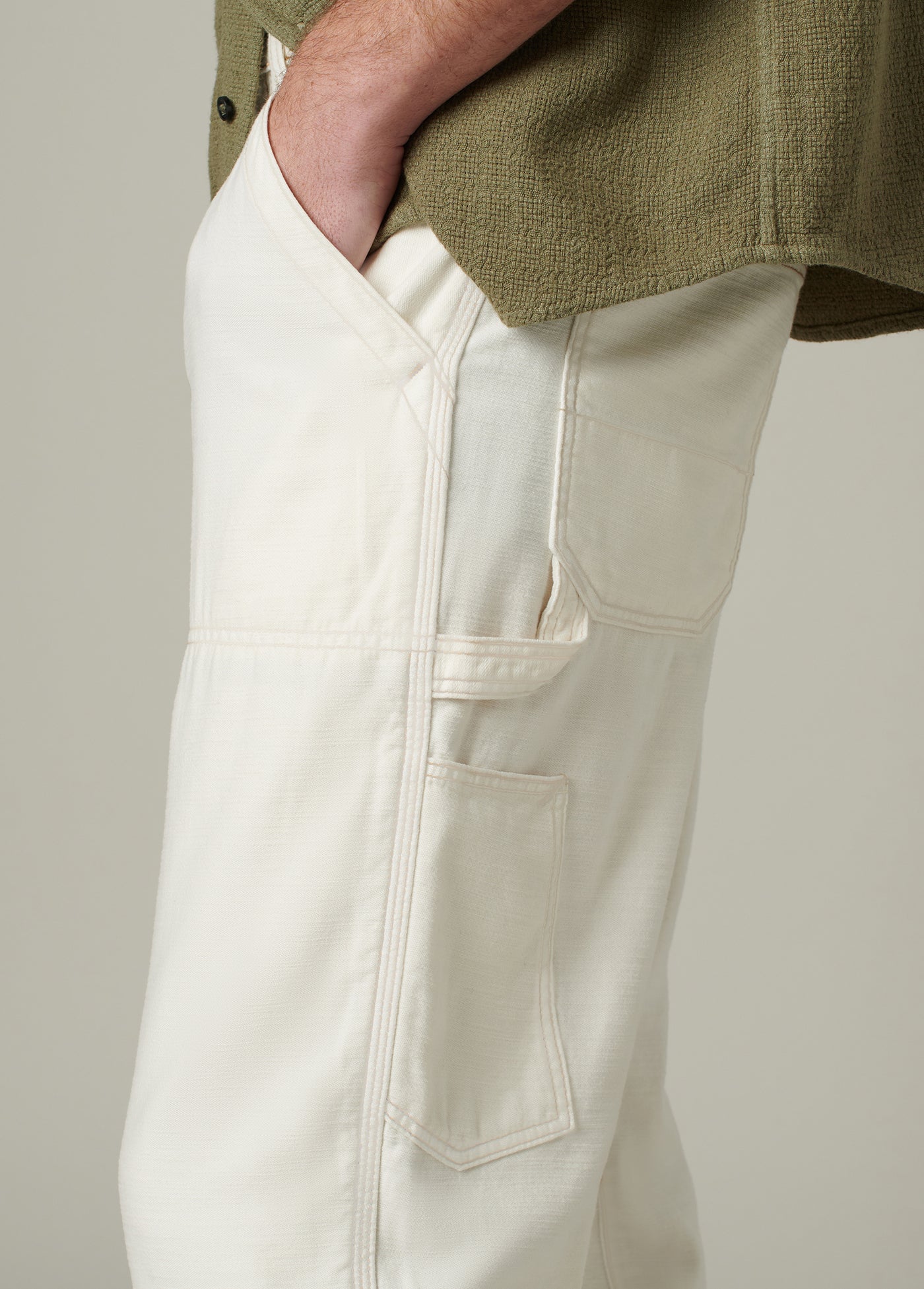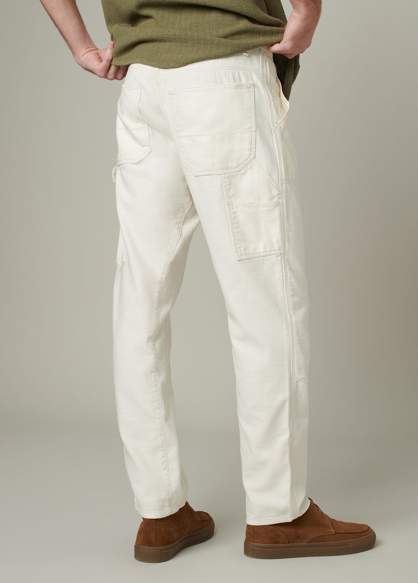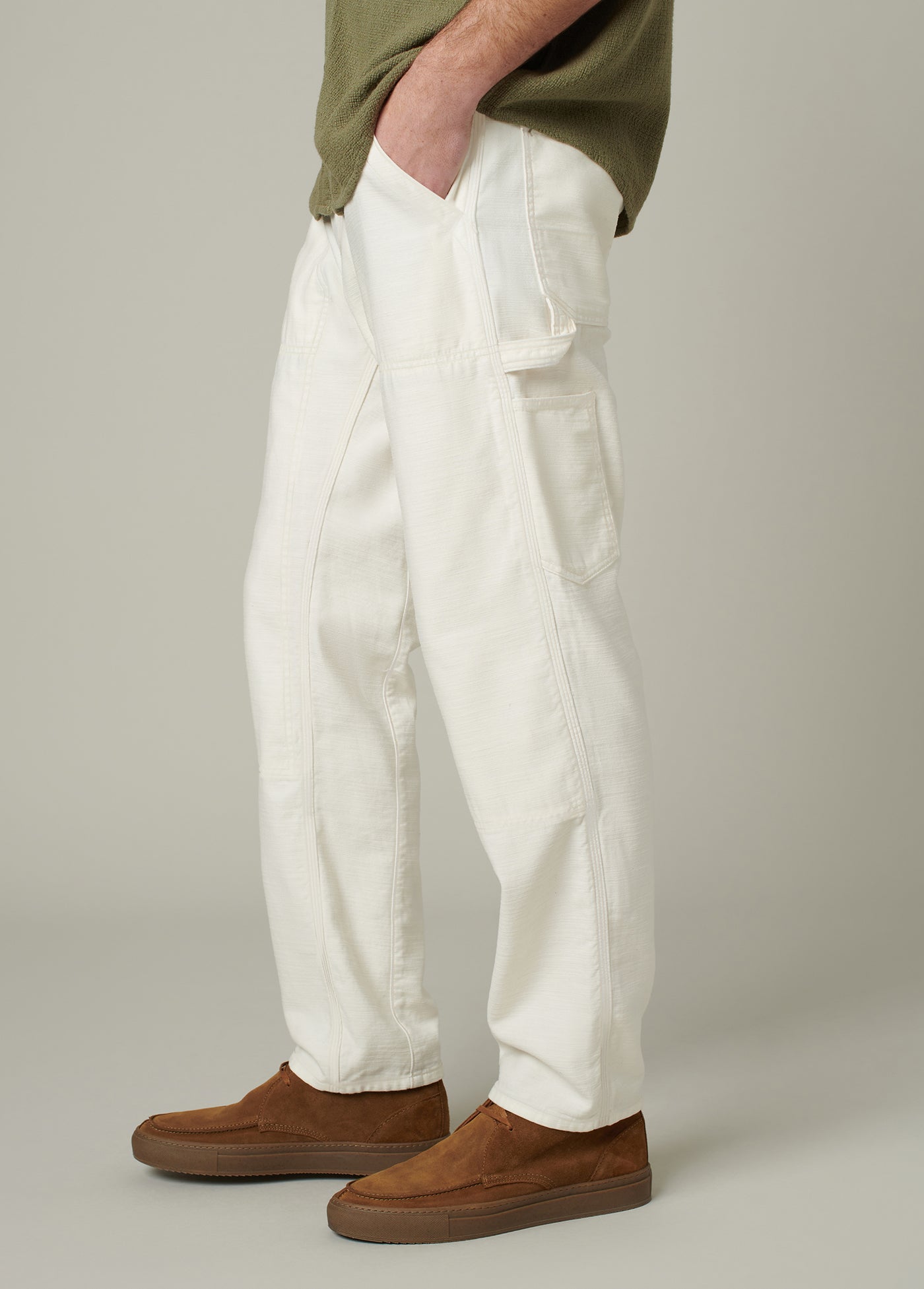 The Jax Utility Pant--made from garment-dyed, 100% cotton sateen--is cut for an easy fit. Inspired by classic workwear, these straight-leg pants are washed out and detailed with patch leg panels, utility-style pockets and hammer loop.
