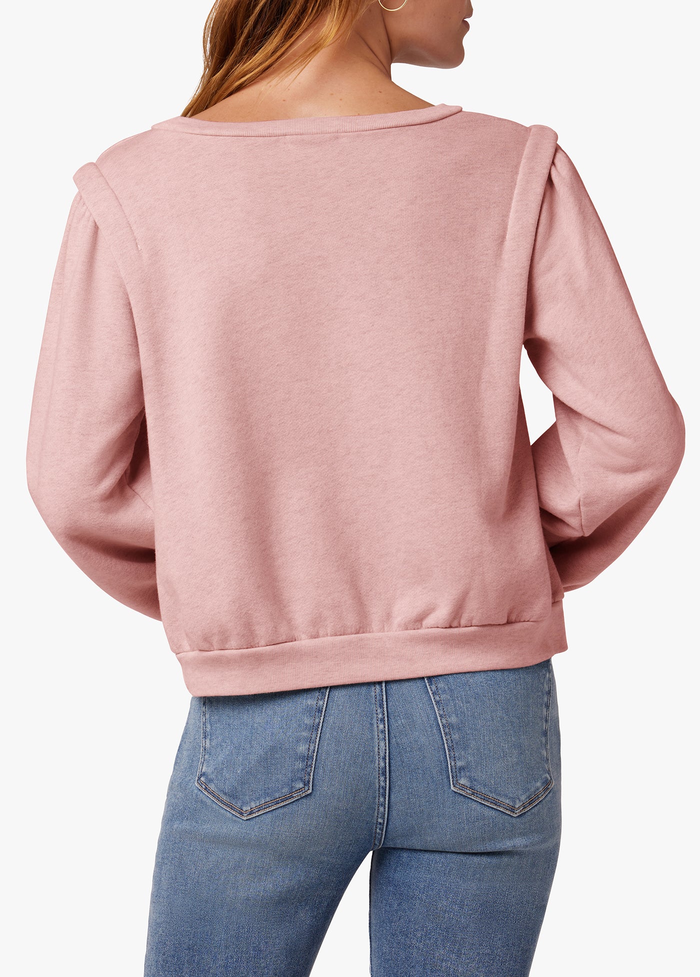 It’s a subtle nod to the nineties, the Jolie sweatshirt–with shoulder tuck detail and full sleeves–is cut from a soft melange jersey so it’s as comfortable as it is cool. And since its cast in muted spring hues, it makes it the perfect wear-now, wear-later layer.
