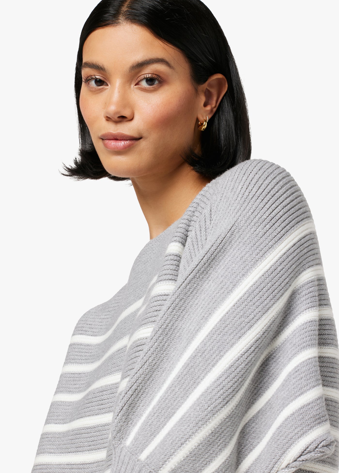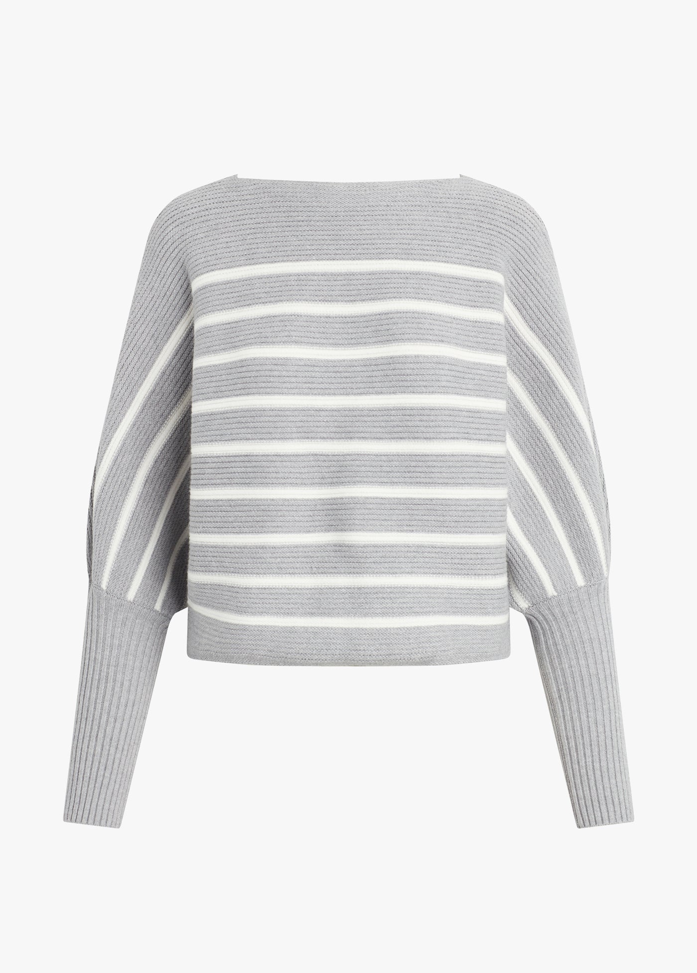 Fitted cuffs and a slightly cropped hem give the Karina Sweater effortless styling. The flattering fit of the slightly fuller sleeves and stripes make this Heather Grey sweater the perfect layer for in-between seasons.