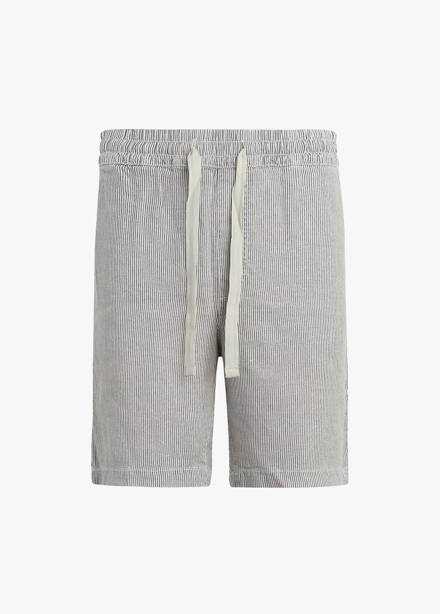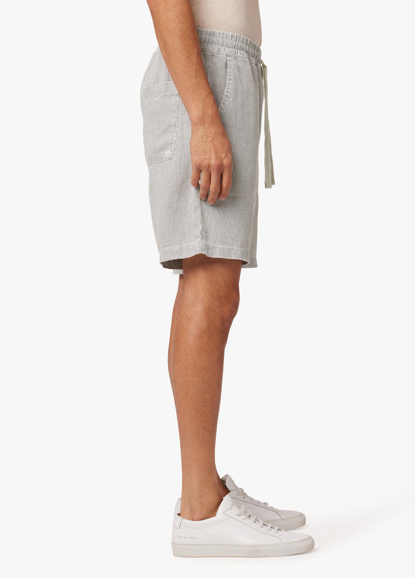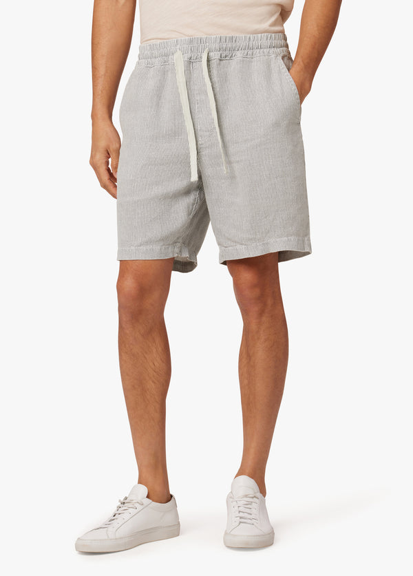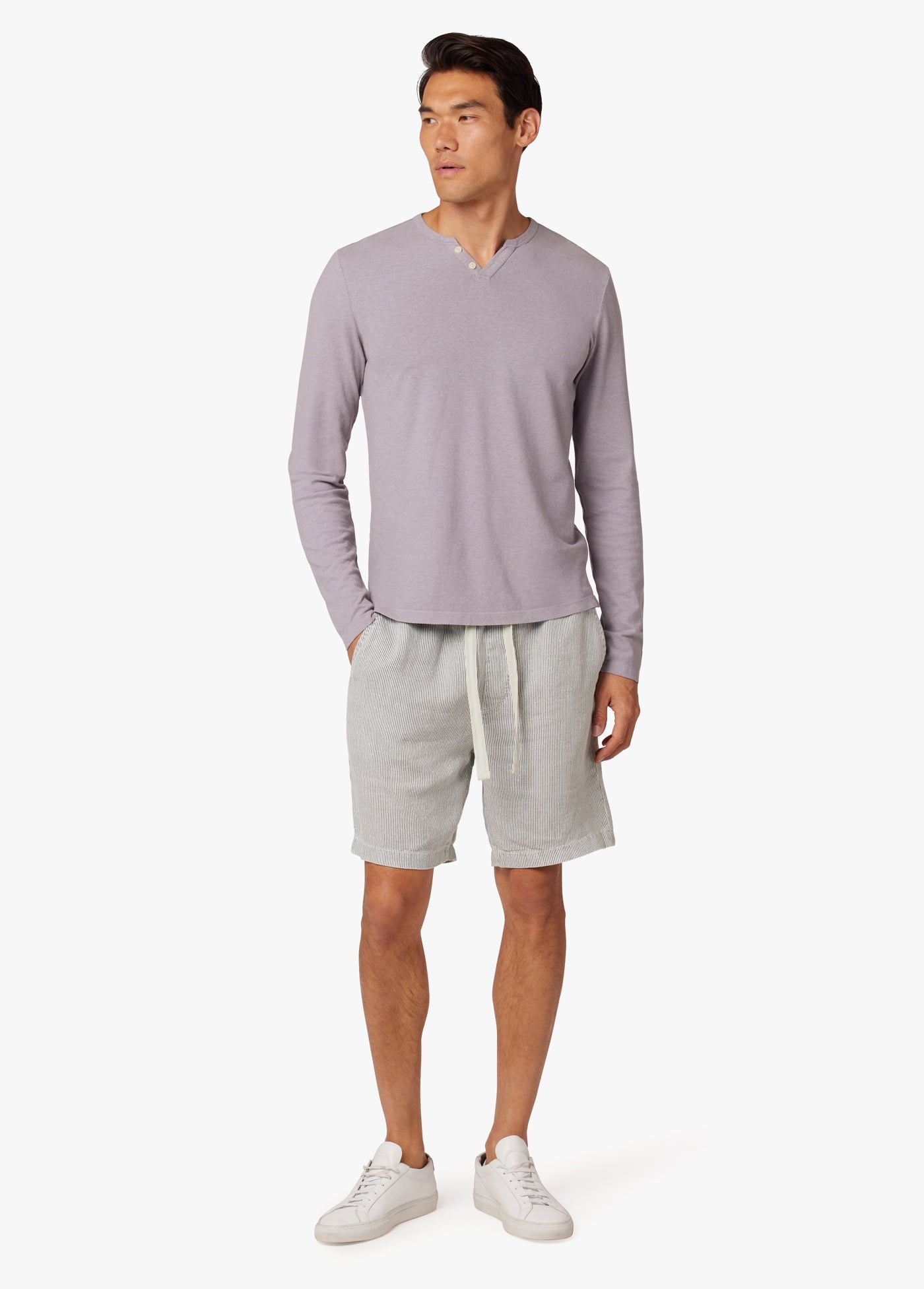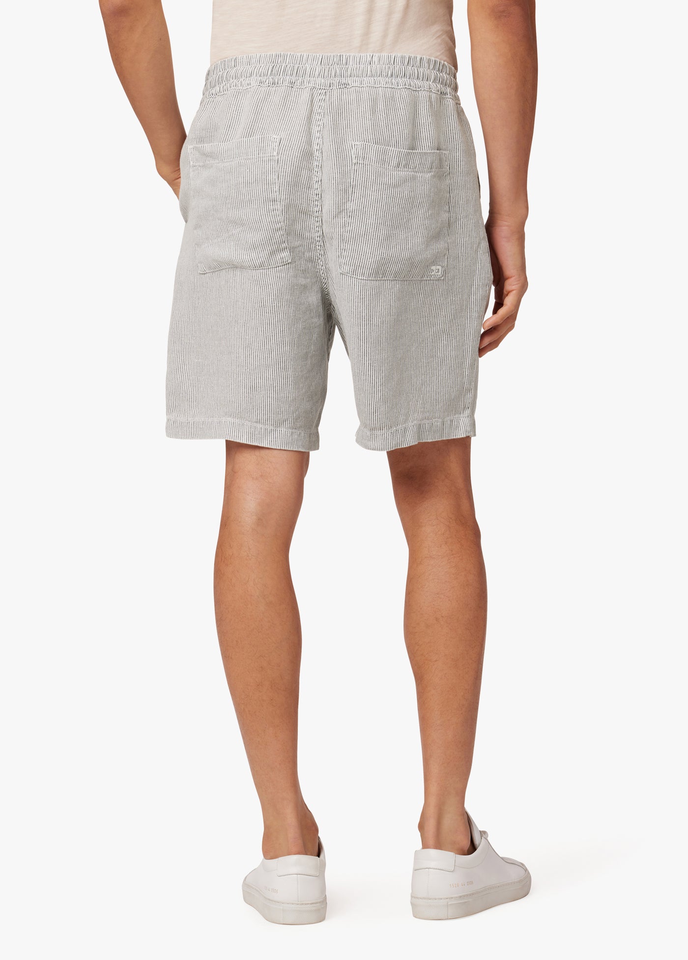 The comfort of lounge with the refinement of tailored linen. These elastic waist shorts sport a drawstring to adjust the fit and the special wash and dye process makes the slub linen feel broken in from the start.