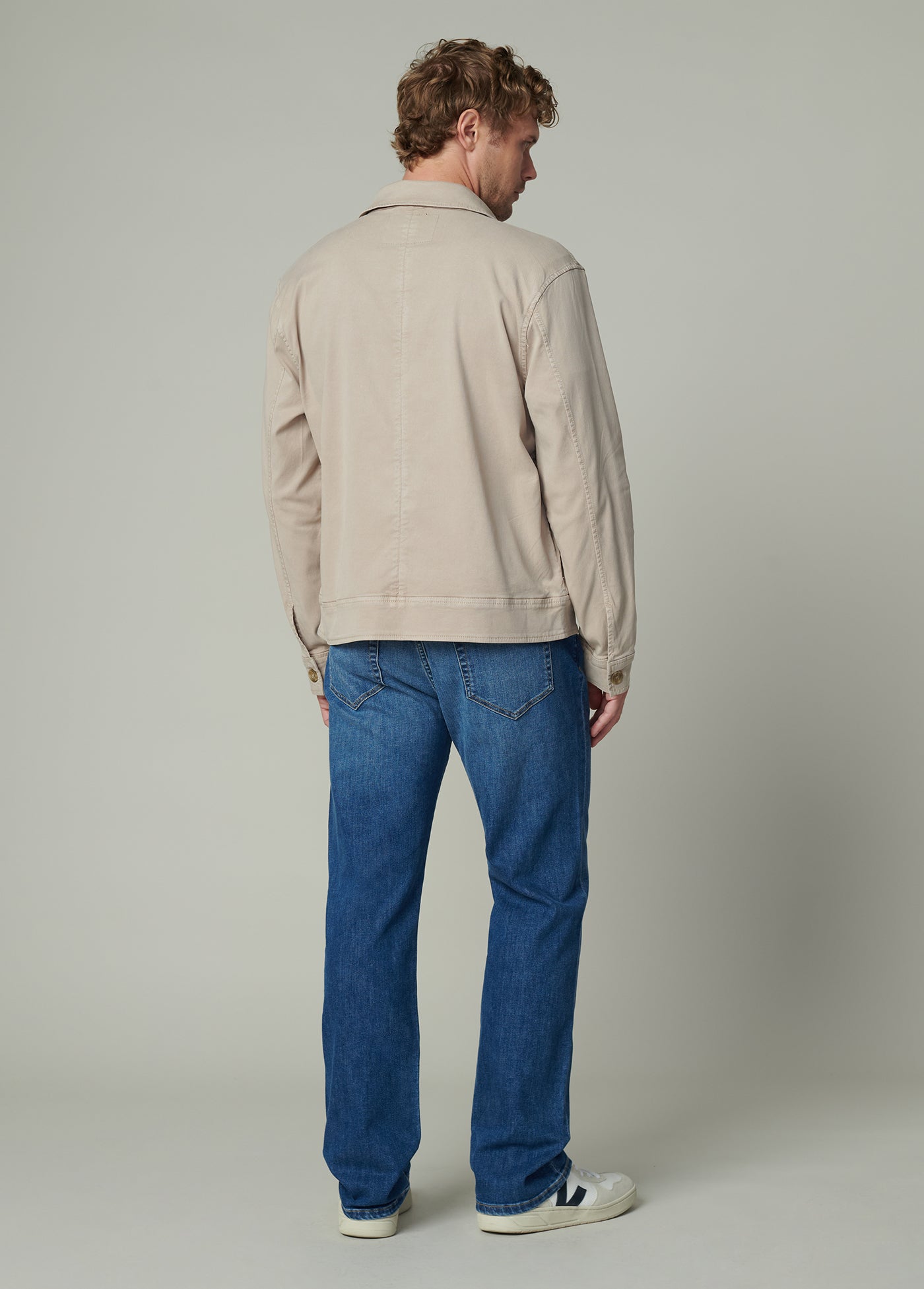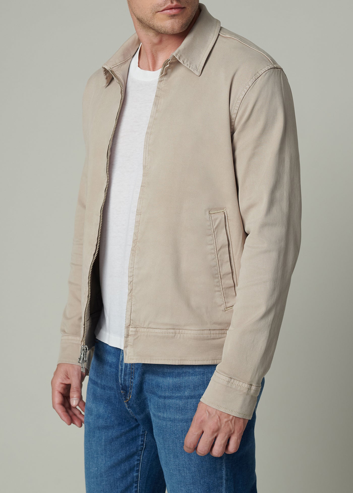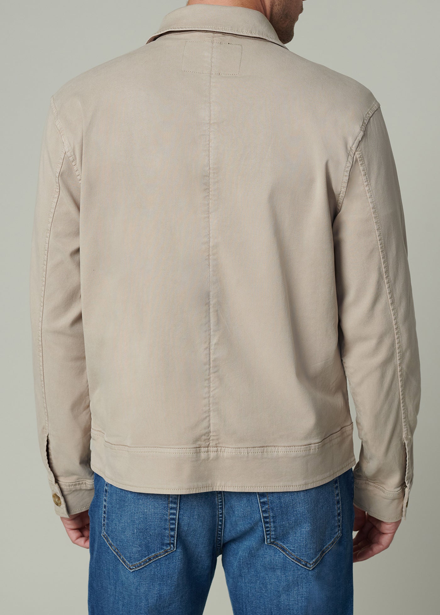 The Mechanic Jacket in Cobblestone has vintage-inspired styling with modern stretch-blend fabric for comfort and softness. It features a zipper closure, binding details and pointed collar in the perfect weight to be worn all year.