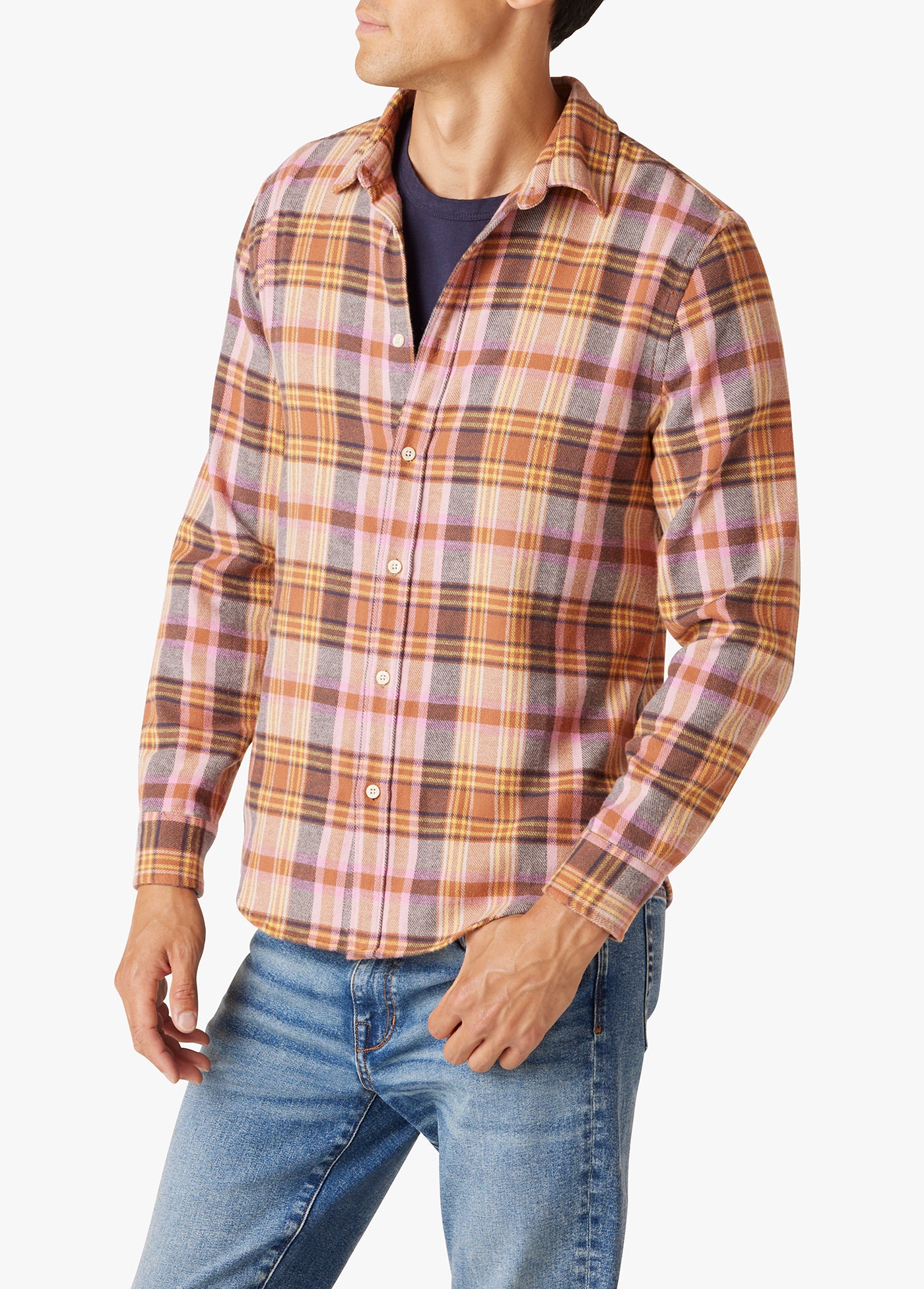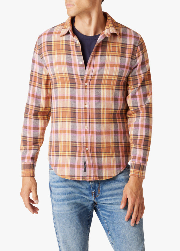 A simple button down shirt is a versatile piece that looks good in just about any situation. Take this super soft brushed flannel version, for example. The long-sleeve style is polished enough for the office (or dinner out), but it works equally well hanging out with t-shirt and jeans thanks to the classic plaid, muted colors, and chambray details inside.