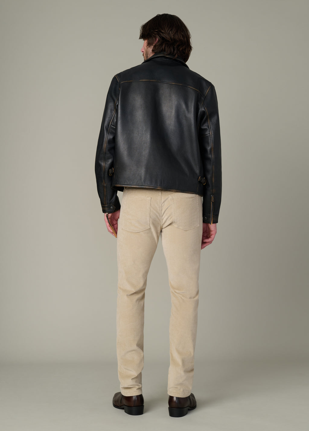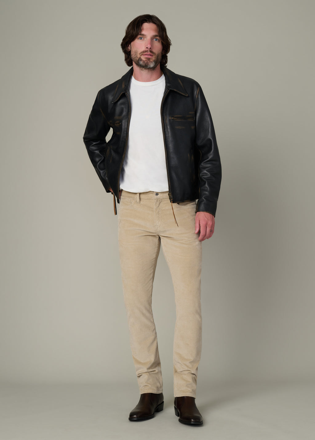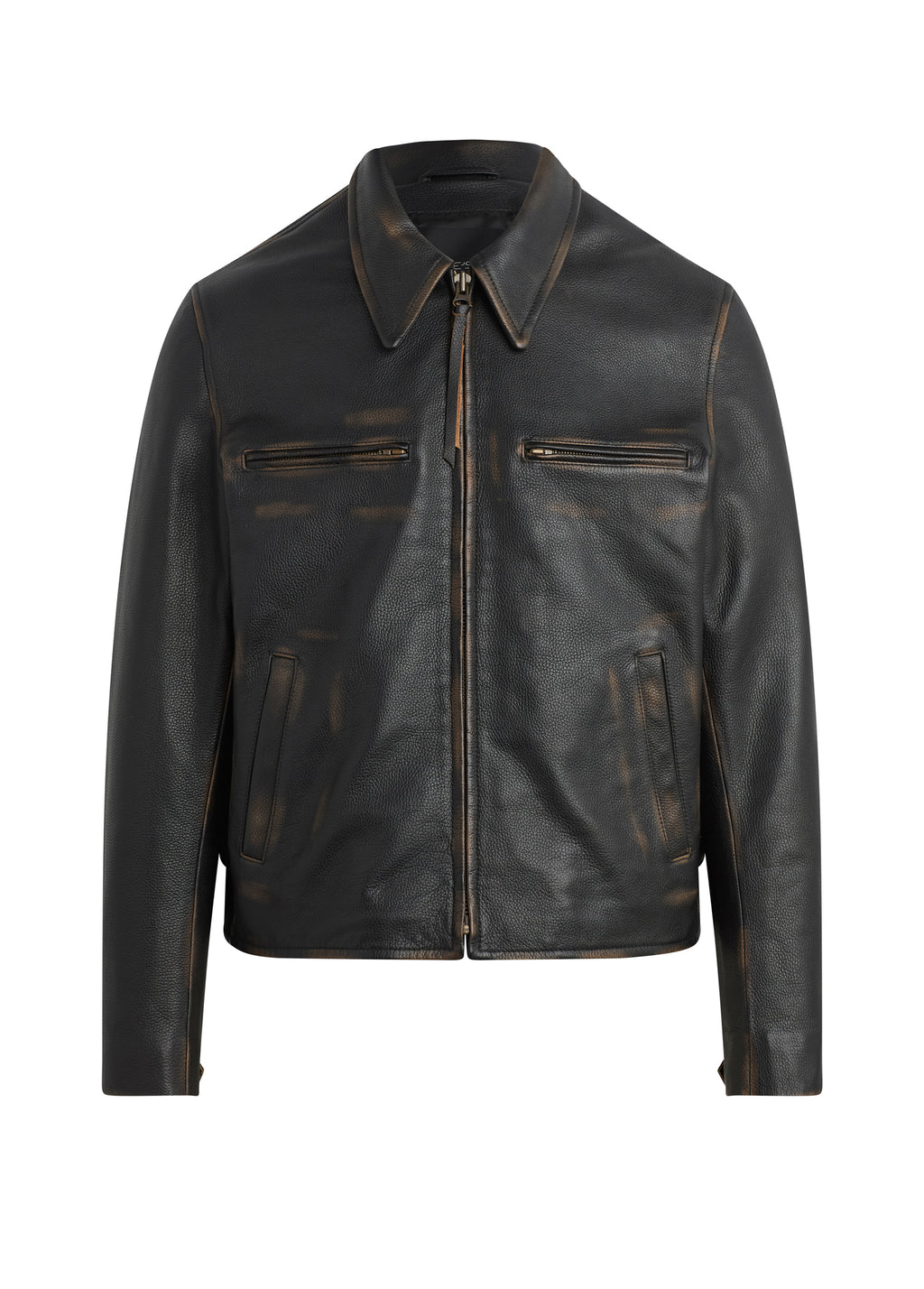 Our classic men's leather jacket made from premium cow leather that has been bleached to create a natural-looking wear.