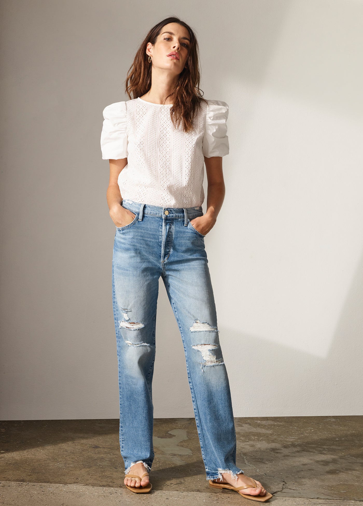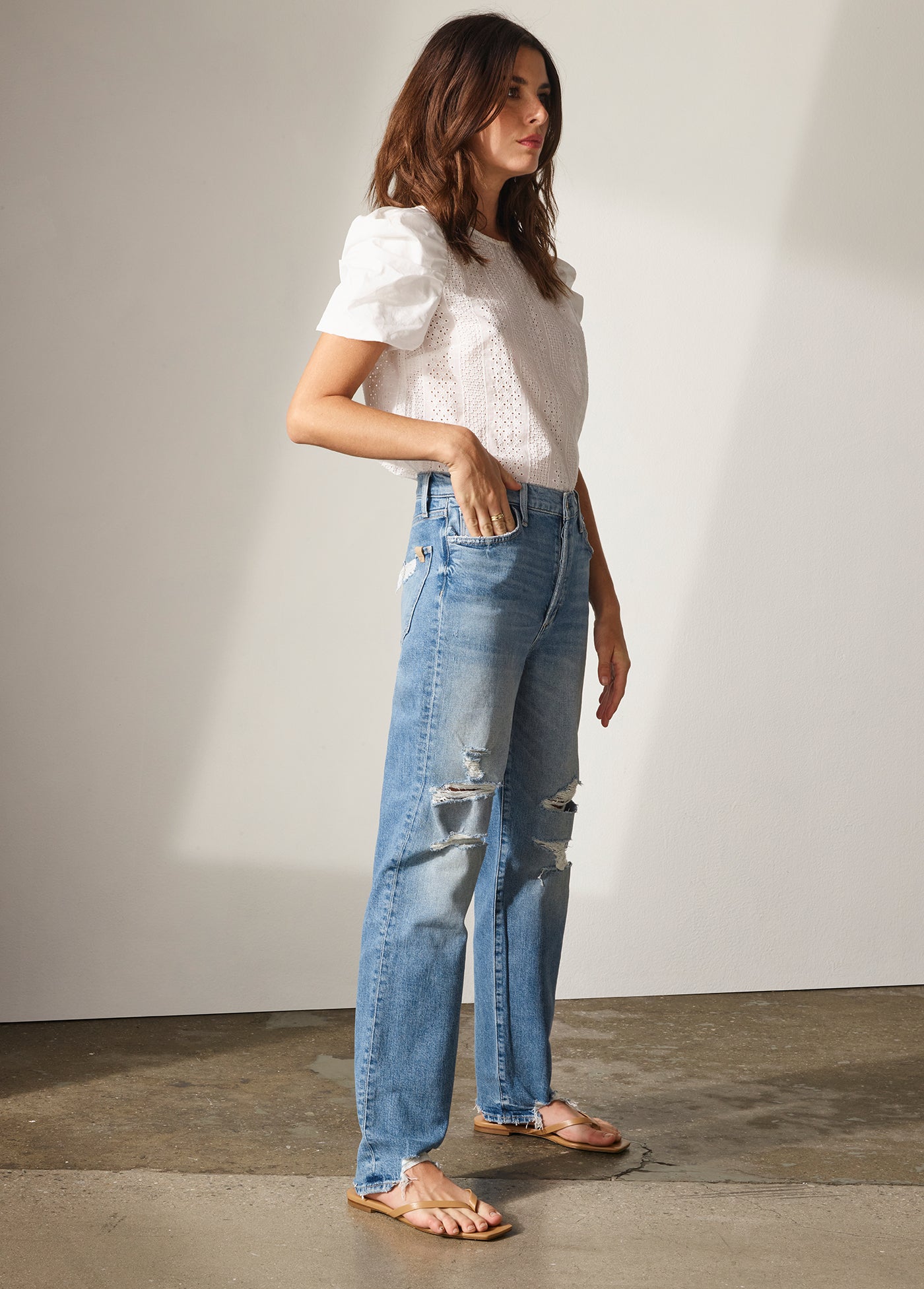 Hand-sanding and a stone enzyme emphasize the laid-back character of the Niki mid-rise boyfriend jean in ‘Chances Destruct’. This five-pocket pair is part of our Earth Conscious collection, created using environmentally friendly practices to reduce water usage and waste output.