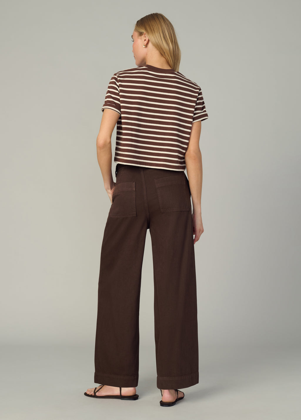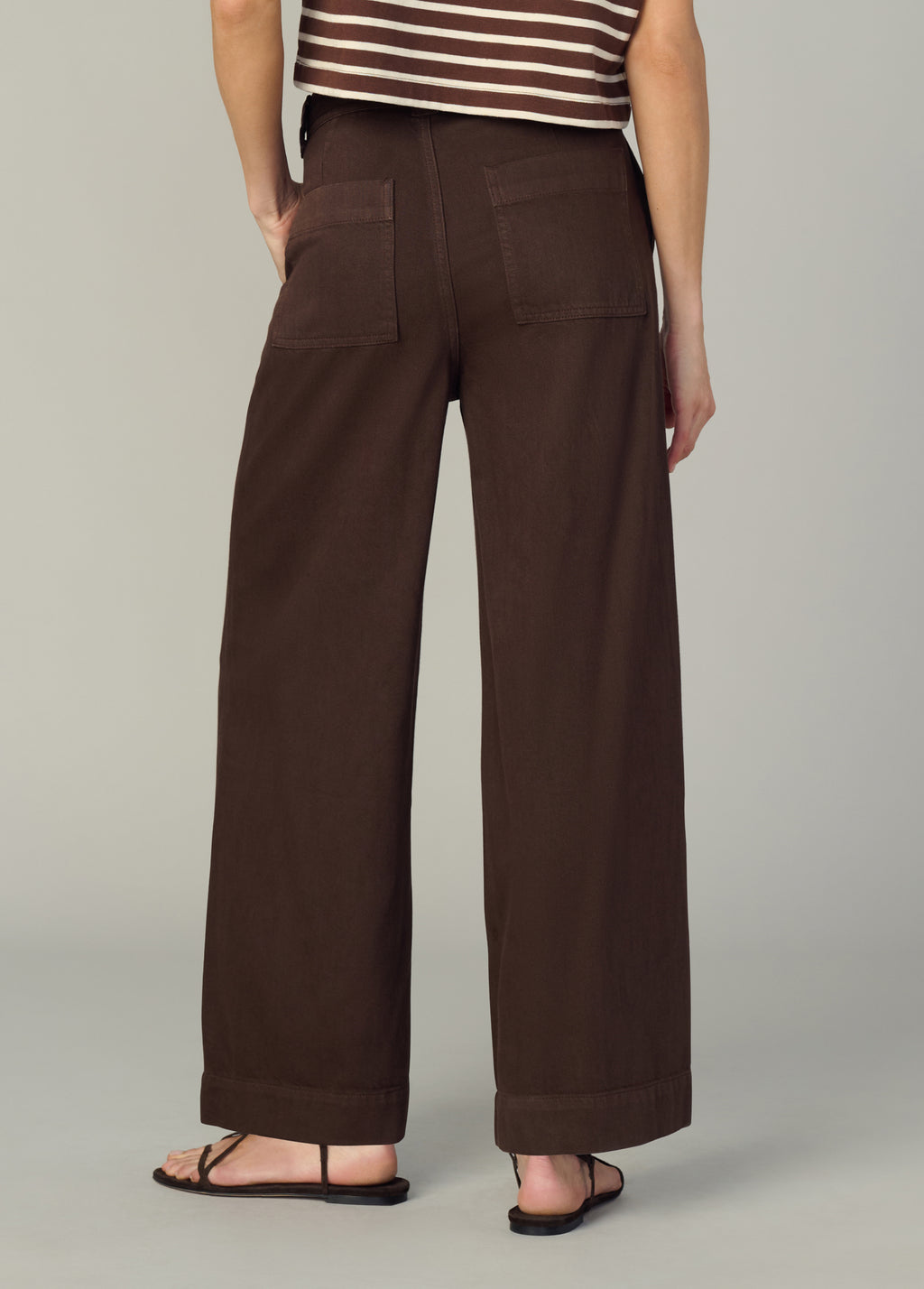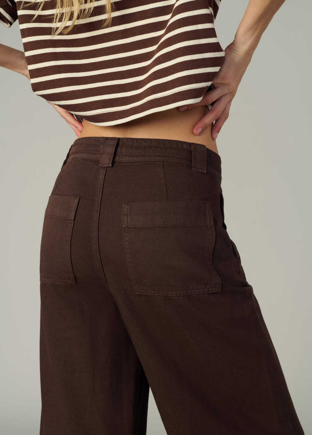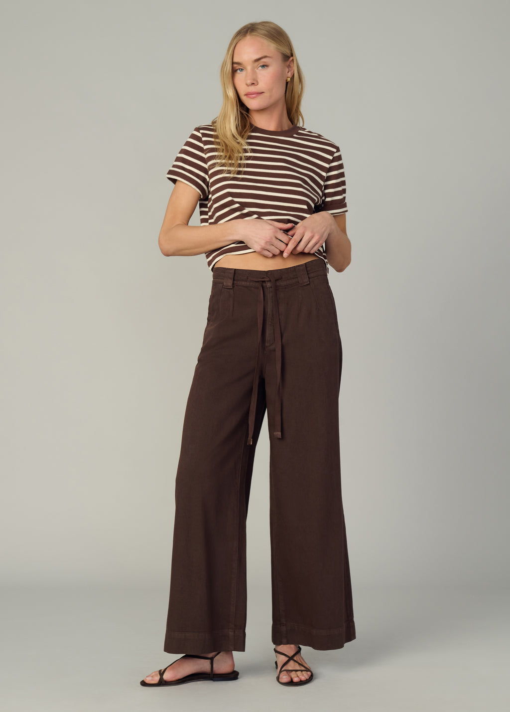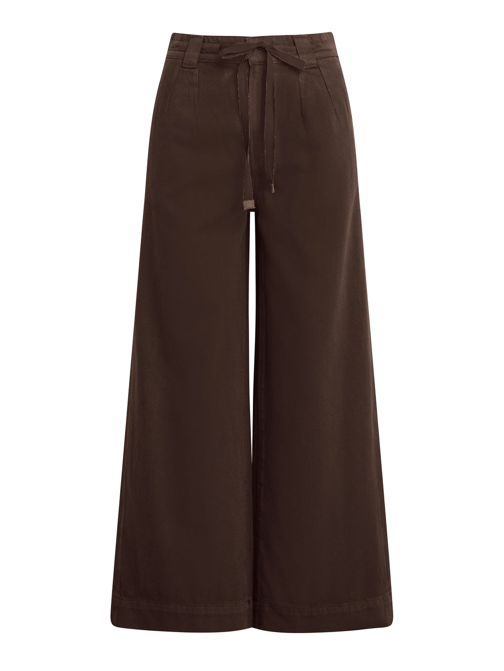 A mid rise and palazzo fit styled with a wide leg and tie front.