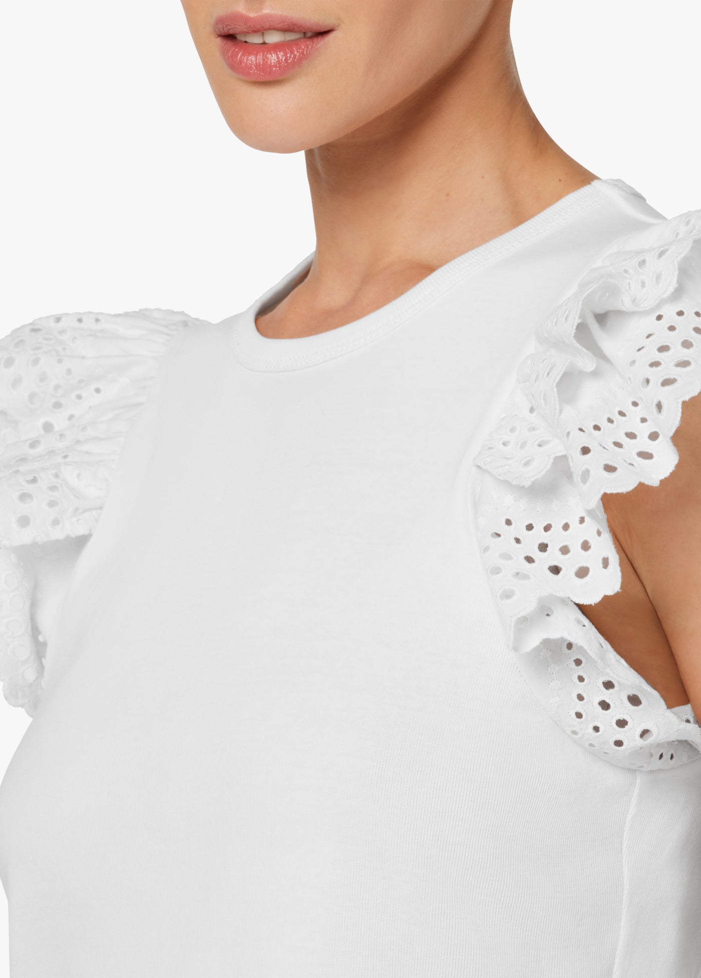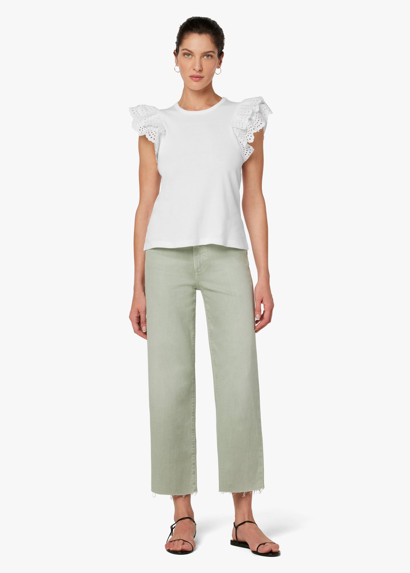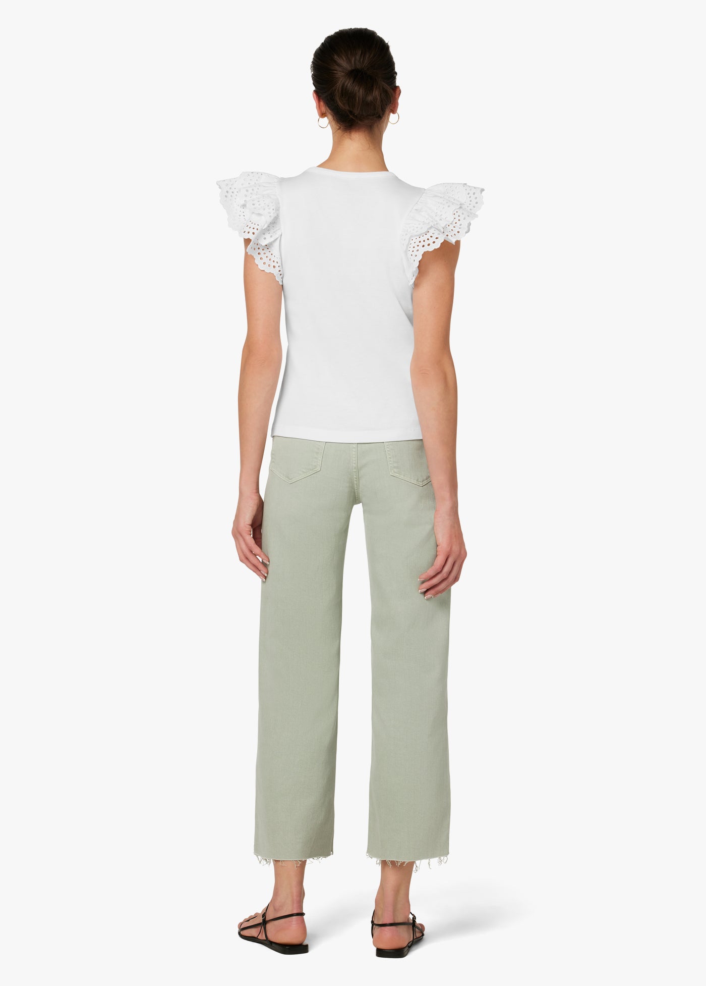 The Alexis Broderie Sleeve Top with embroidered flutter sleeves is the perfect tank to elevate any look. For an effortlessly chic look, pair this top in 'White' with any of our denim bottoms.