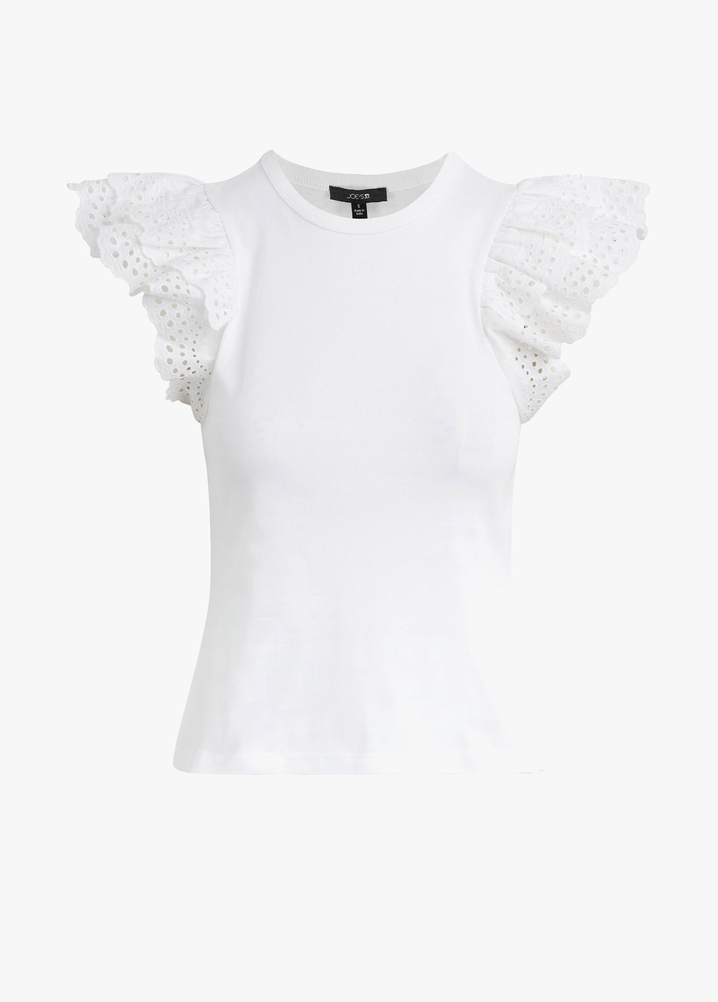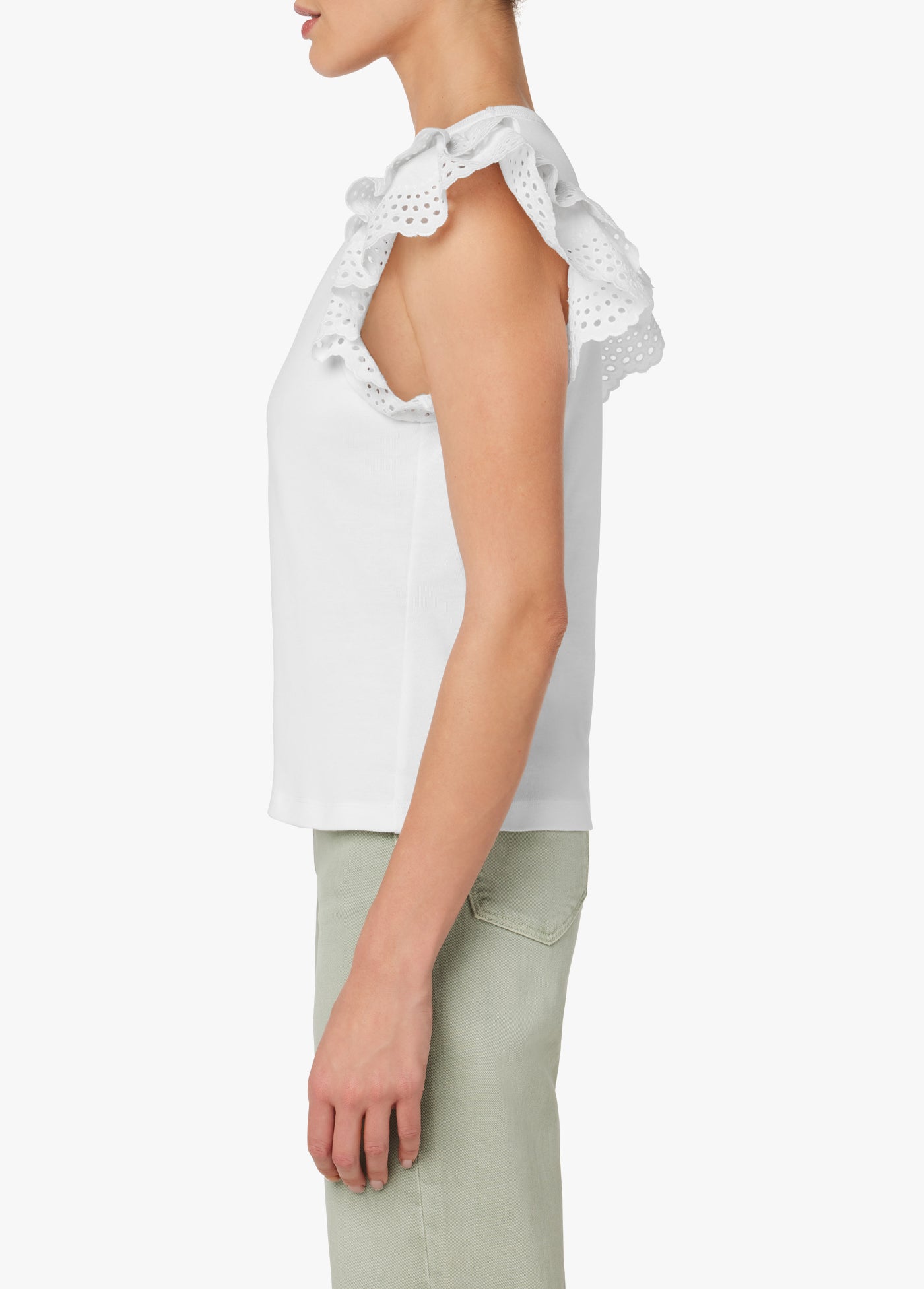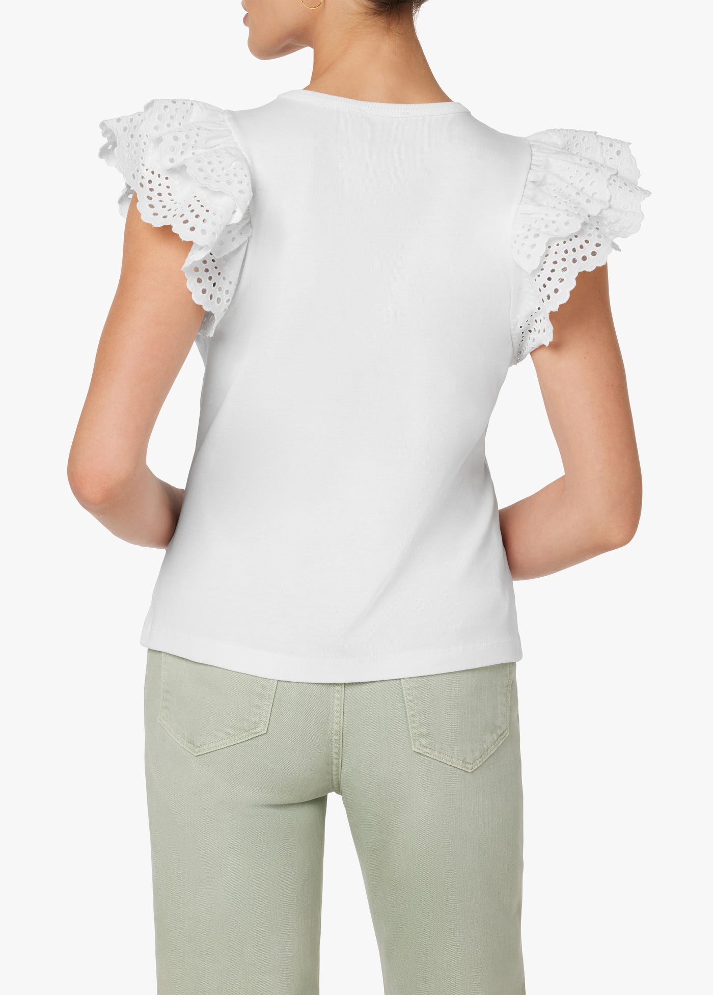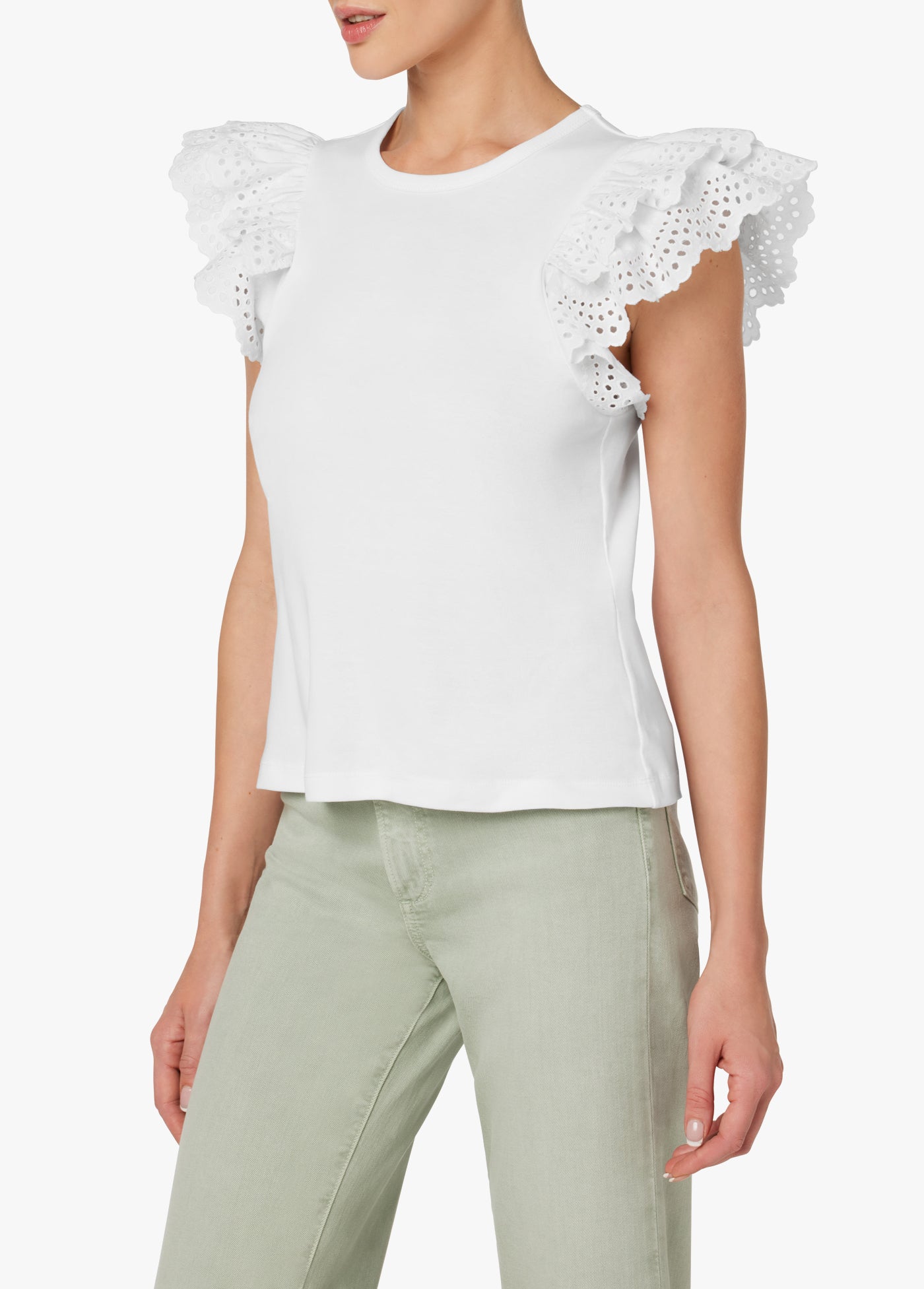 The Alexis Broderie Sleeve Top with embroidered flutter sleeves is the perfect tank to elevate any look. For an effortlessly chic look, pair this top in 'White' with any of our denim bottoms.