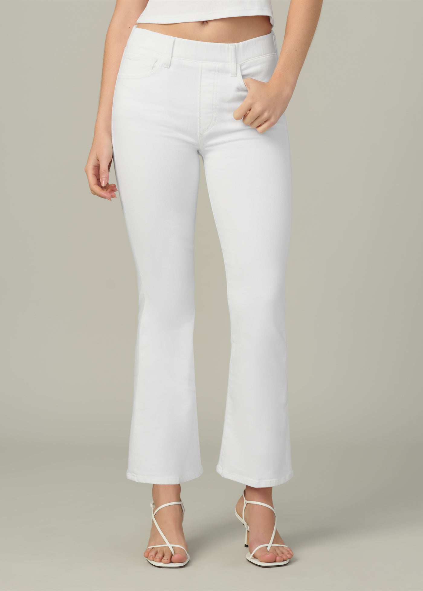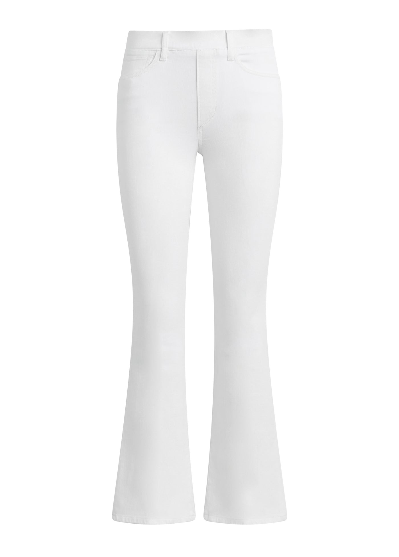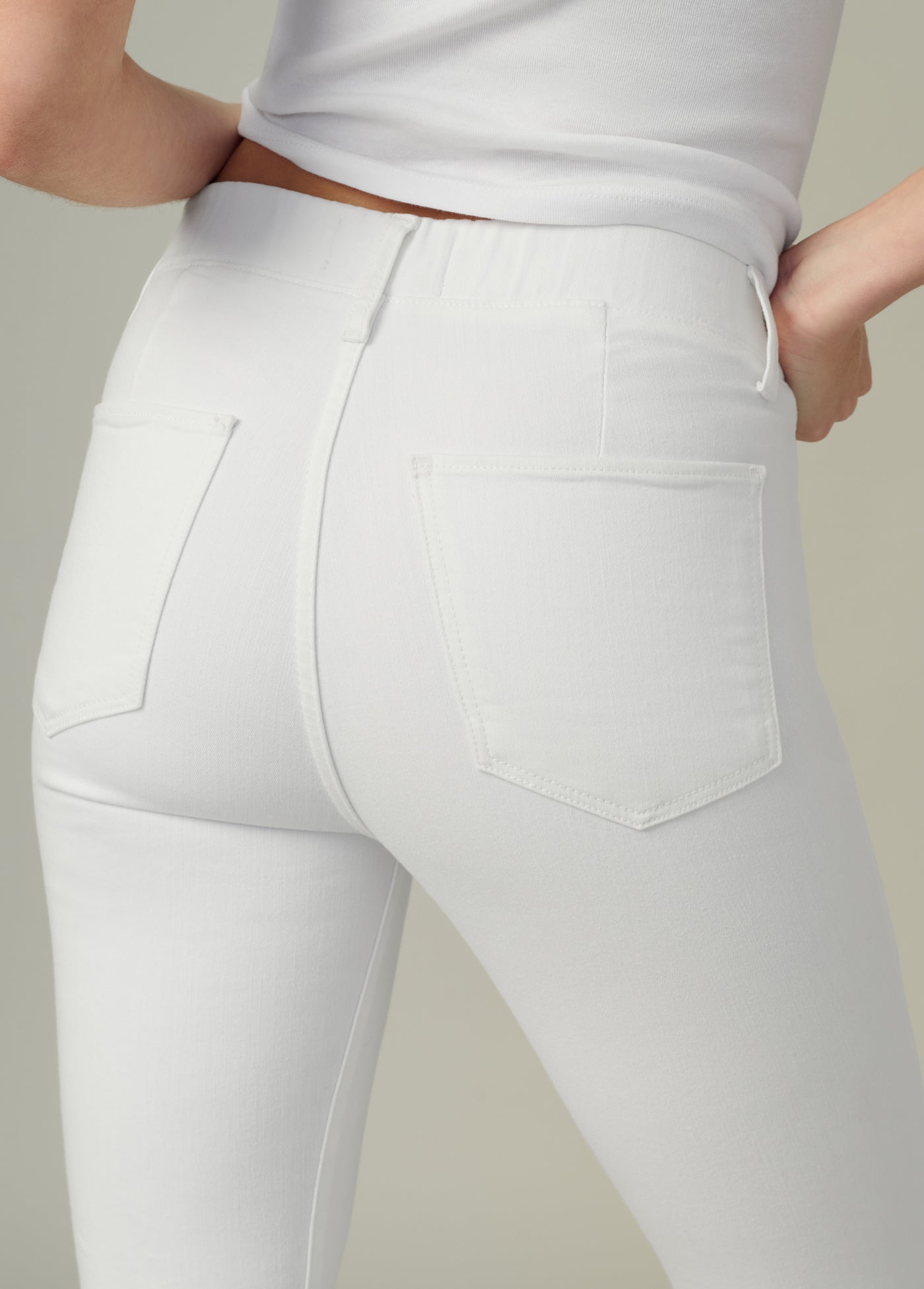 A high rise, pull-on style with functional pockets that is fitted through waist, hip and thigh and breaks at the knee for a bootcut fit that falls to the ankle.