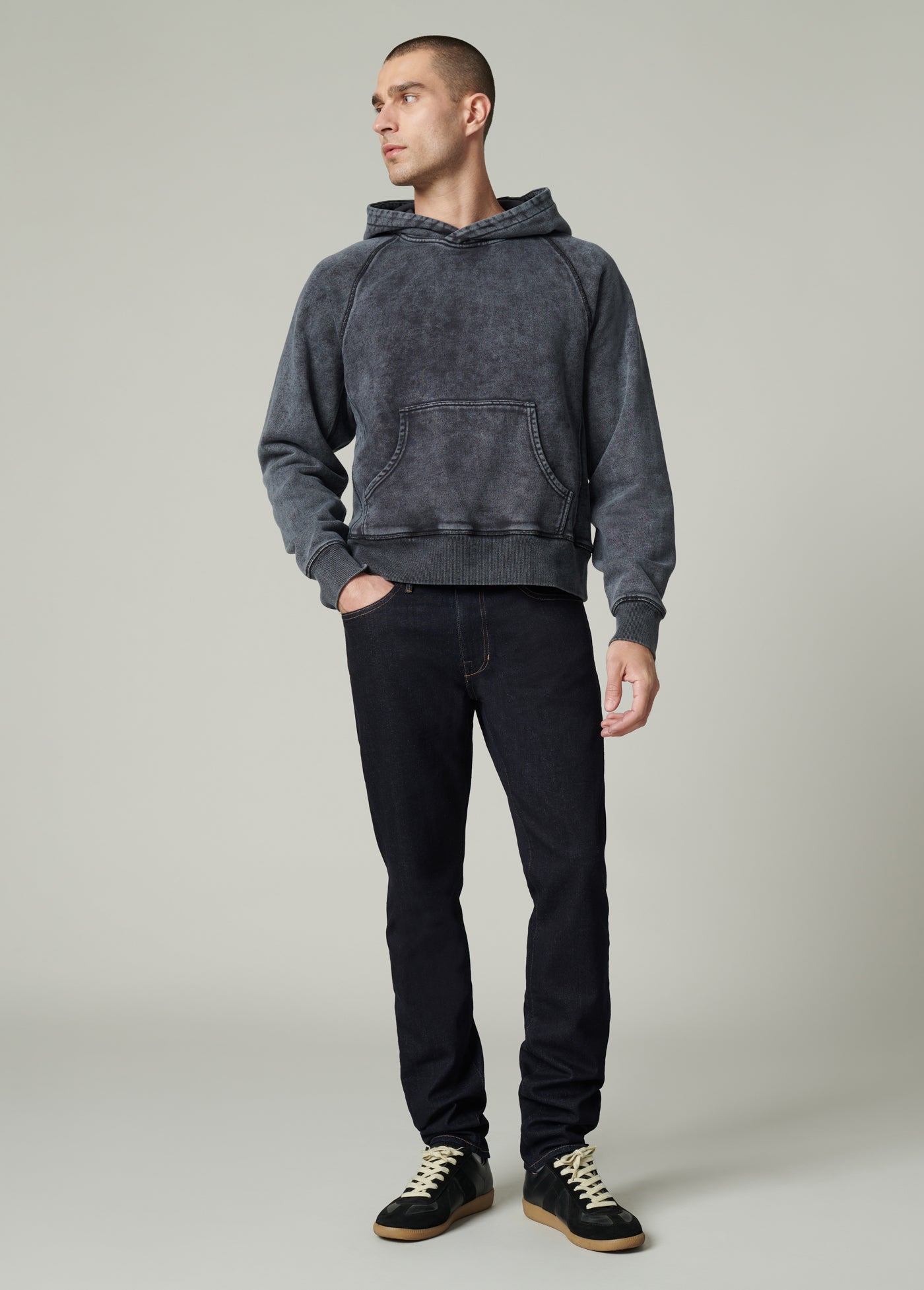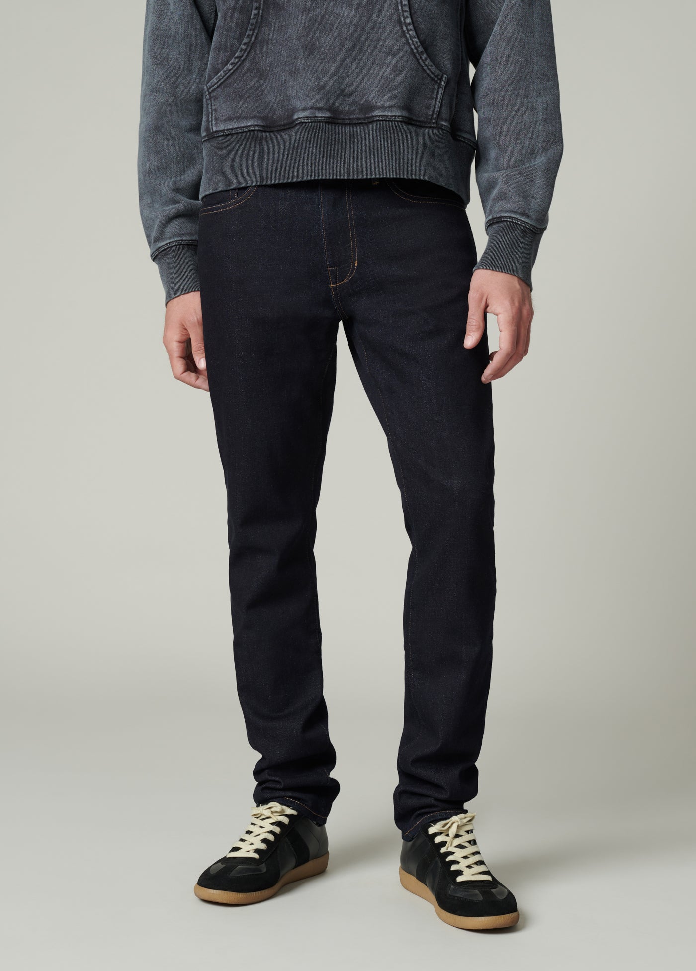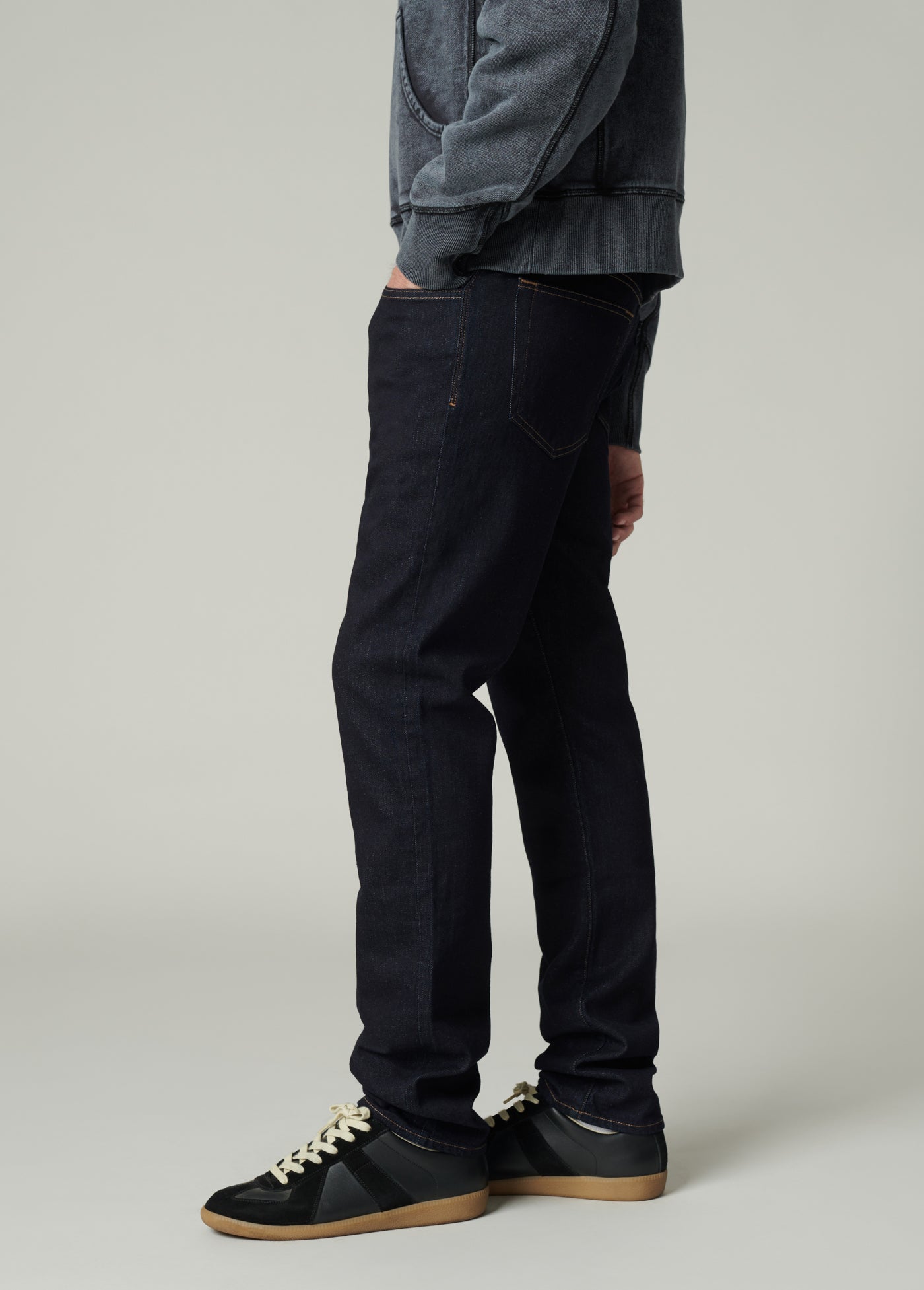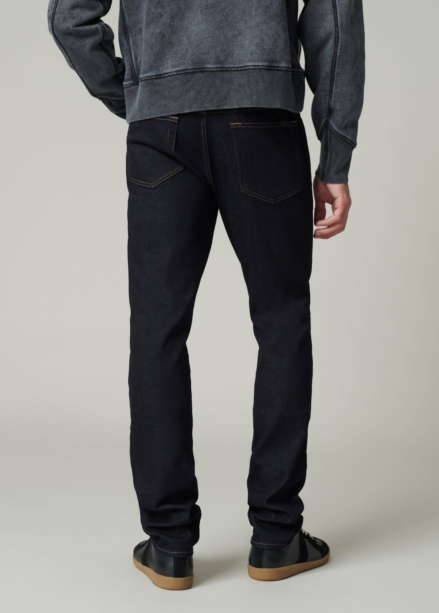 WASH: Peter is a deep saturated rinse wash with contrast topstitch.