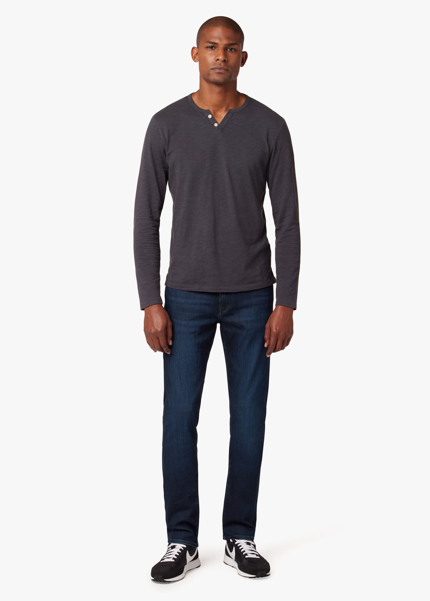 The Asher in Onni is a slim fit jean made from our comfortable Kinetic-Luxe fabric that has a buttery soft feel. Thanks to the subtle abrasion, these dark wash jeans have a classic look with a relaxed feel.