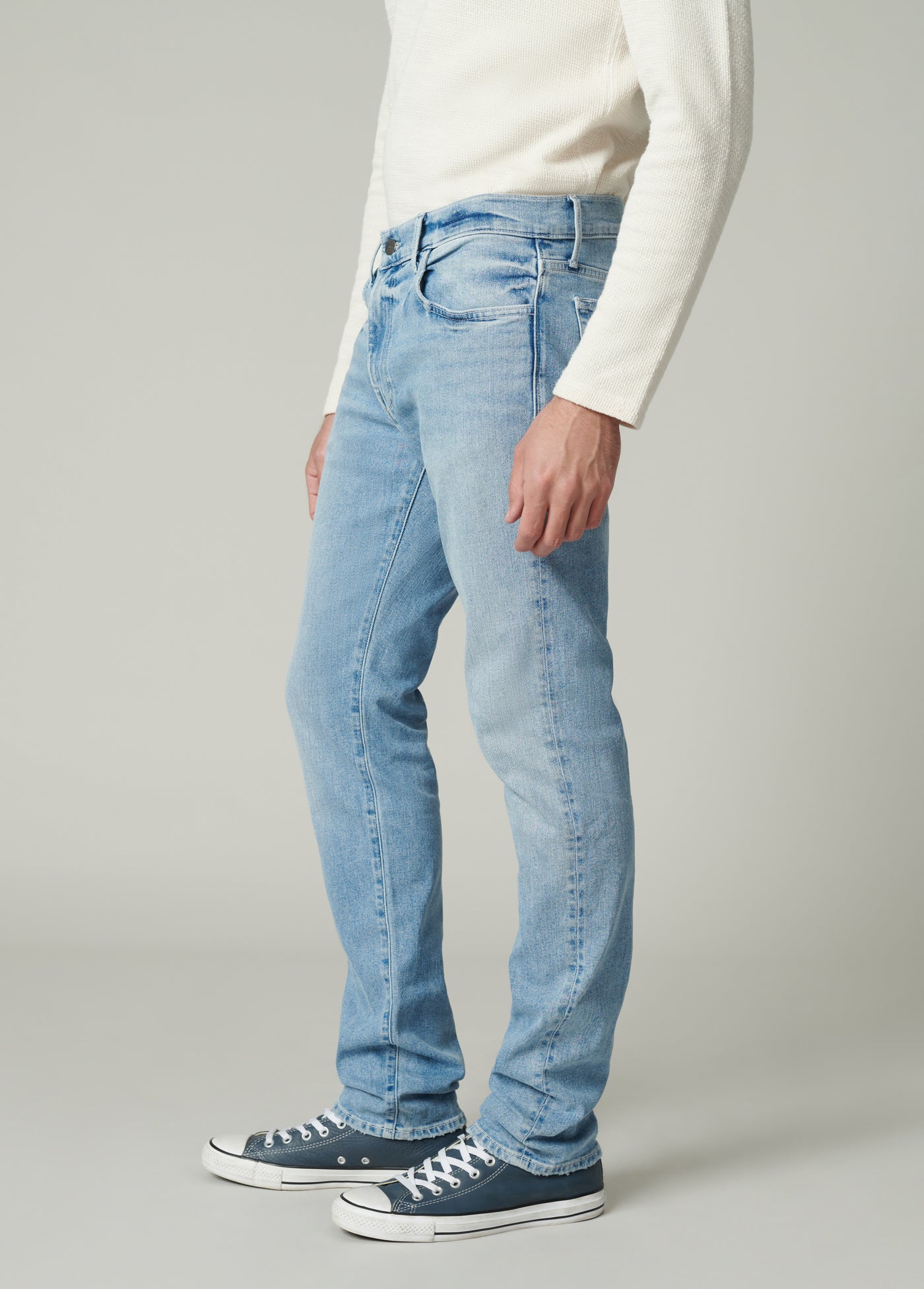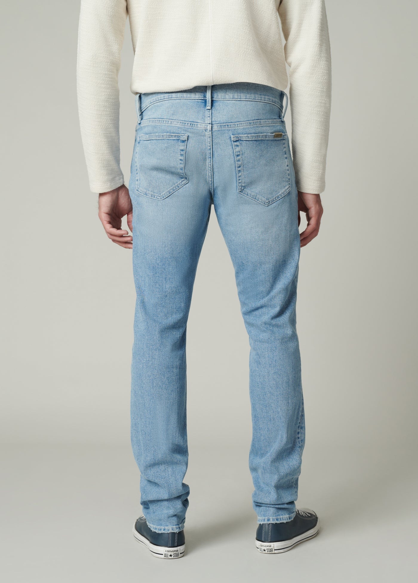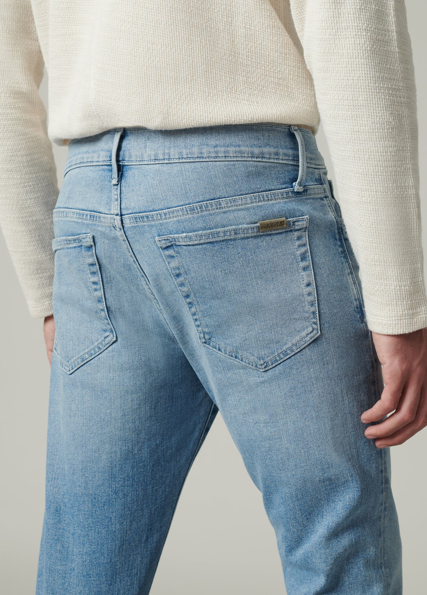 The Asher in Jaxx is a slim fit jean in a light-indigo wash. Cut from Kinetic Stretch denim designed for comfort, the Jaxx wash is finished with subtle abrasion highlighting the high-low denim details.