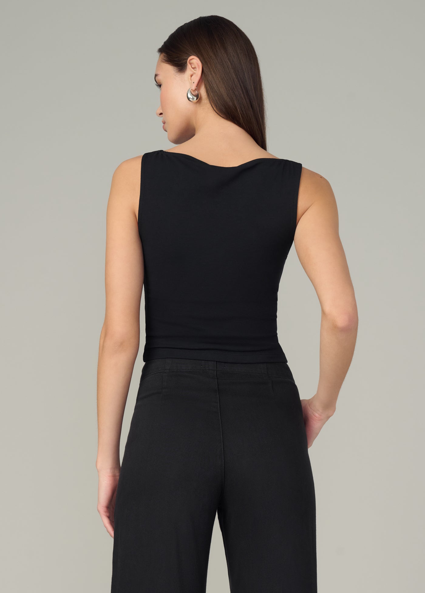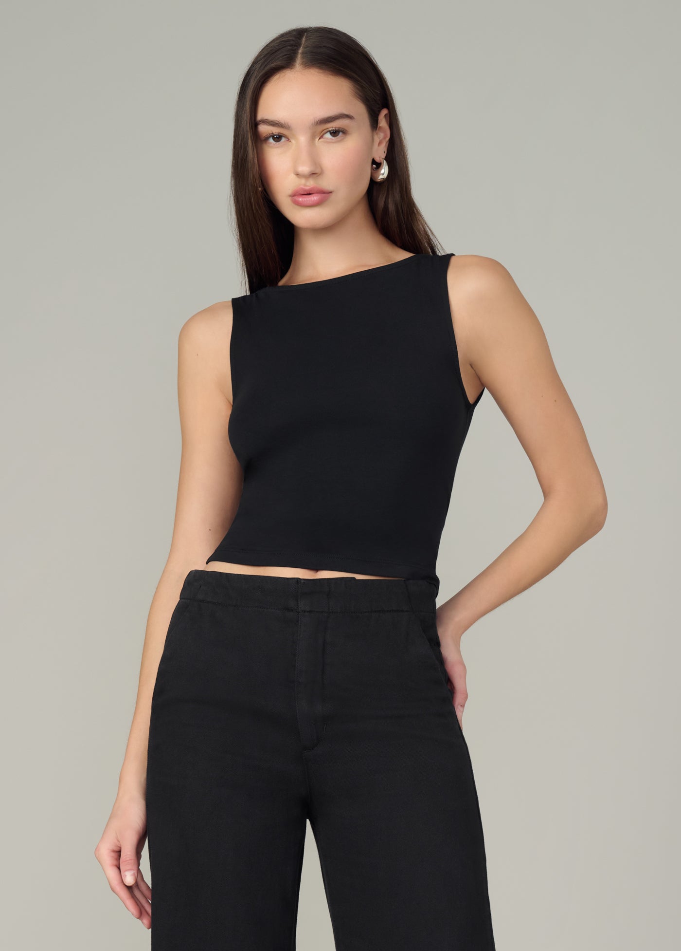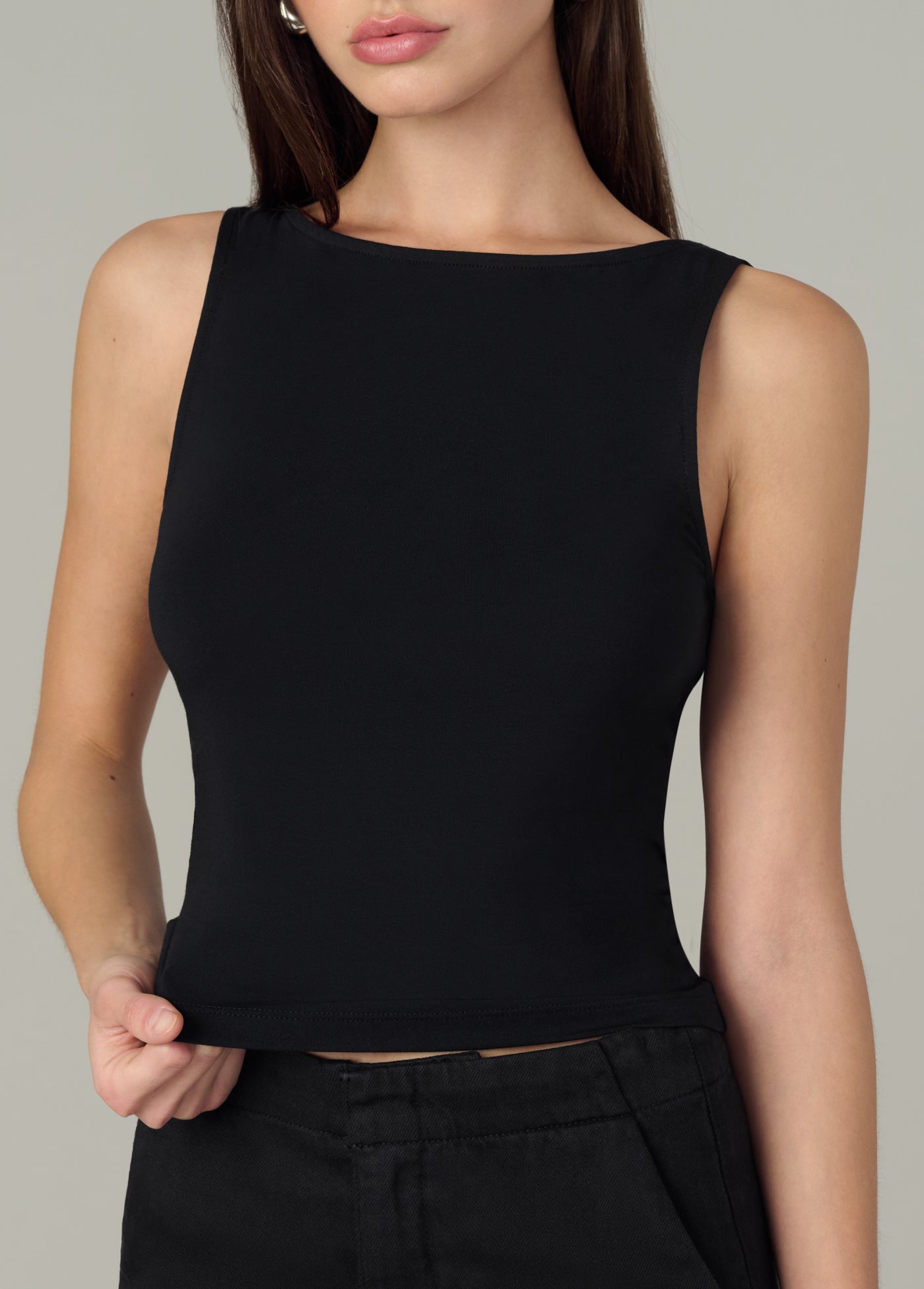 A chic and flattering boatneck, sleeveless tank top.