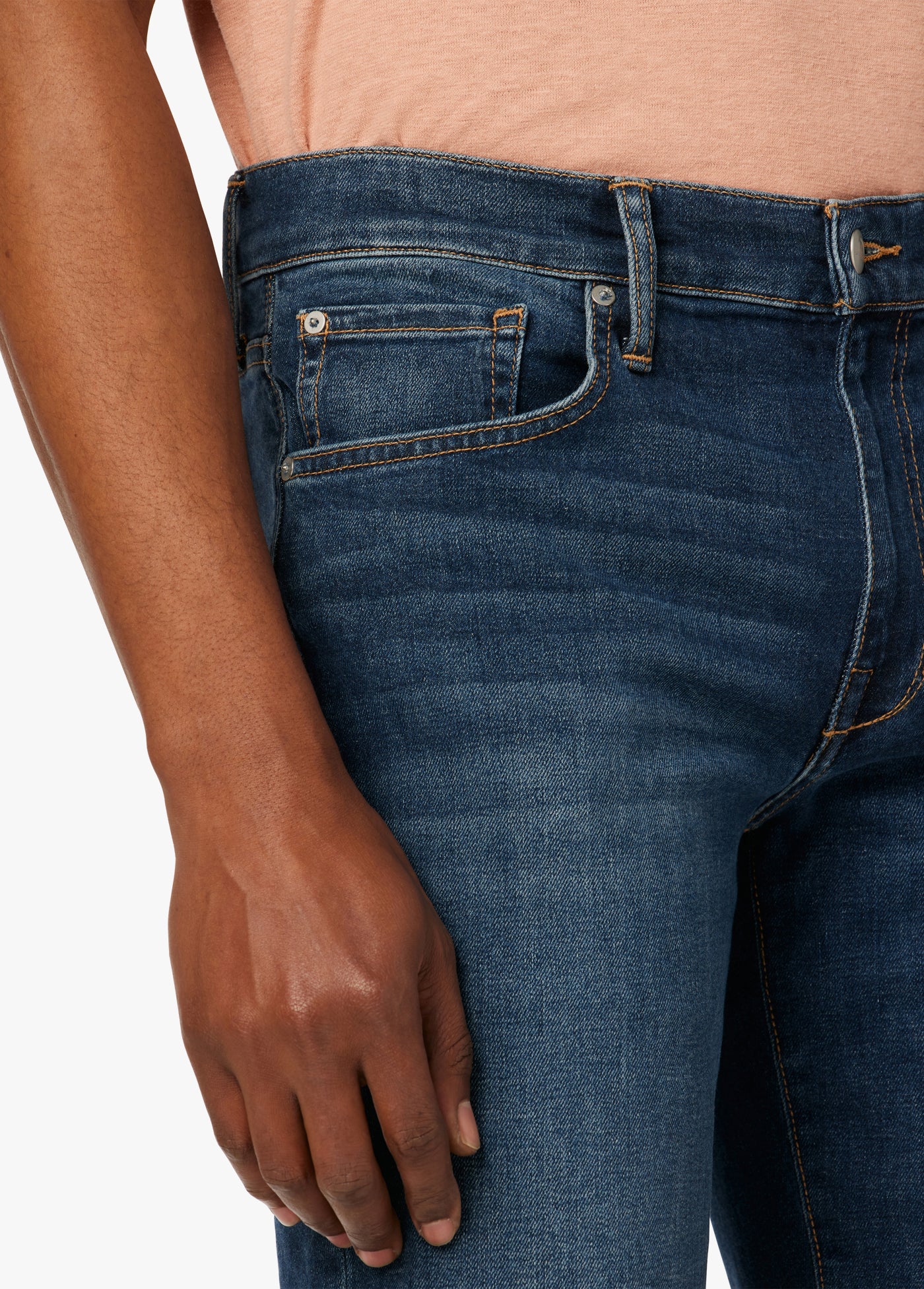 Our straight and narrow Brixton jean in Mahrez features 11 oz. Kinetic stretch denim featuring a medium indigo stone wash with subtle whiskering and faded details. Bonus: it's made using recycled fibers and eco-friendly technology that cuts down on pollutants and water usage.