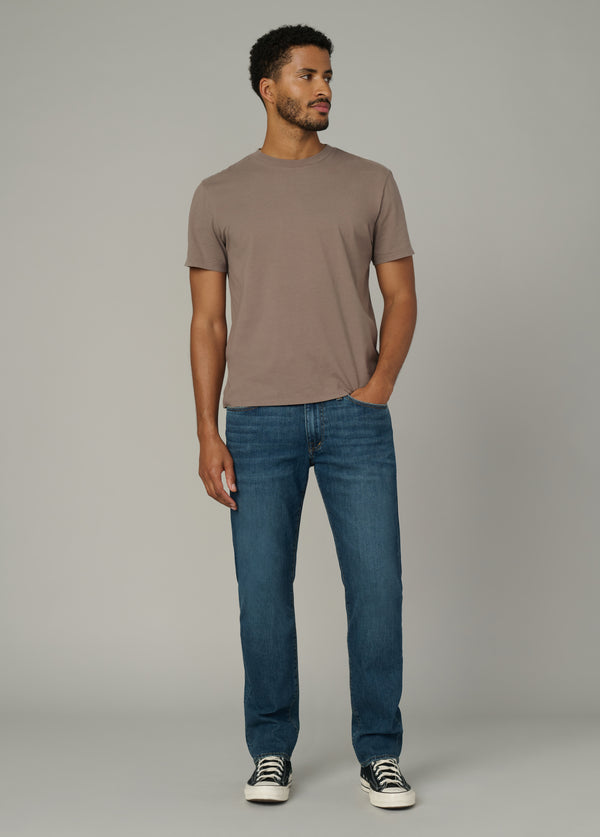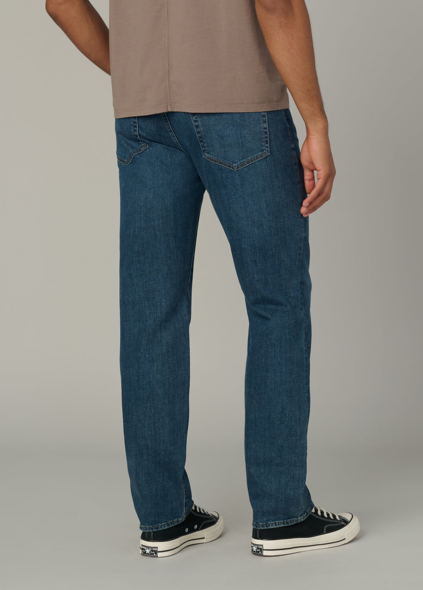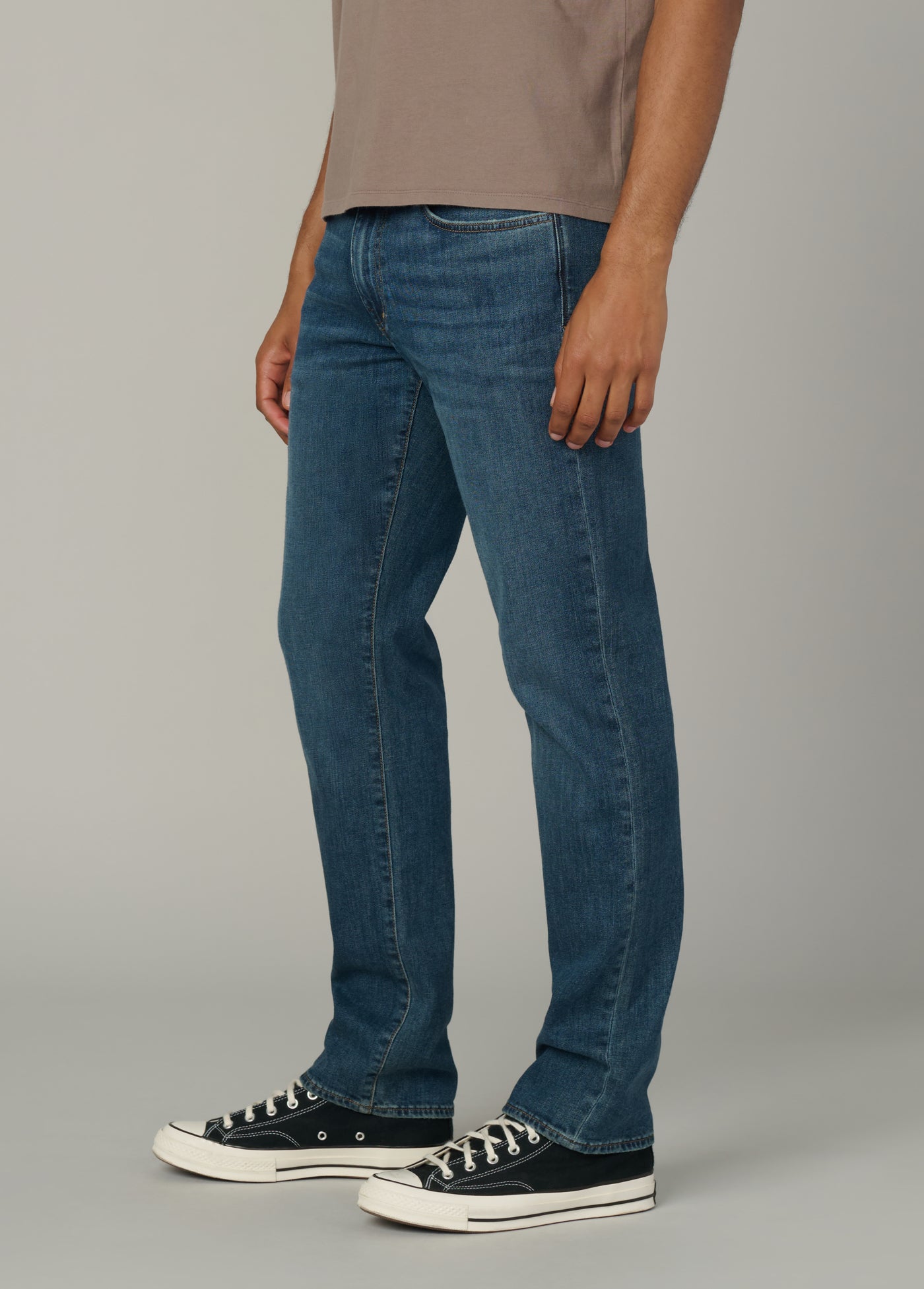 A slim fit at the waist with a straight leg opening.