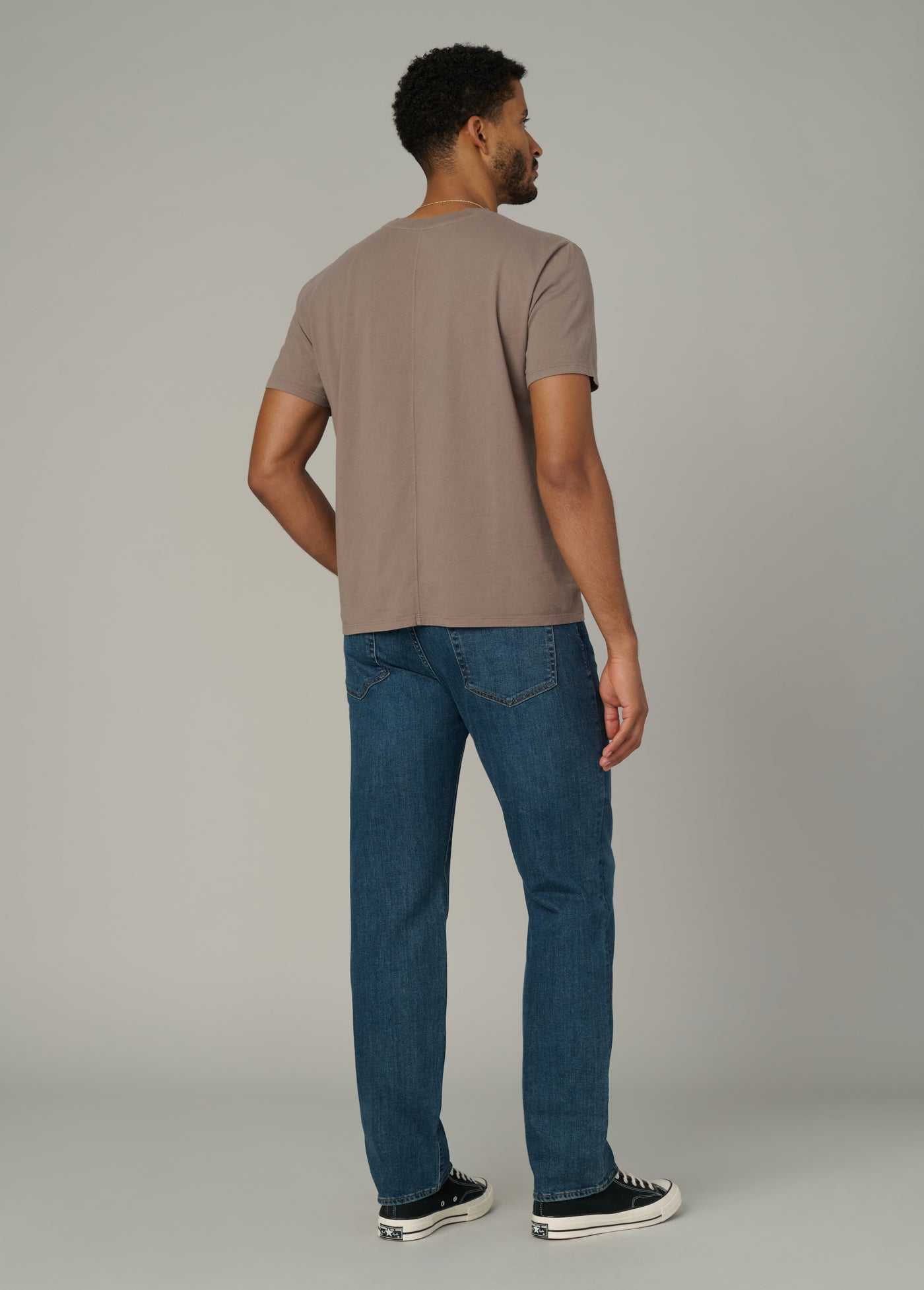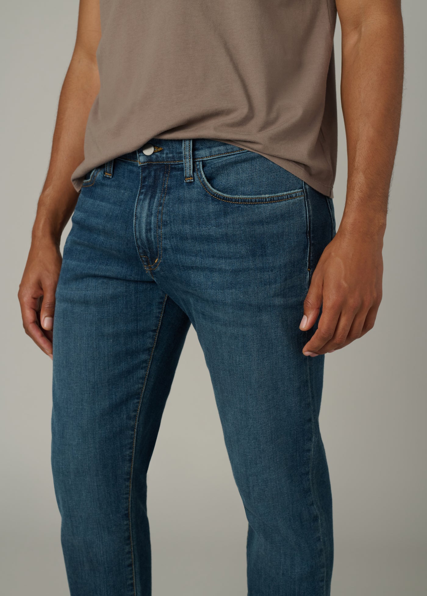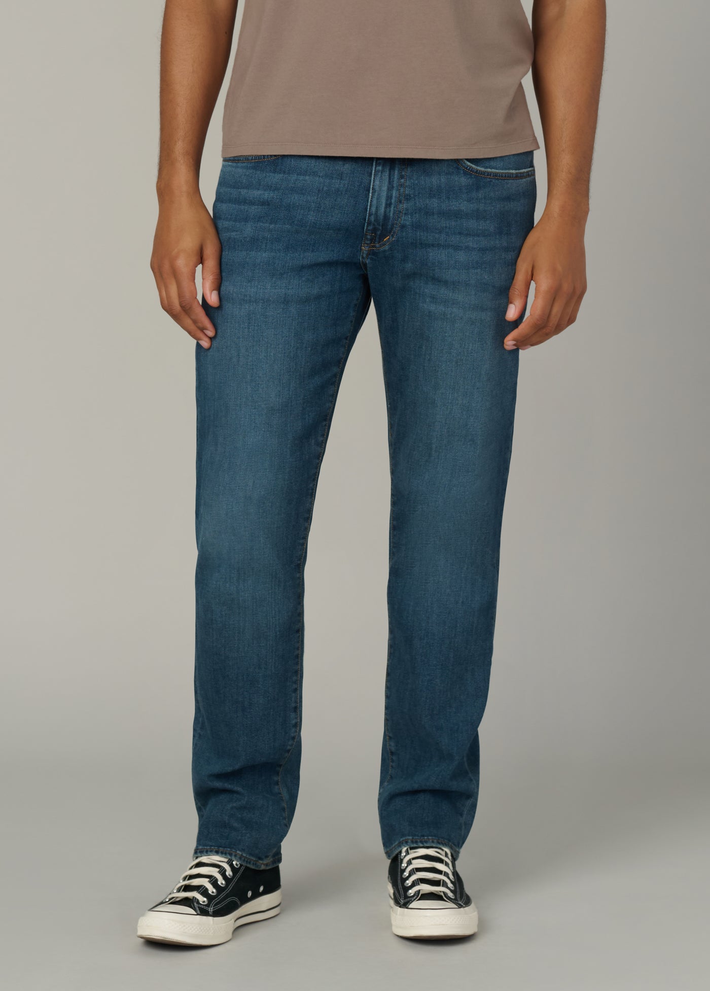 A slim fit at the waist with a straight leg opening.