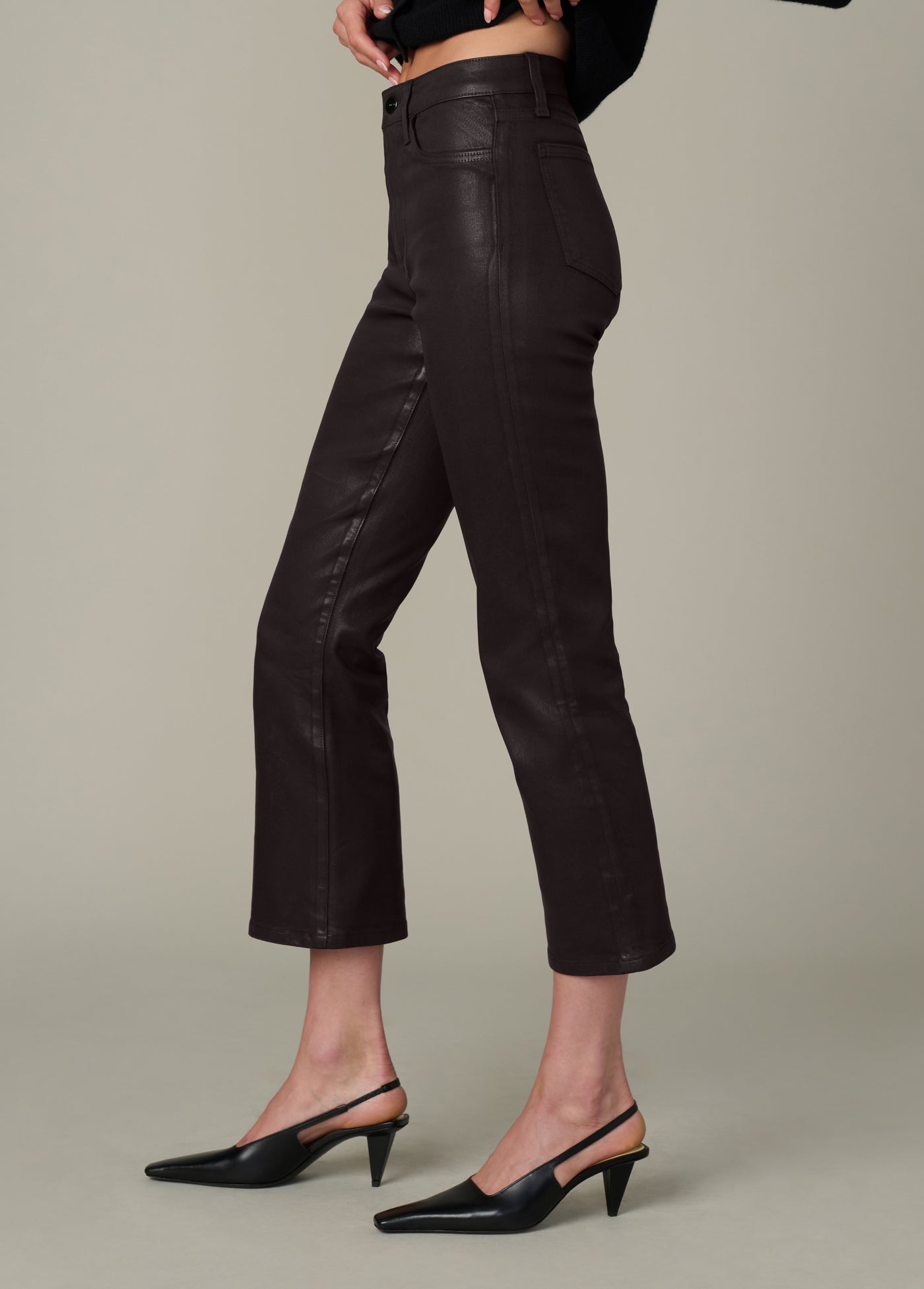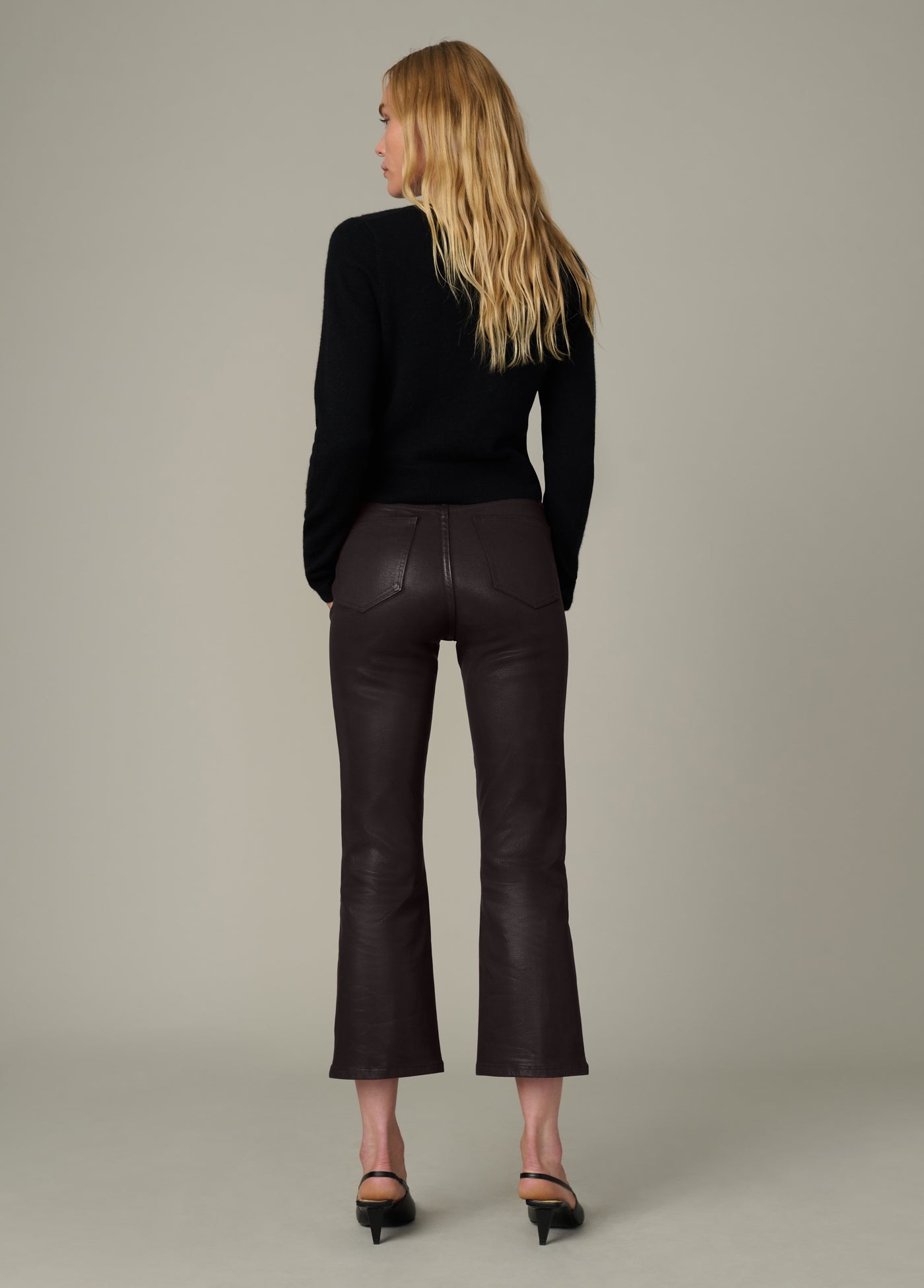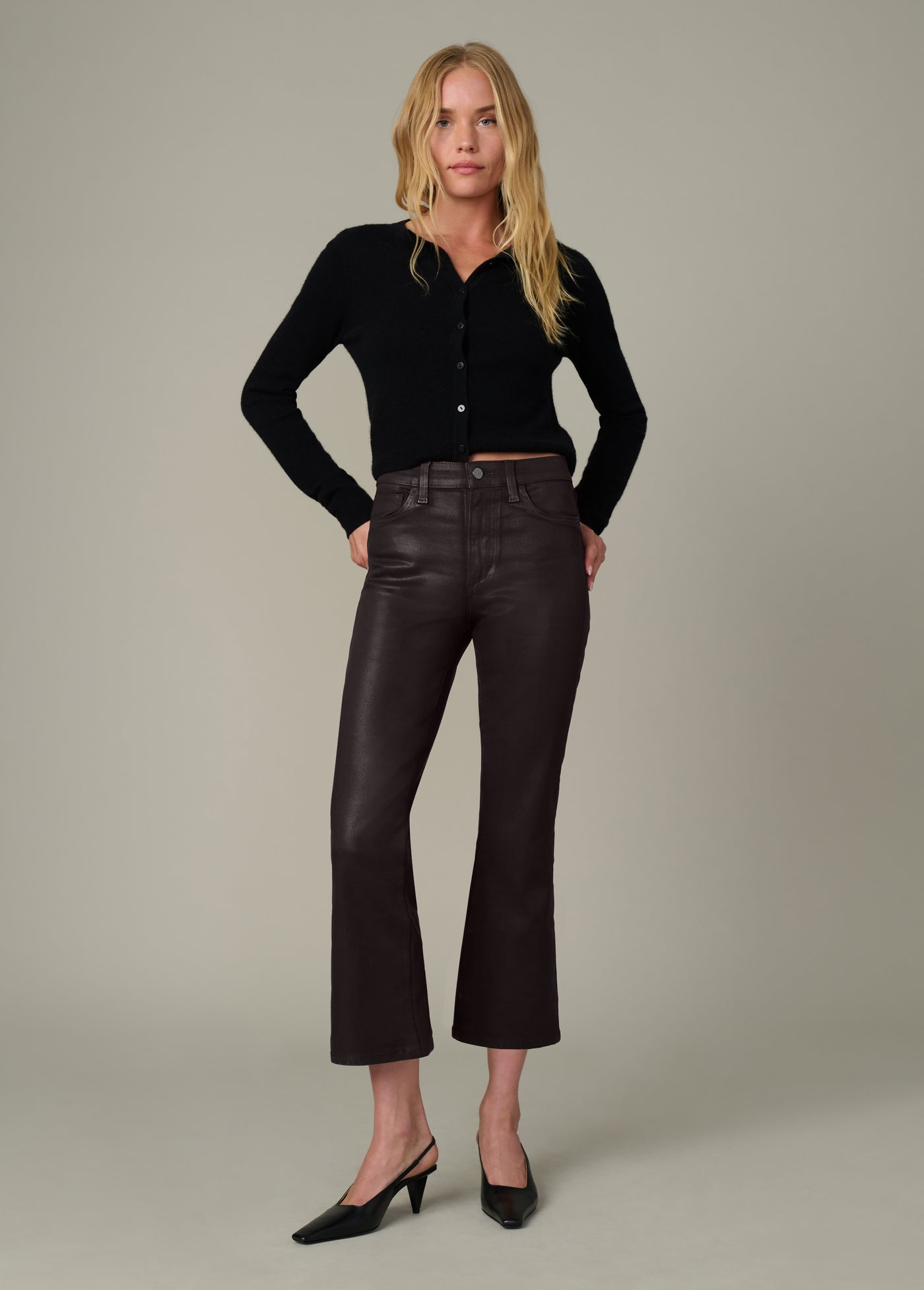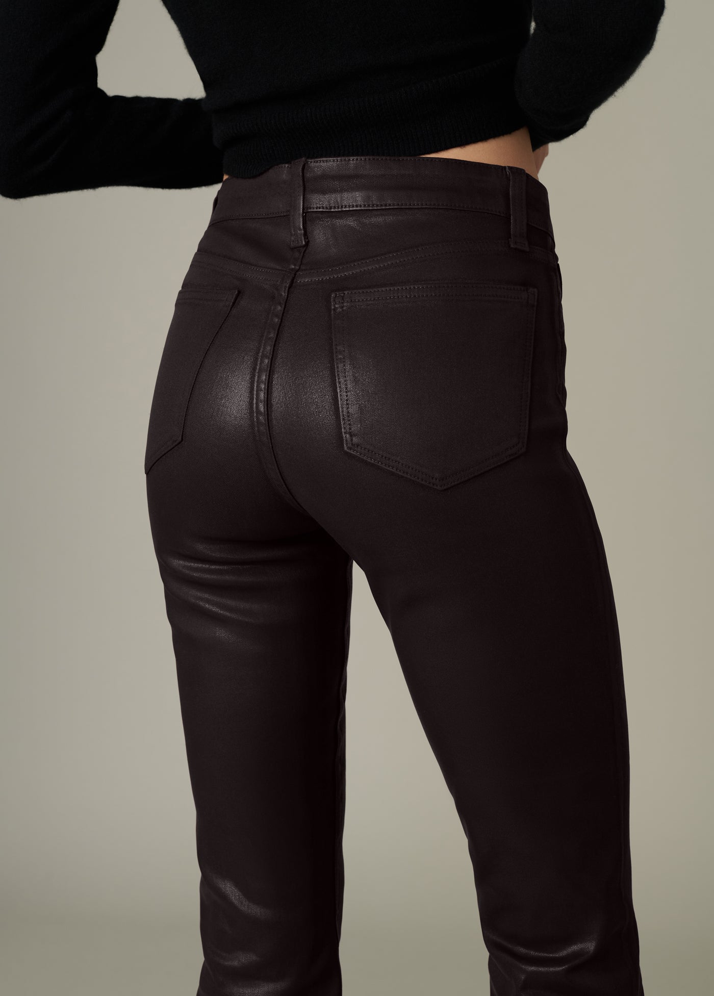 A high rise and slim fit through the waist, hip and thigh with a modest bootcut that hits above the ankle.