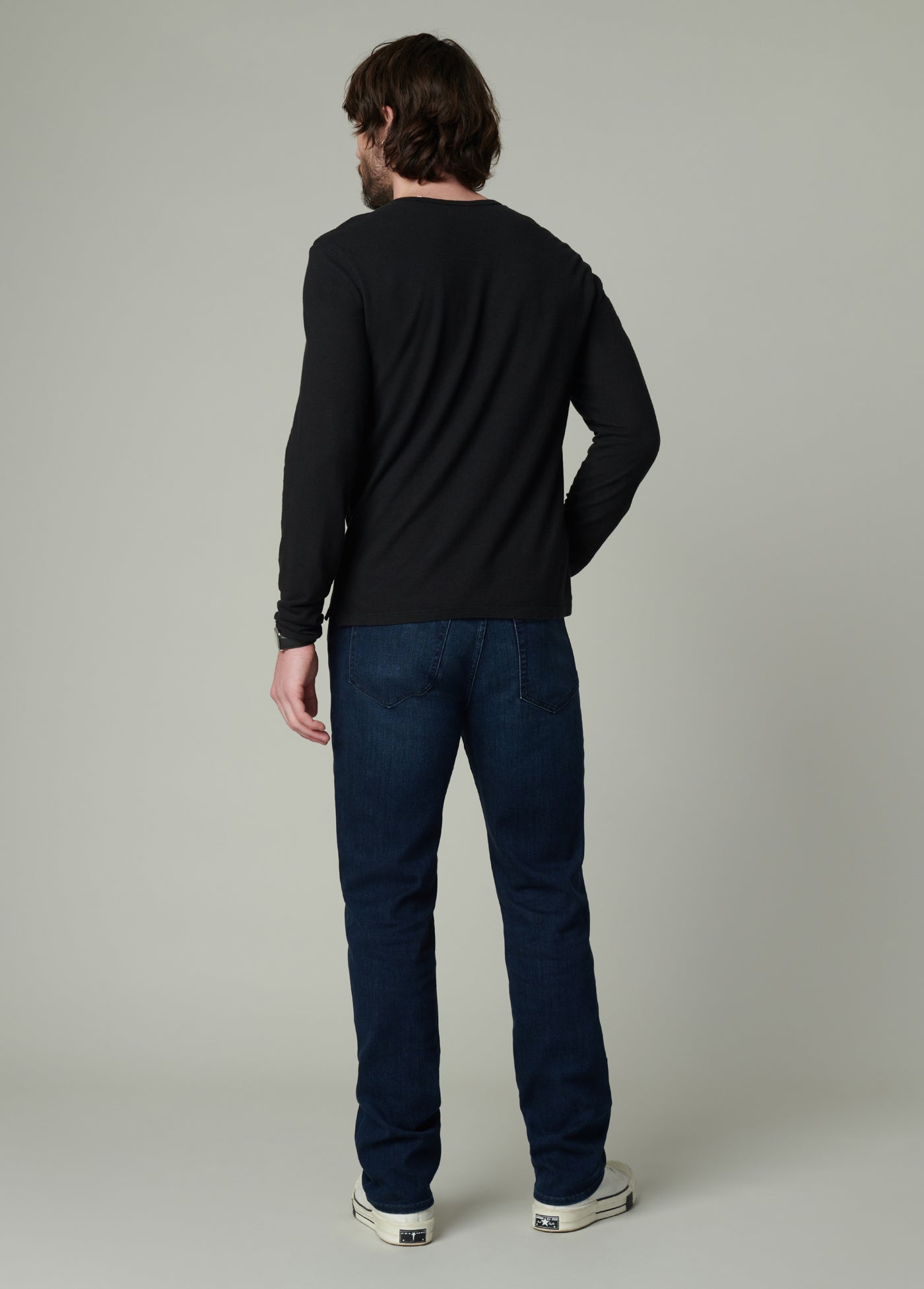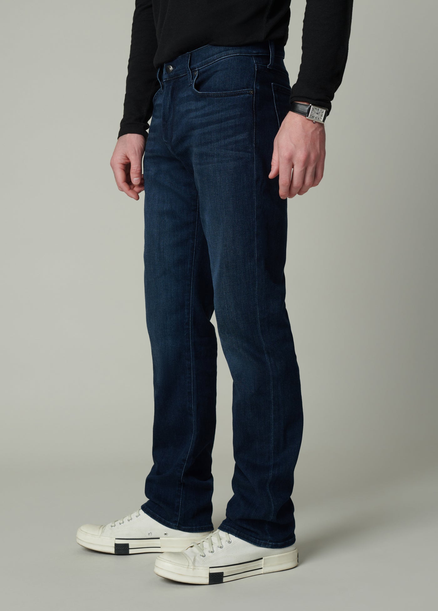 A straight-leg, 34” inseam jean with an easy fit from hip to ankle, our Classic fit features timeless five-pocket construction and versatile wear-with-anything styling.