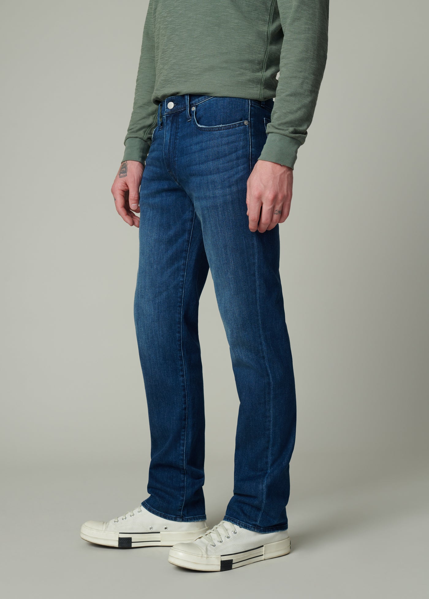 Easy fit from hips to ankle with a mid rise and straight leg opening.