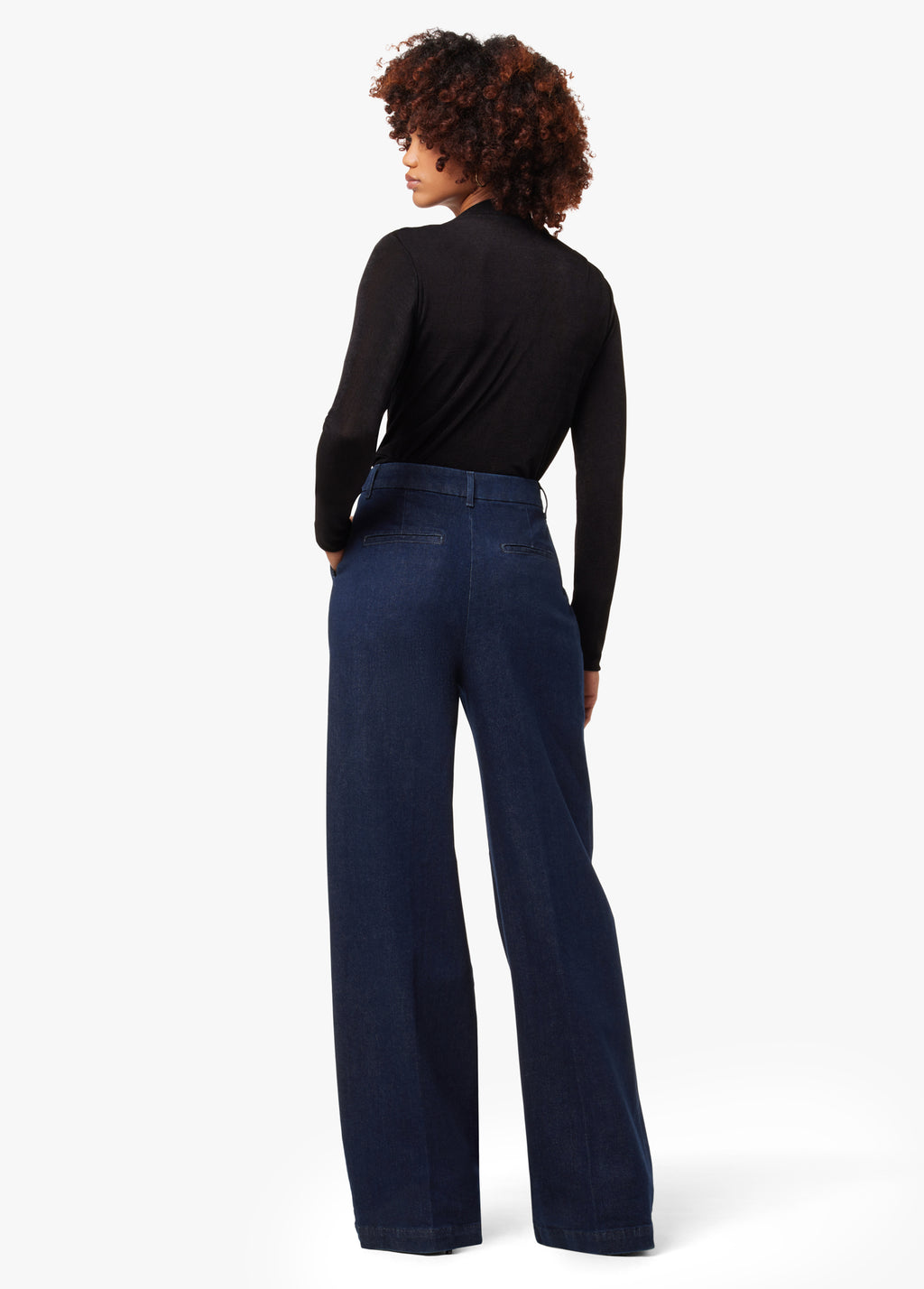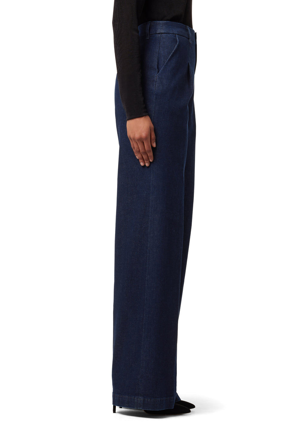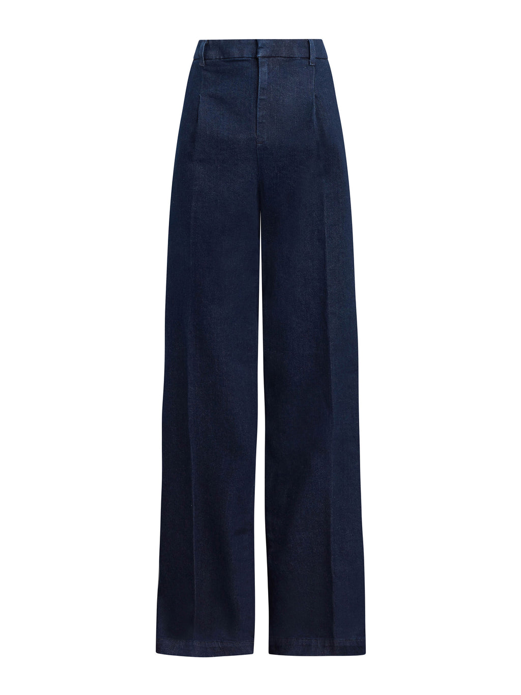Cast in a rich ‘Rinse' wash, the Denim Flaunt Trouser sports a wide leg and tailored waist with a front center crease. This flattering, silhouette makes for the perfect work-play pant.
