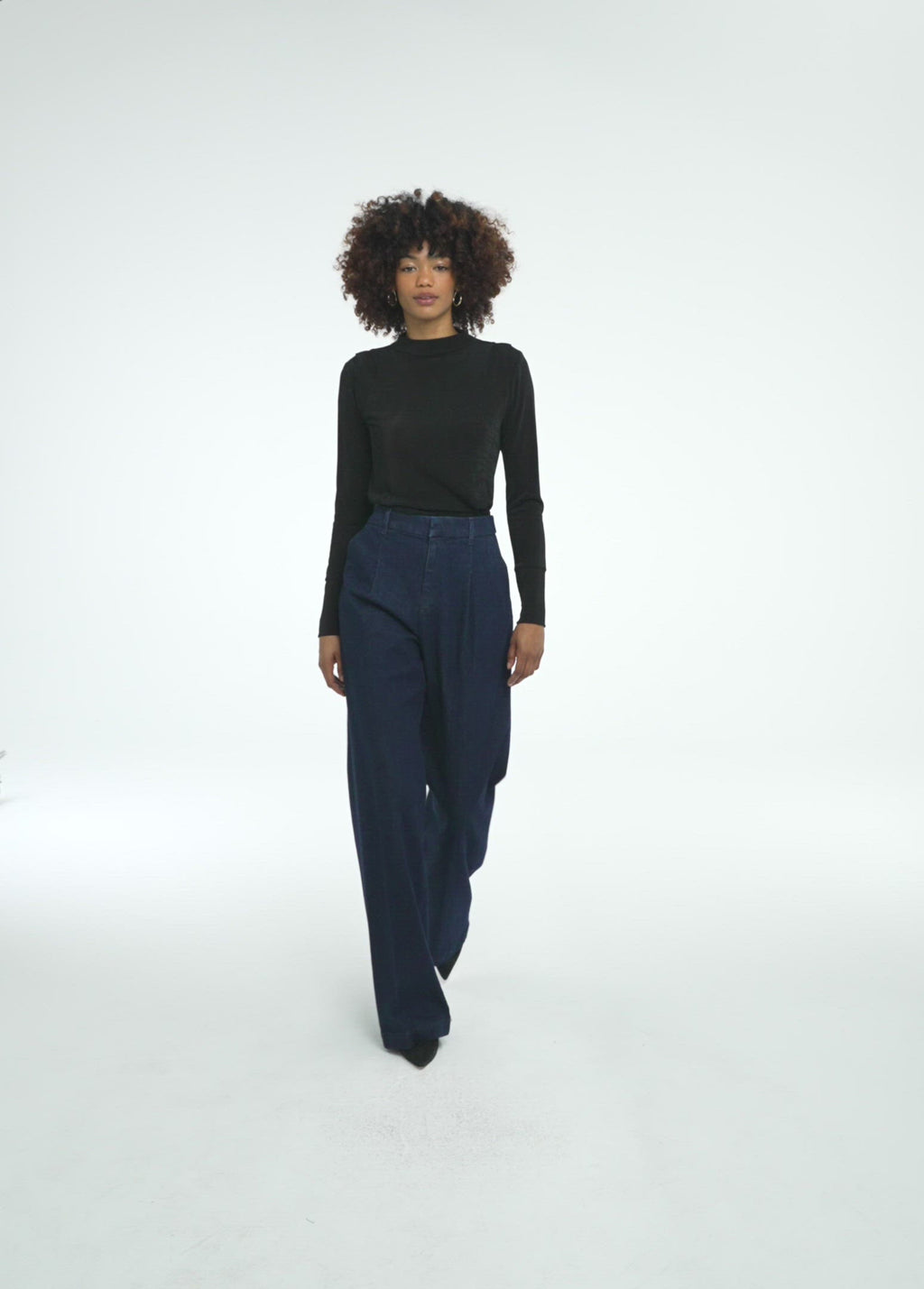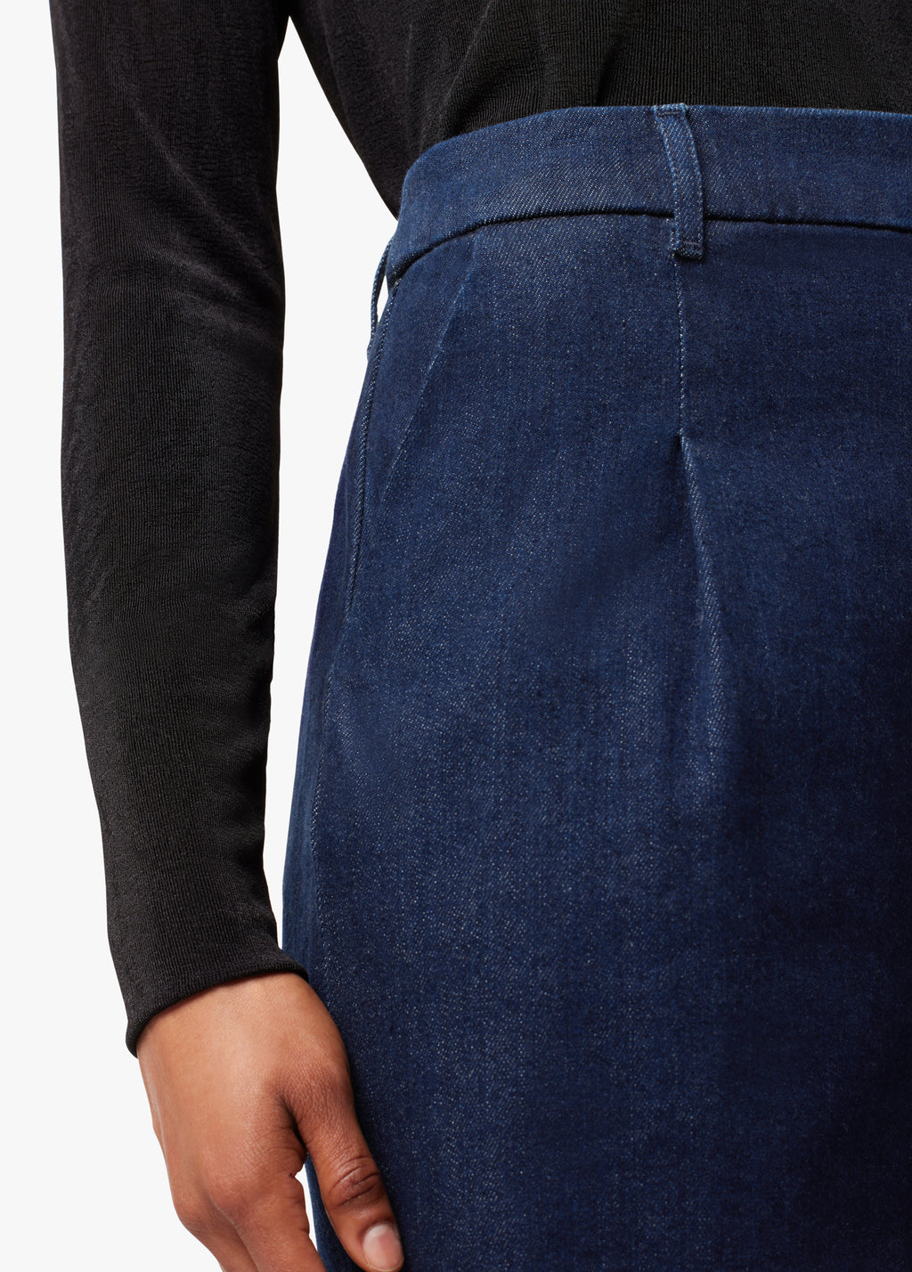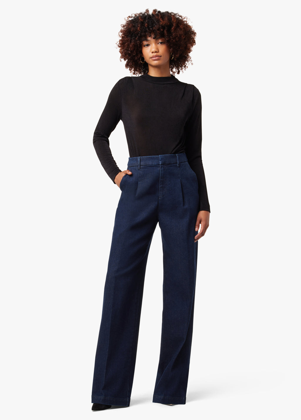 Cast in a rich ‘Rinse' wash, the Denim Flaunt Trouser sports a wide leg and tailored waist with a front center crease. This flattering, silhouette makes for the perfect work-play pant.