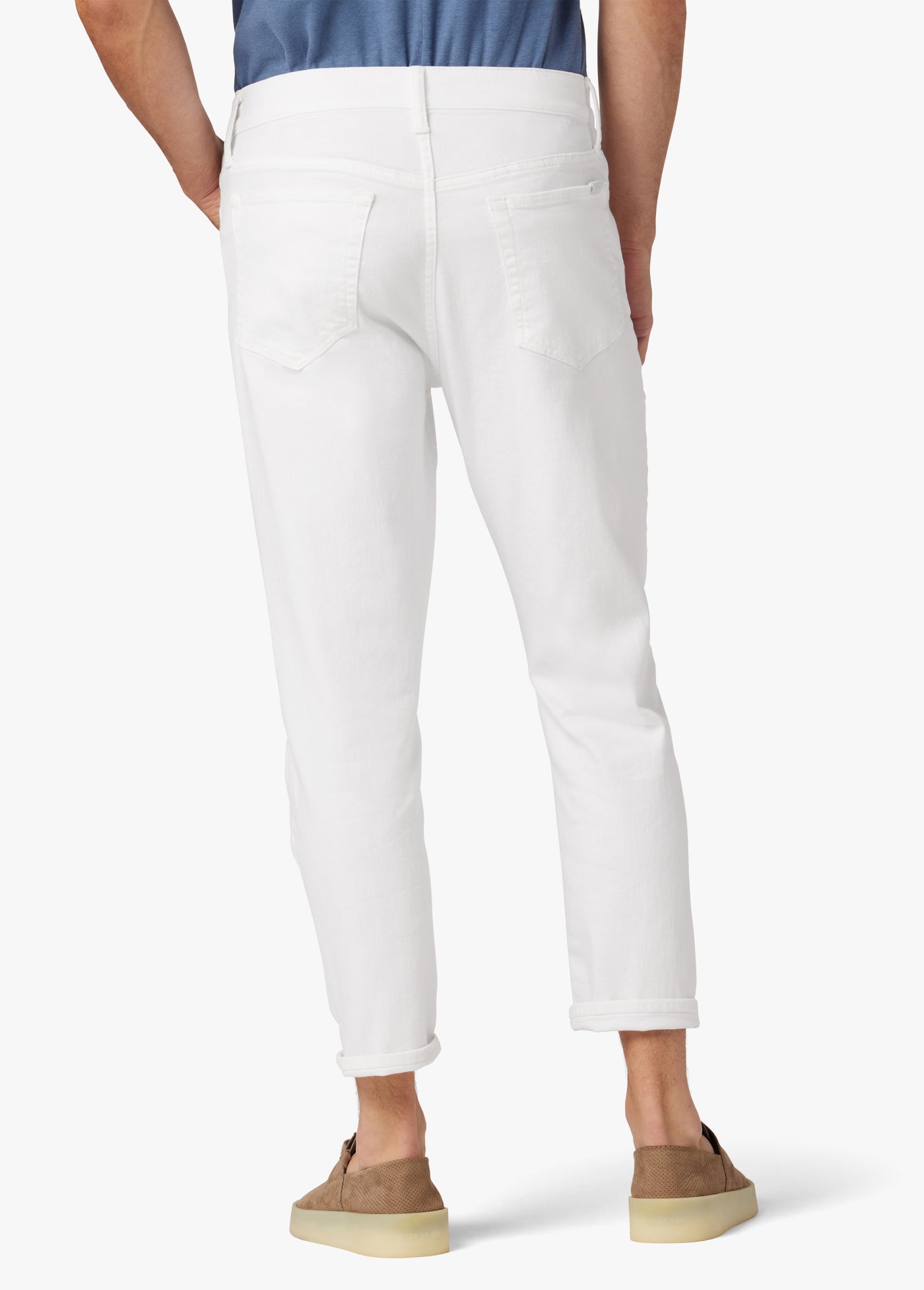 With a slightly tapered, cropped length and timeless five-pocket construction, the Diego is cut from Kinetic stretch denim so these jeans keep their shape and comfort after each wear. The 'Clean White' wash is a Joe's signature--it's been dyed to an optic white and finished with top whiskering.