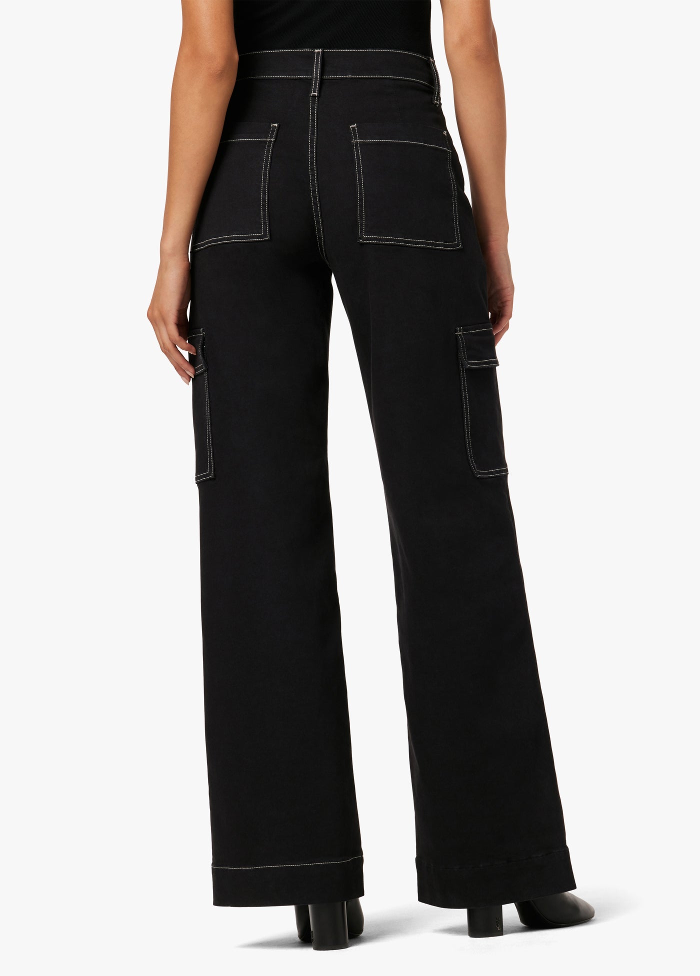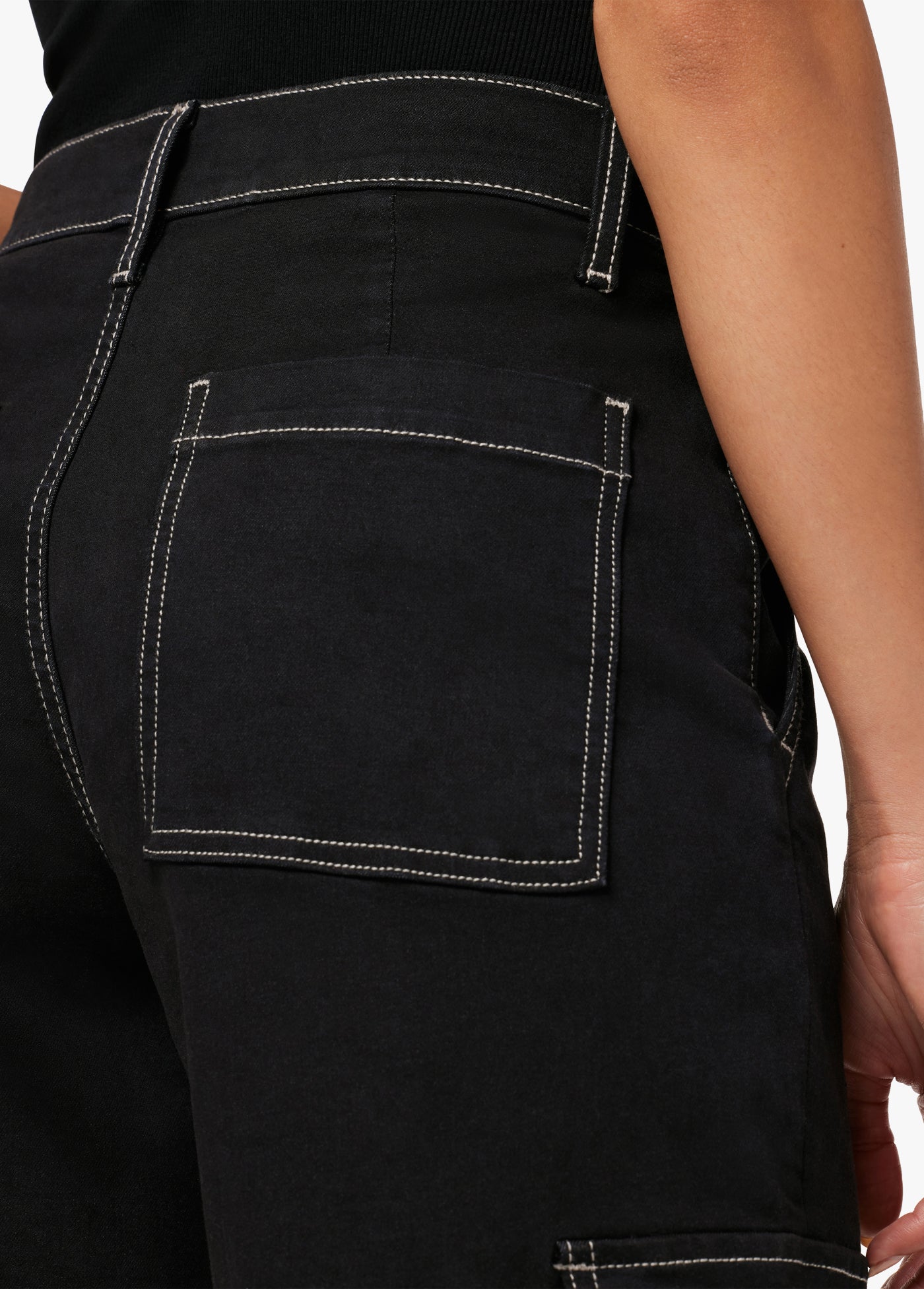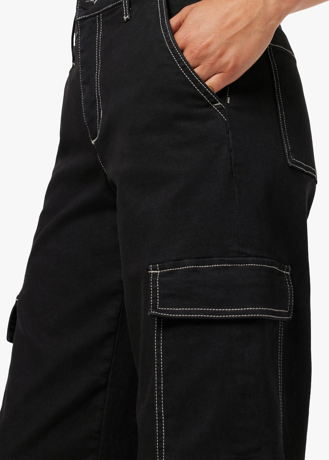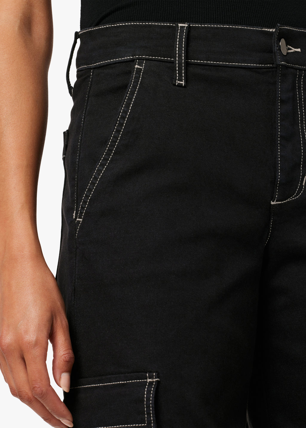 The Farah debuts with a comfortable mid rise, wide leg and relaxed fit. It's a versatile black pant to dress up or dress down, especially with the extra detailing--reverse top stitch, convenient slash pockets and of-the-moment cargo styling.