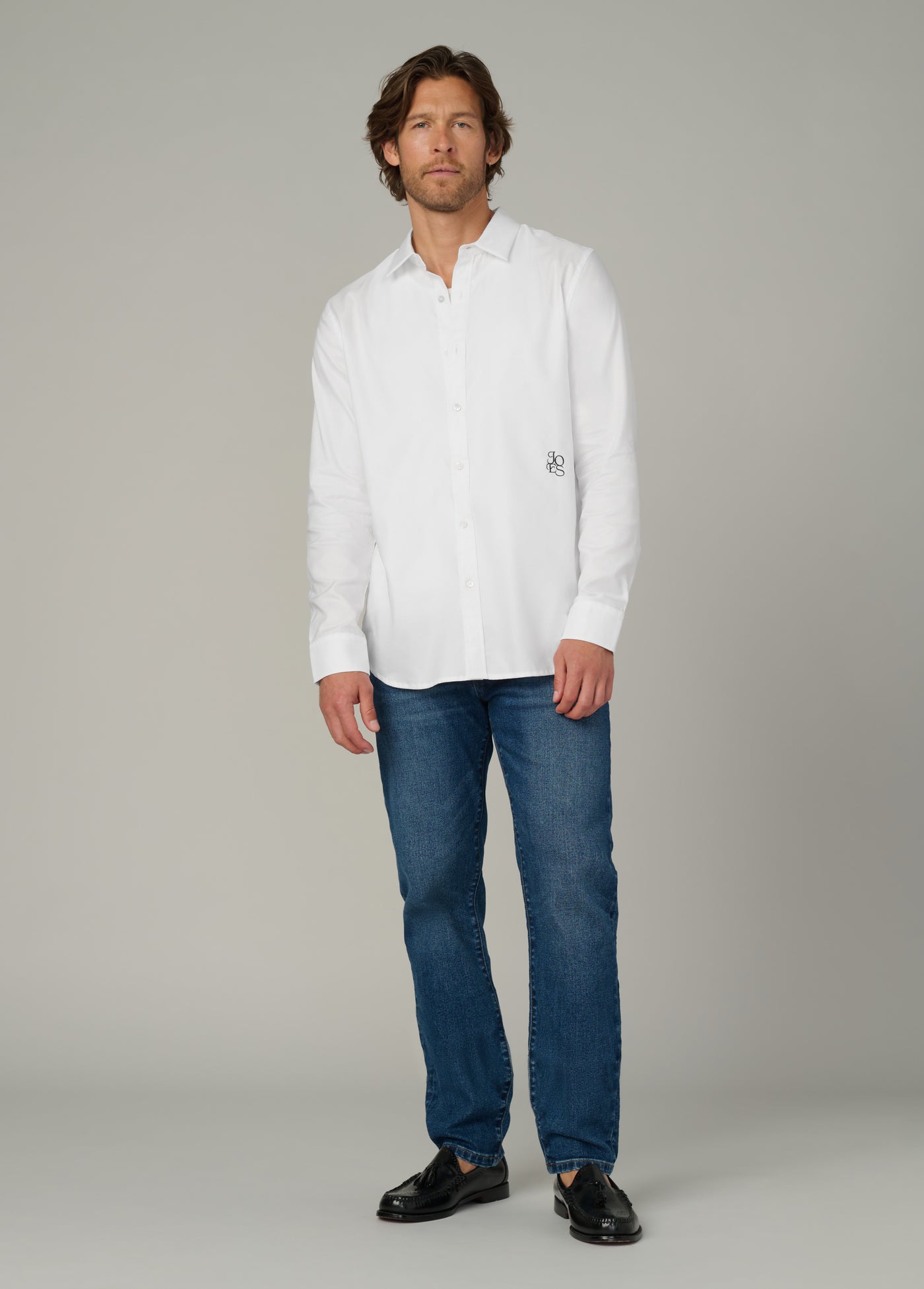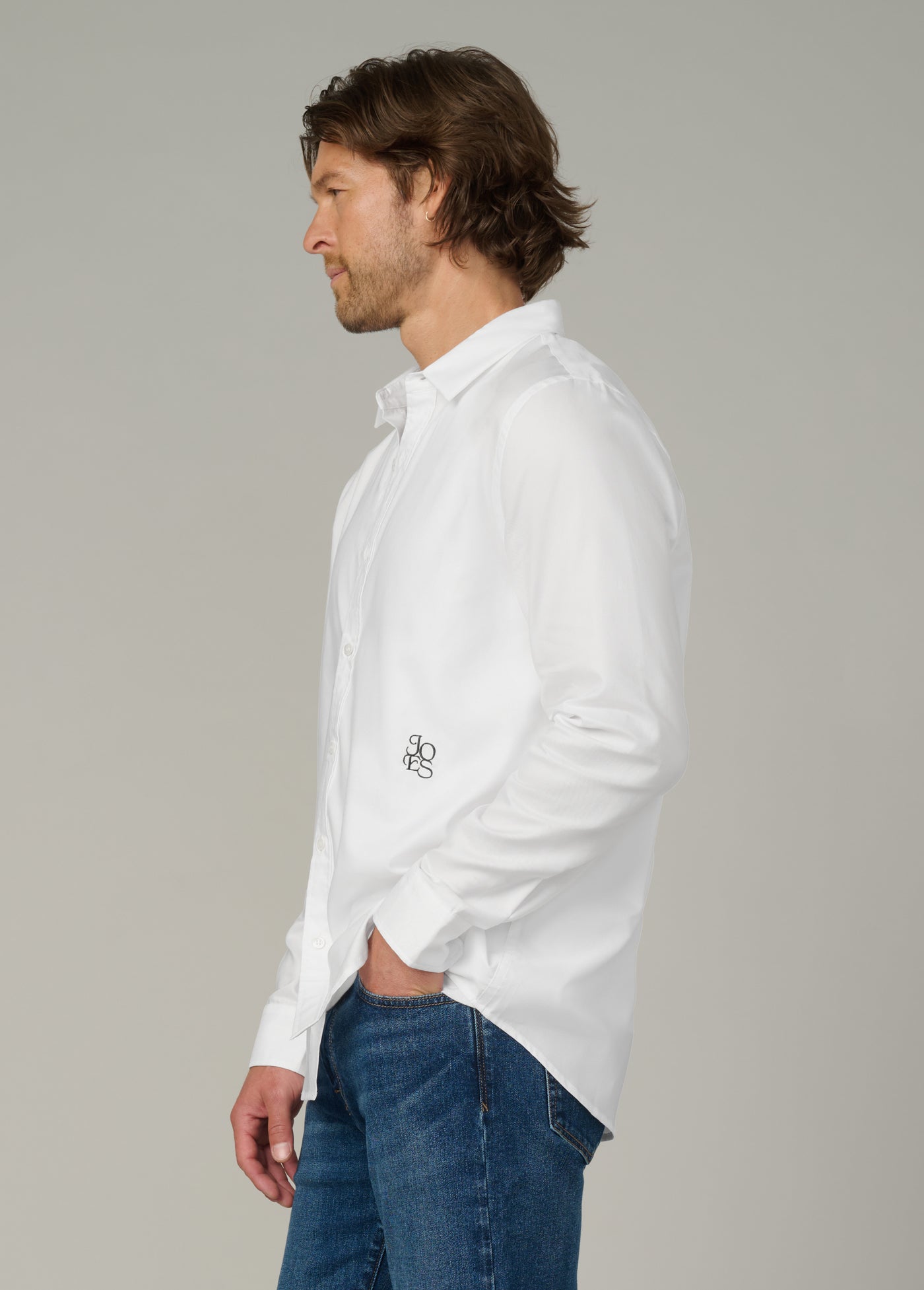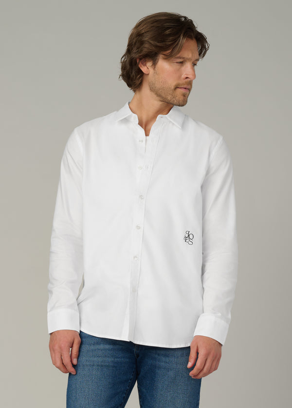 Our Grant Monogram Shirt is a timeless style that meets subtle personalization in this men's classic button-down shirt, featuring a refined monogram detail. Designed for versatility, it transitions seamlessly from work to evening outings. Crafted from crisp, breathable fabric and tailored for a clean silhouette, it delivers a polished look whether tucked in or worn more casually.