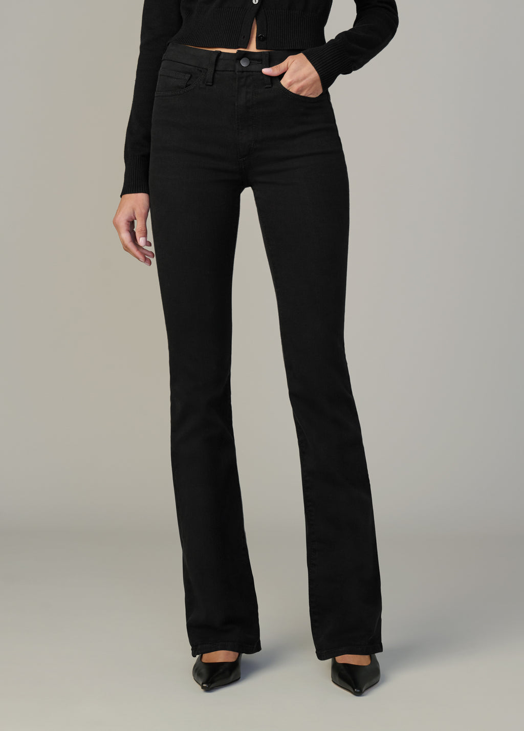 A high rise and slim fit through the waist, hip and thigh with a full-length bootcut, designed for curvy silhouettes, and a higher back rise and extra room in the seat.