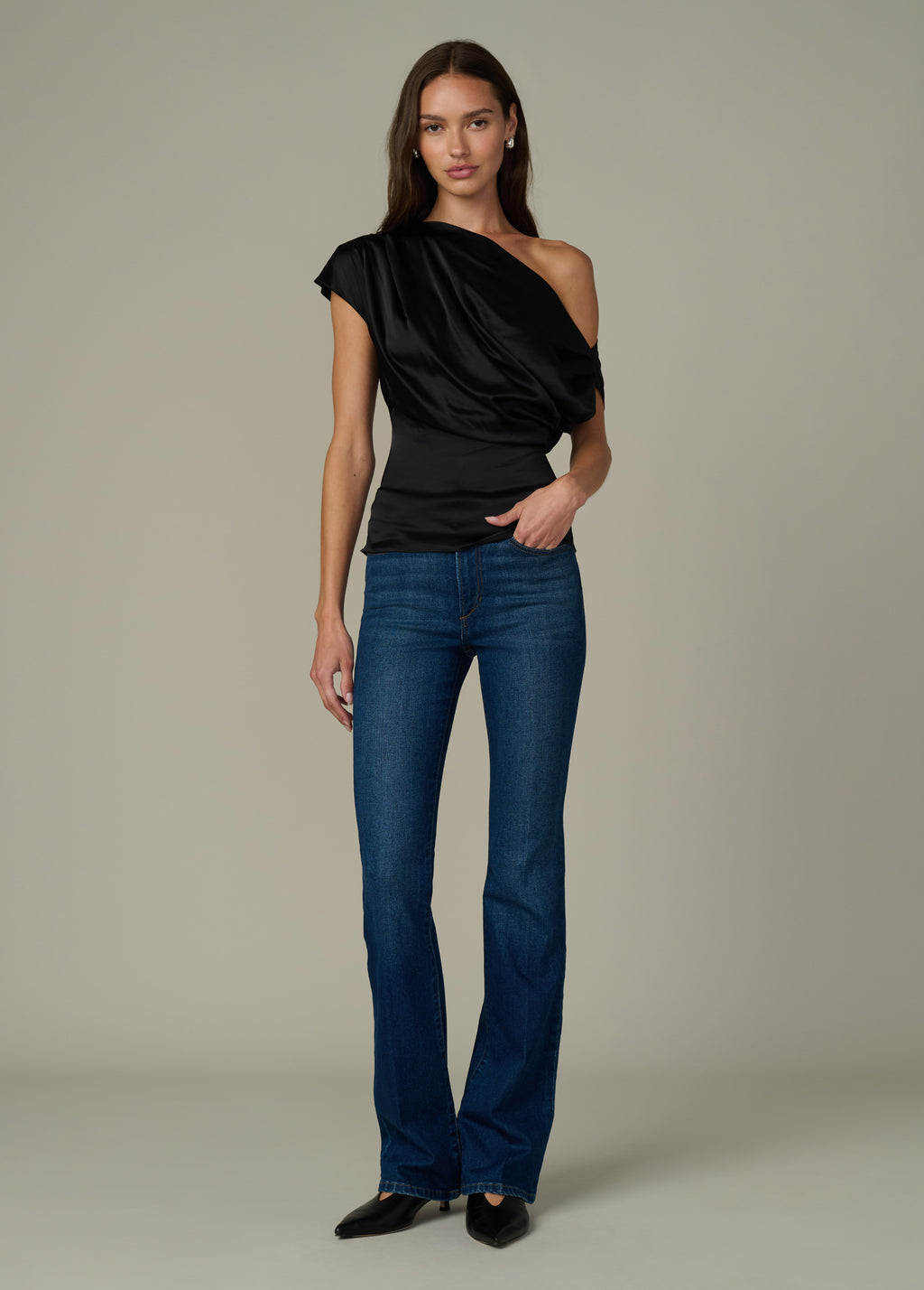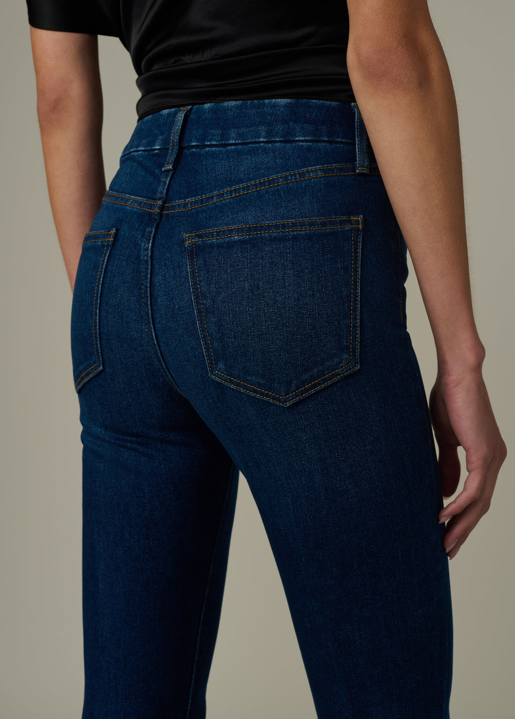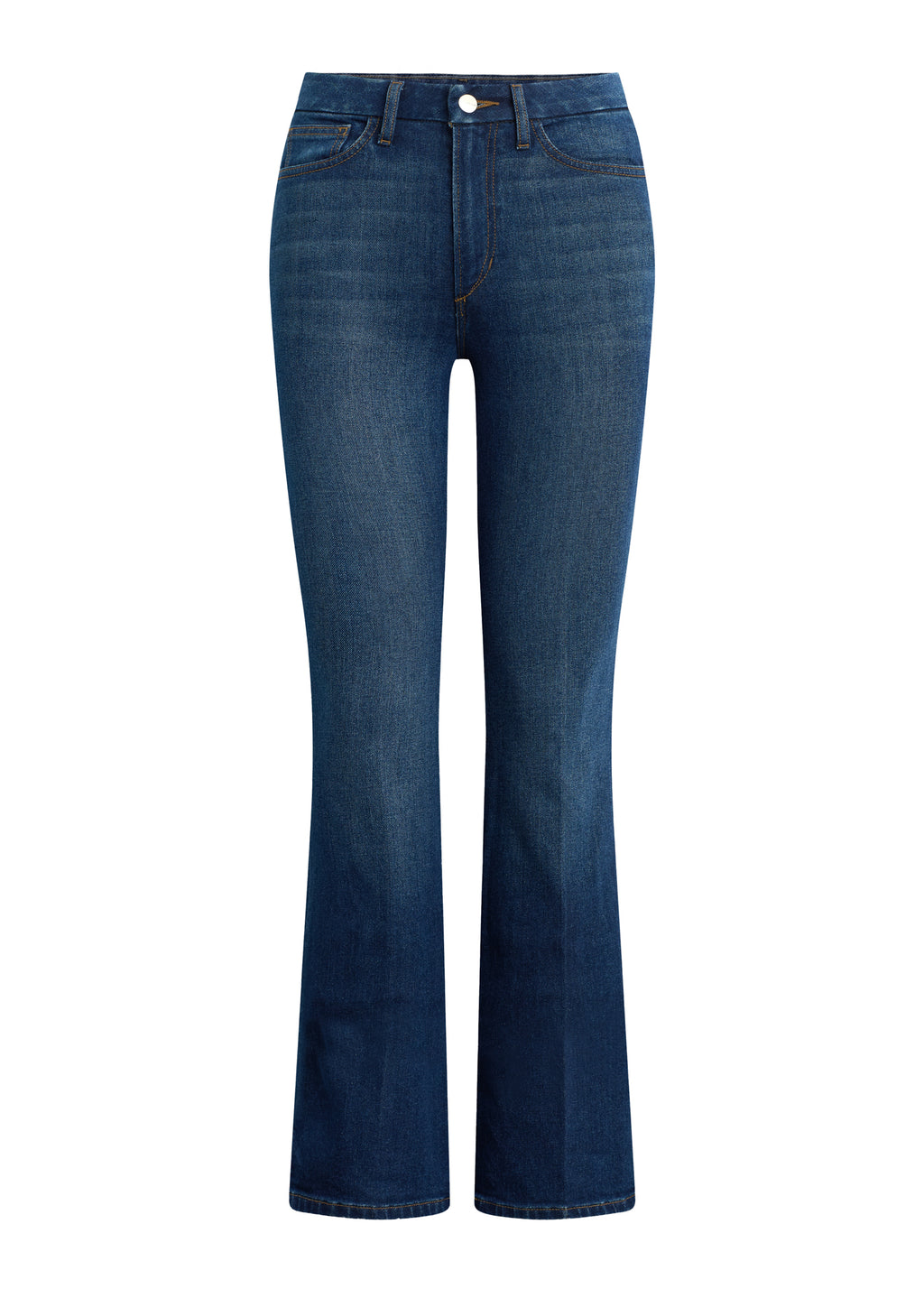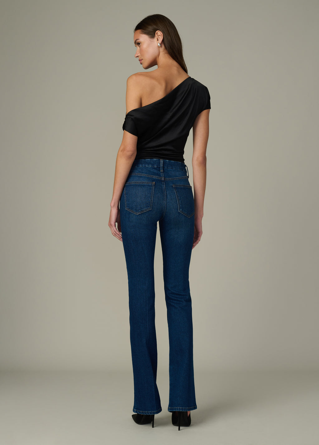 A high rise and slim fit through the waist, hip and thigh with a full-length bootcut, designed for curvy silhouettes, and a higher back rise and extra room in the seat.