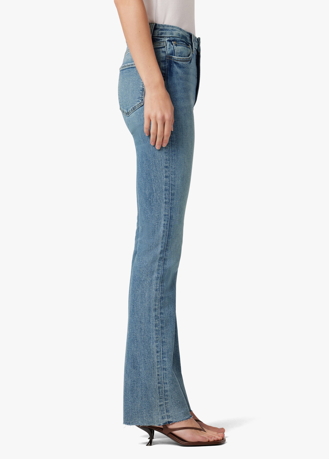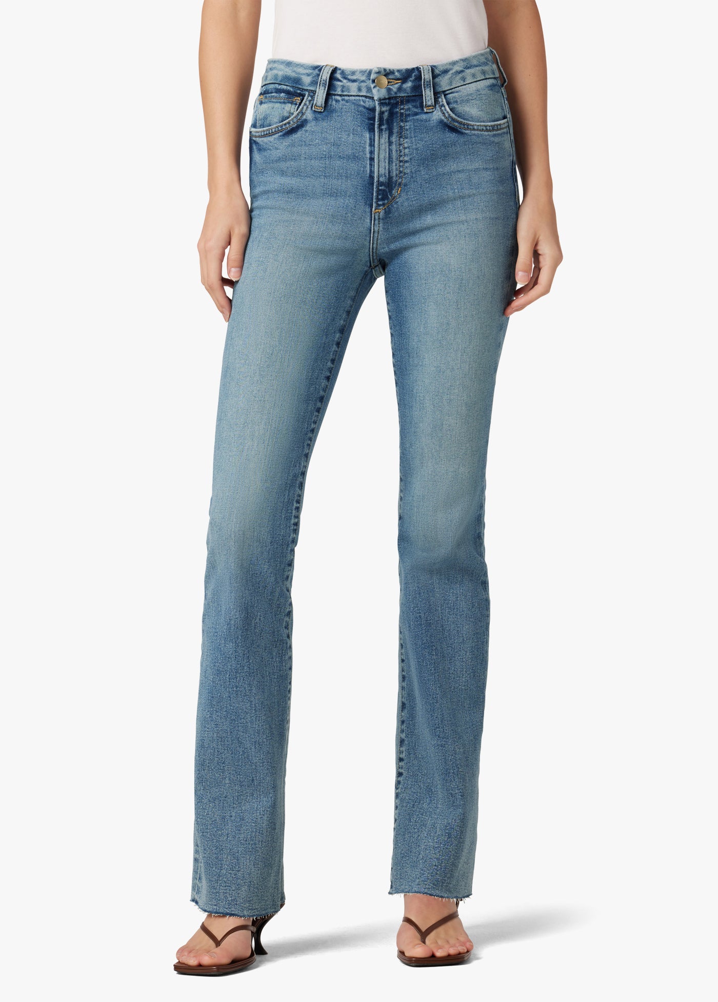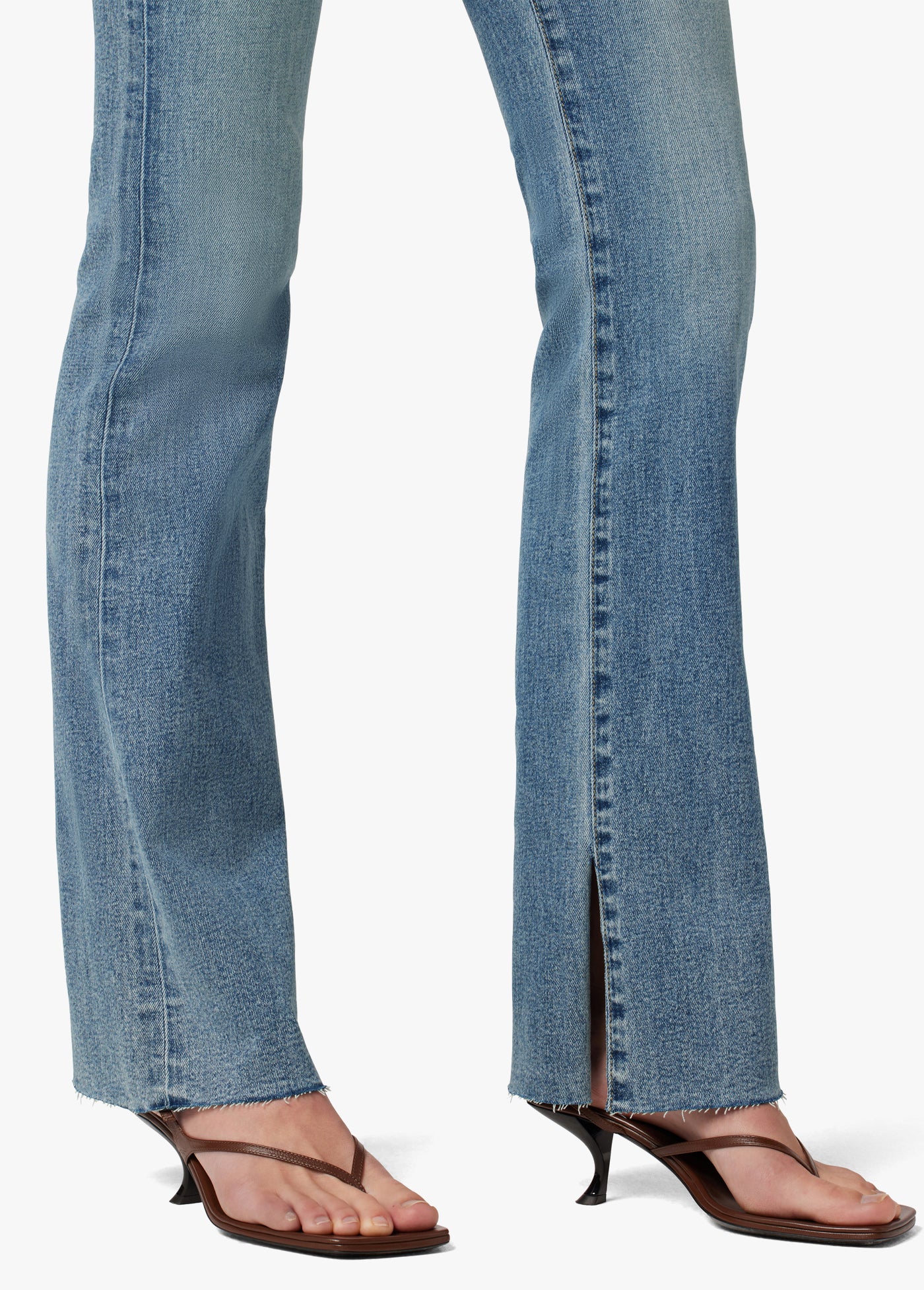 The Hi Honey Bootcut in 'Over It' is a high-rise curvy-fit jean made from comfortable denim designed especially for hourglass silhouettes. The medium-light wash has hand sanding and top whiskering along with raw hems that are styled with cool hem slits to showcasee your favorite footwear.