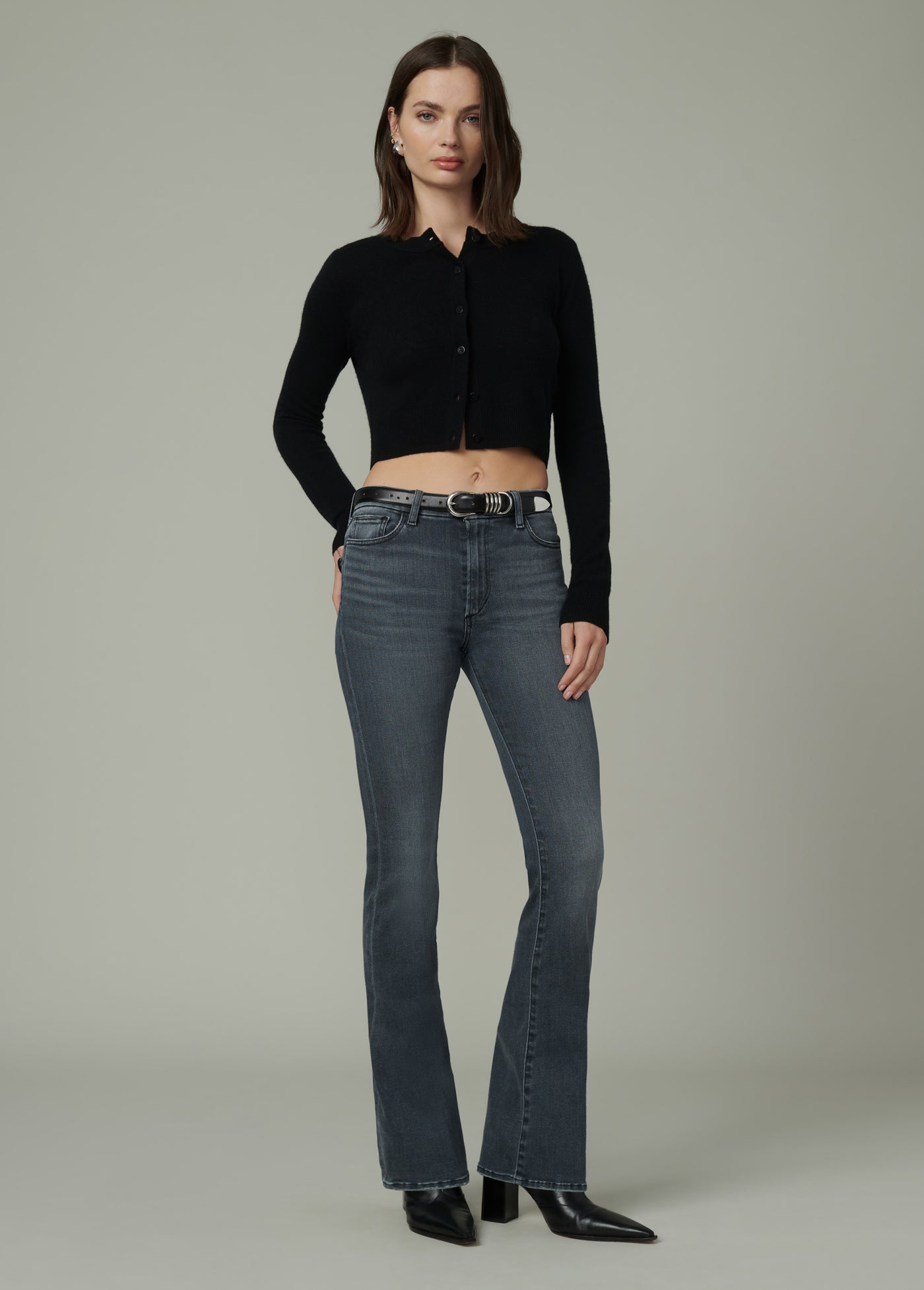 Slim fit through the waist, hips and thigh with a high rise and full-length bootcut, designed for curvy silhouettes with a higher back rise and extra room in the seat.