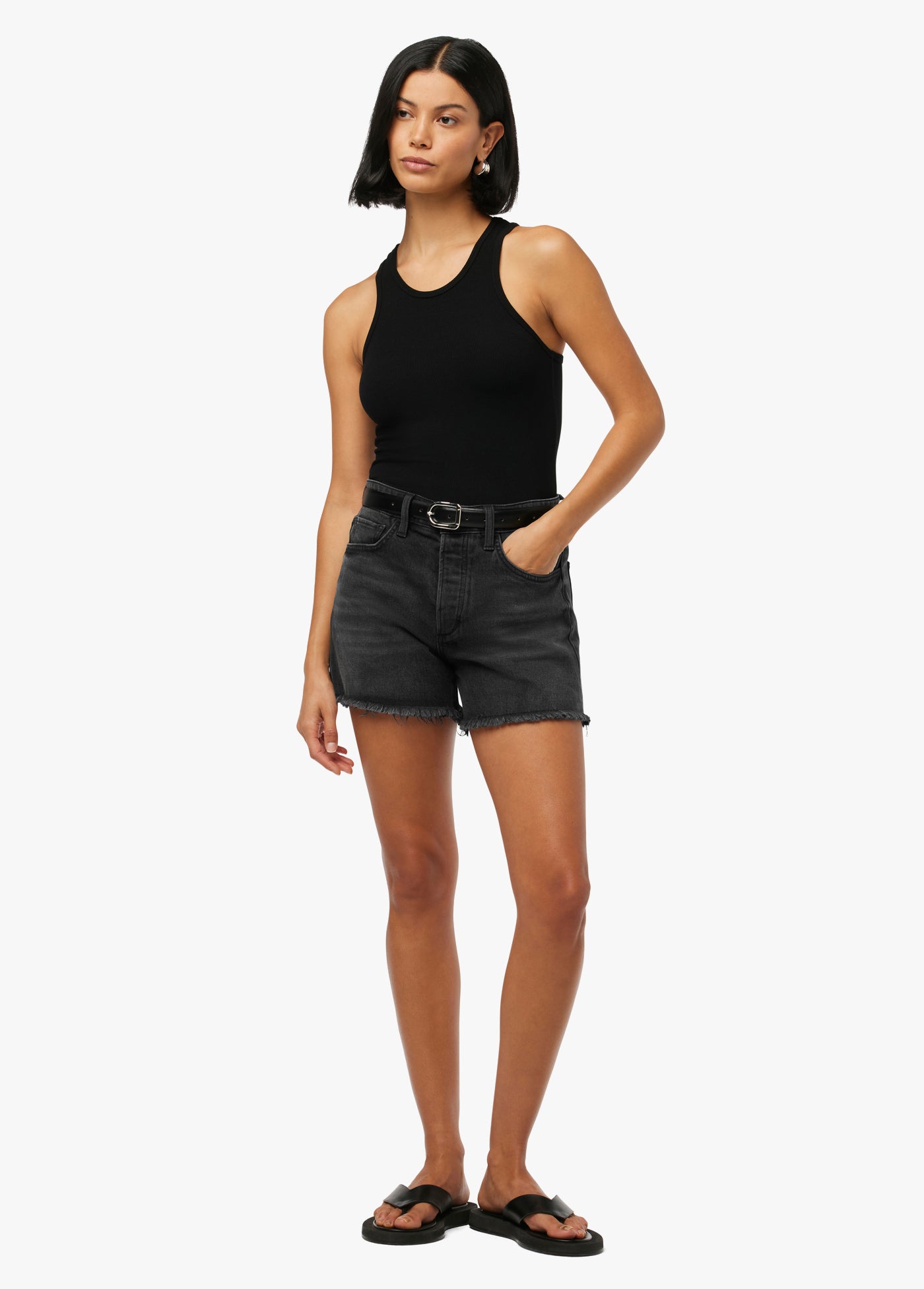 With a high rise and a relaxed fit, the Jessie is an easy short with comfortable styling. The Finesse wash is a dark shade with whiskering, cut from comfort Vintage Stretch denim.
