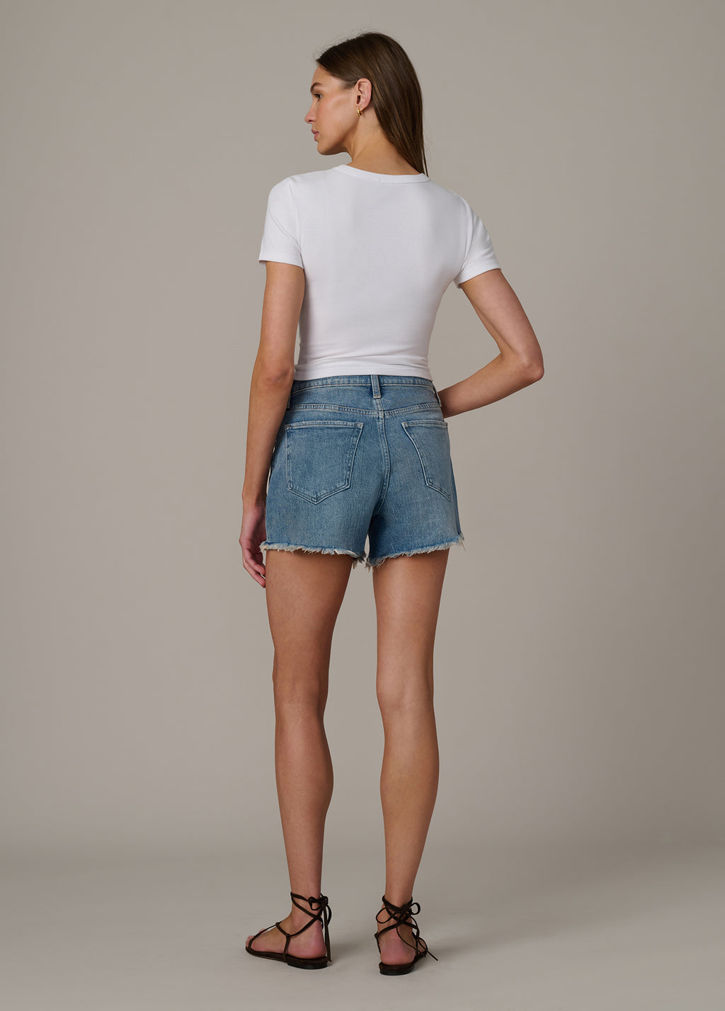 With a high rise and a relaxed fit, the Jessie is an easy short with comfortable styling. The Not Your Babe wash is a medium-light shade with local hand sanding on the thighs and frayed hems cut from comfort Vintage Stretch denim.