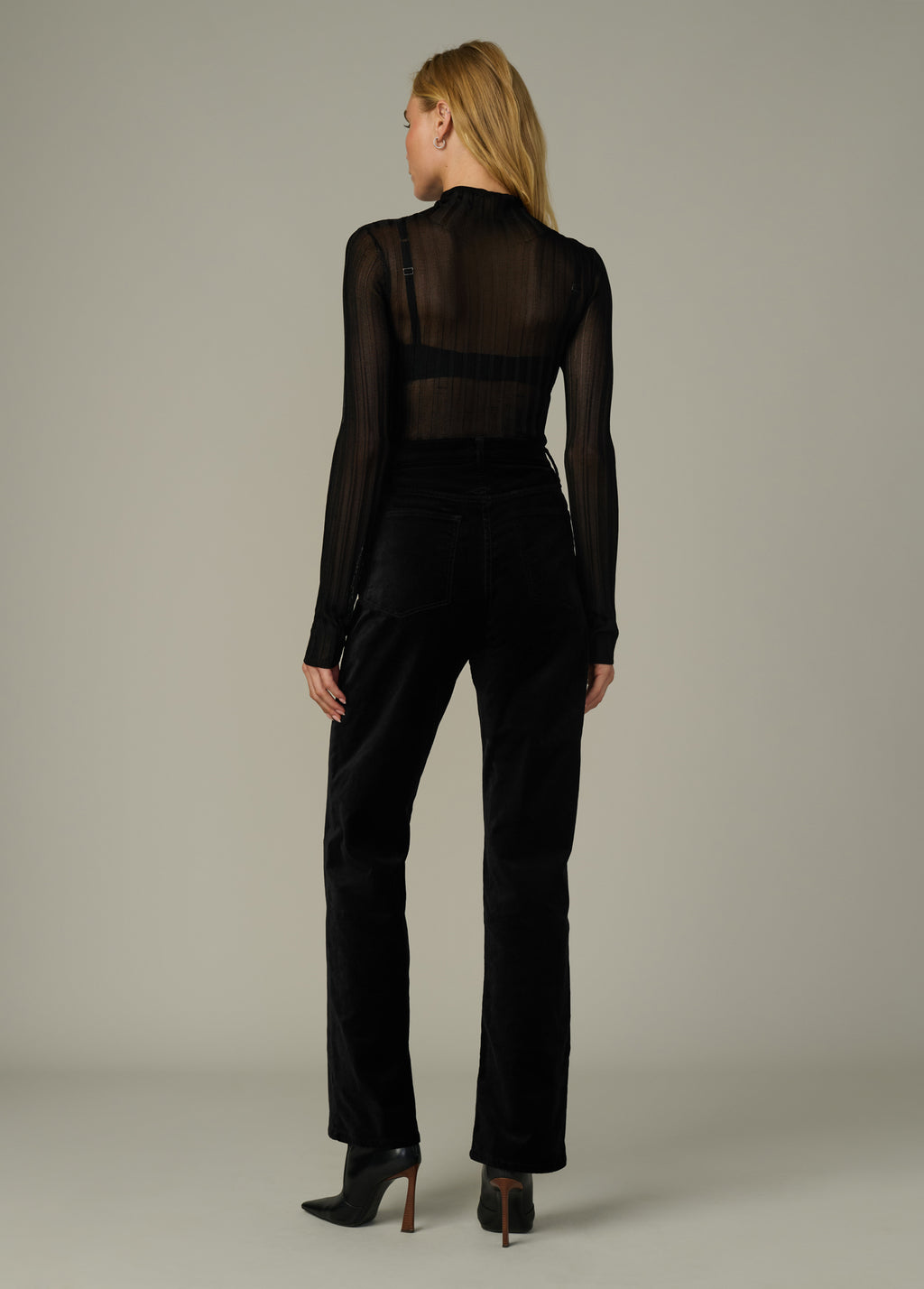• Semi-sheer ribbed knit fabric