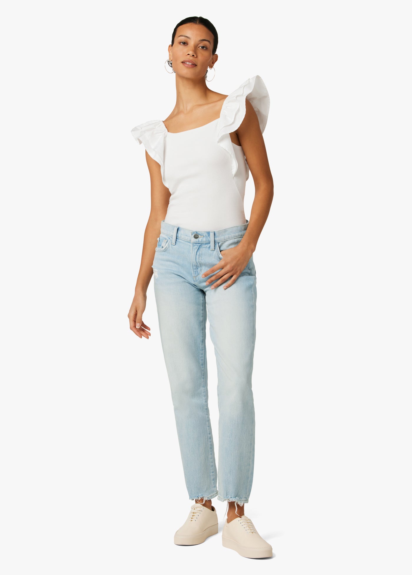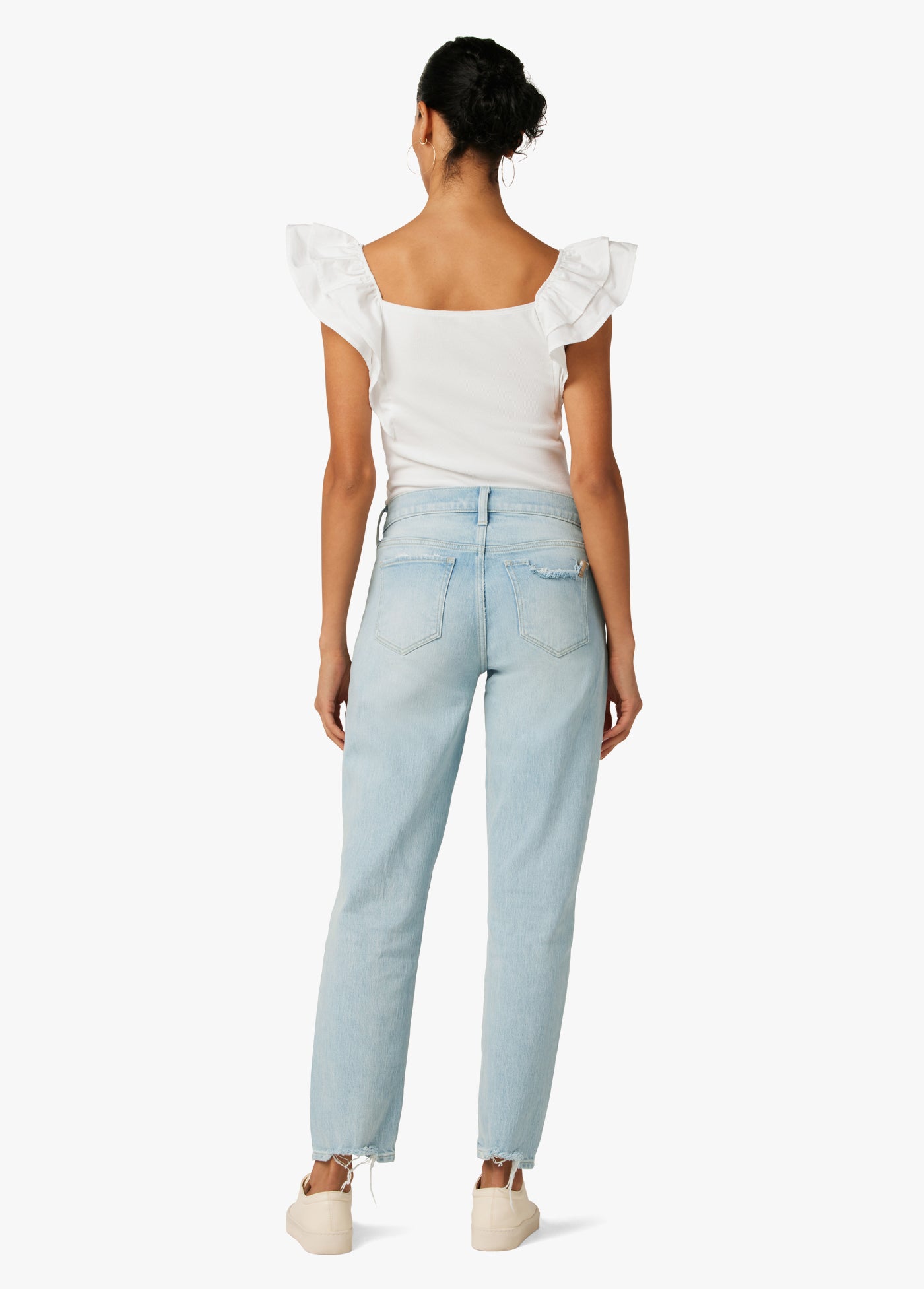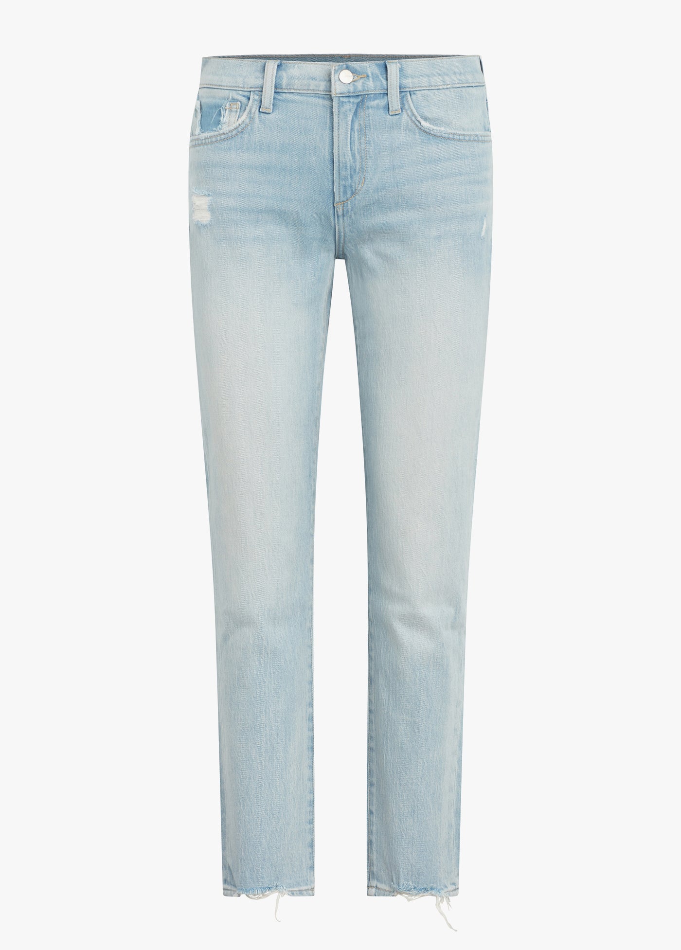Distressed ankle-length hems add character to these mid-rise cigarette jeans, but it’s the washed out light blue that make these jeans stand out. And since the Lara is cut from Vintage Stretch denim, these jeans are super comfortable and have incredible recovery.